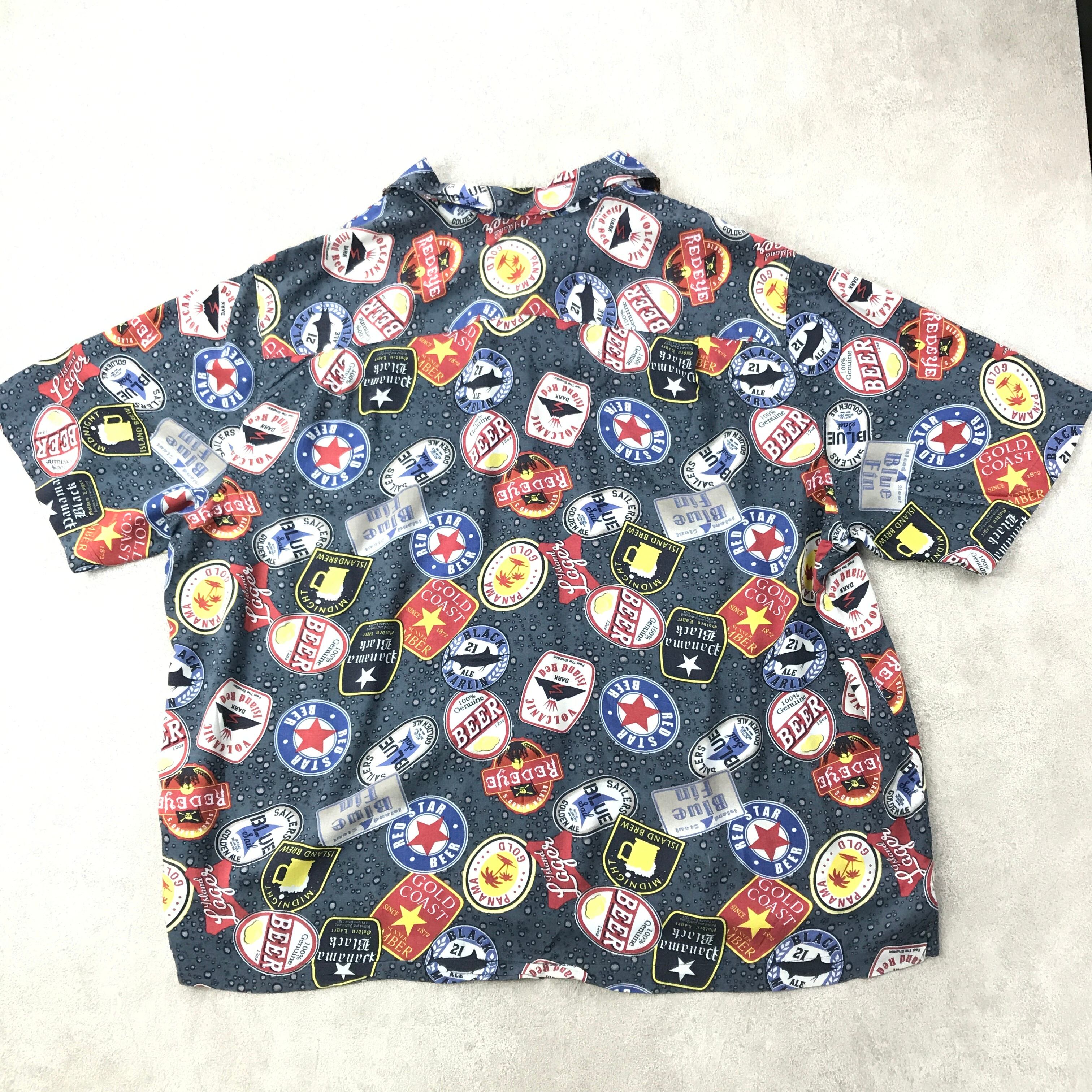 【30%OFF セール】 3XL 90年代 ビッグサイズ!GEORGE 総柄 オープンシャツ レーヨンシャツ半袖 柄シャツ グレー ビール たくさん BEER DRAFT BREW ビンテージ 【SALE】