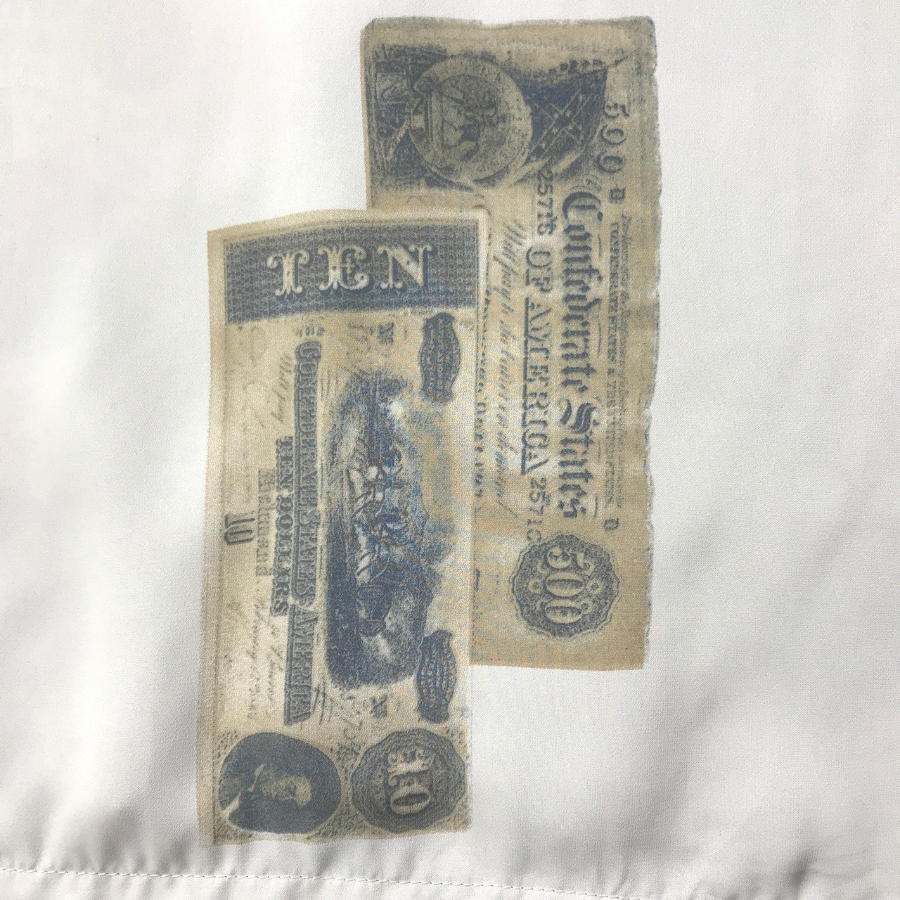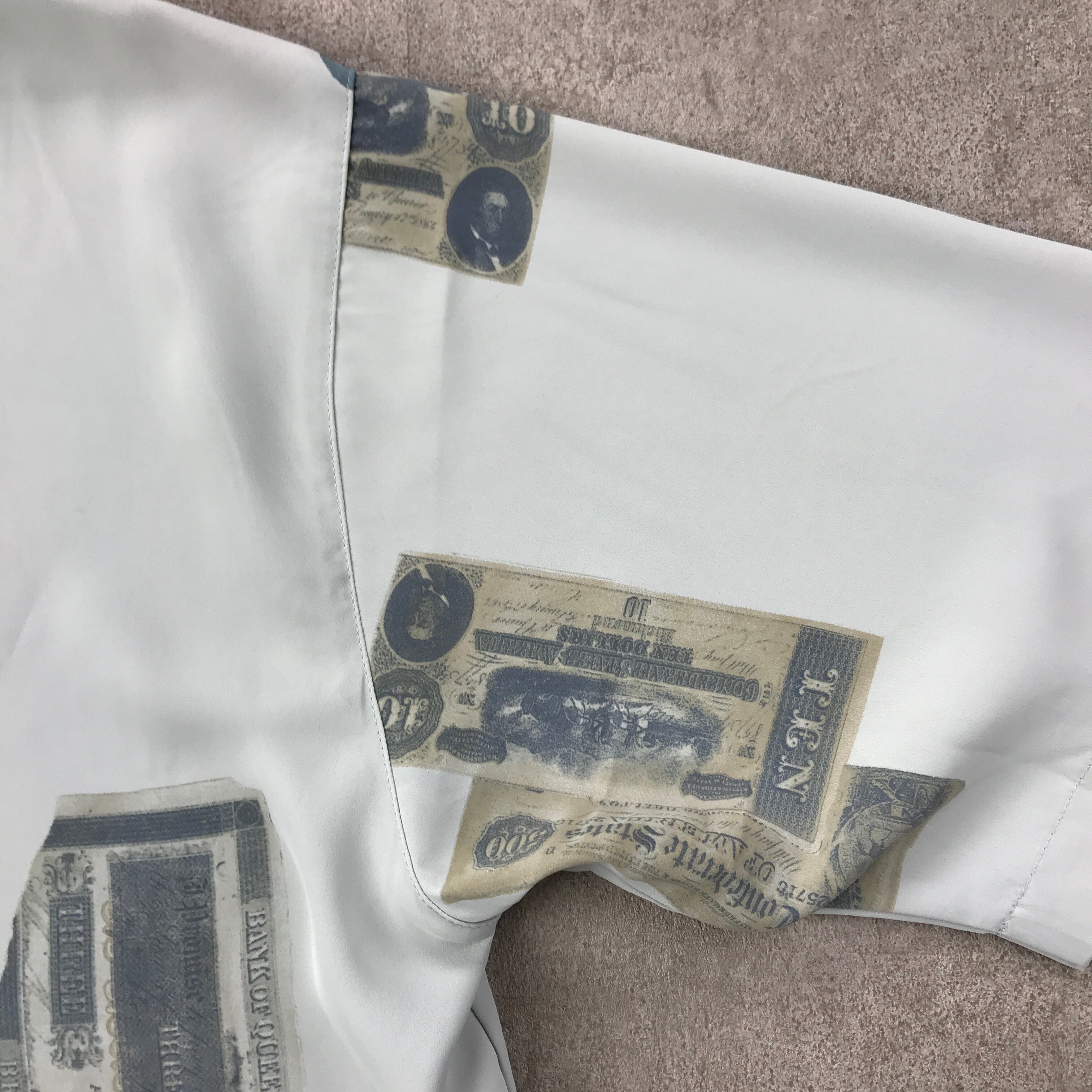 L 80年代 JPN VINTAGE Virgo 総柄 オープンシャツ ポリシャツ半袖 お札柄シャツ アイスブルーグレー MONEY 入り ビンテージ