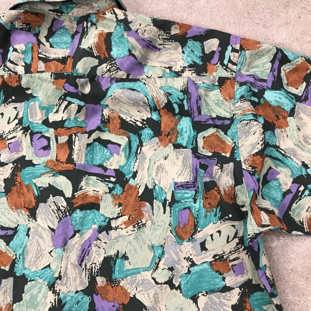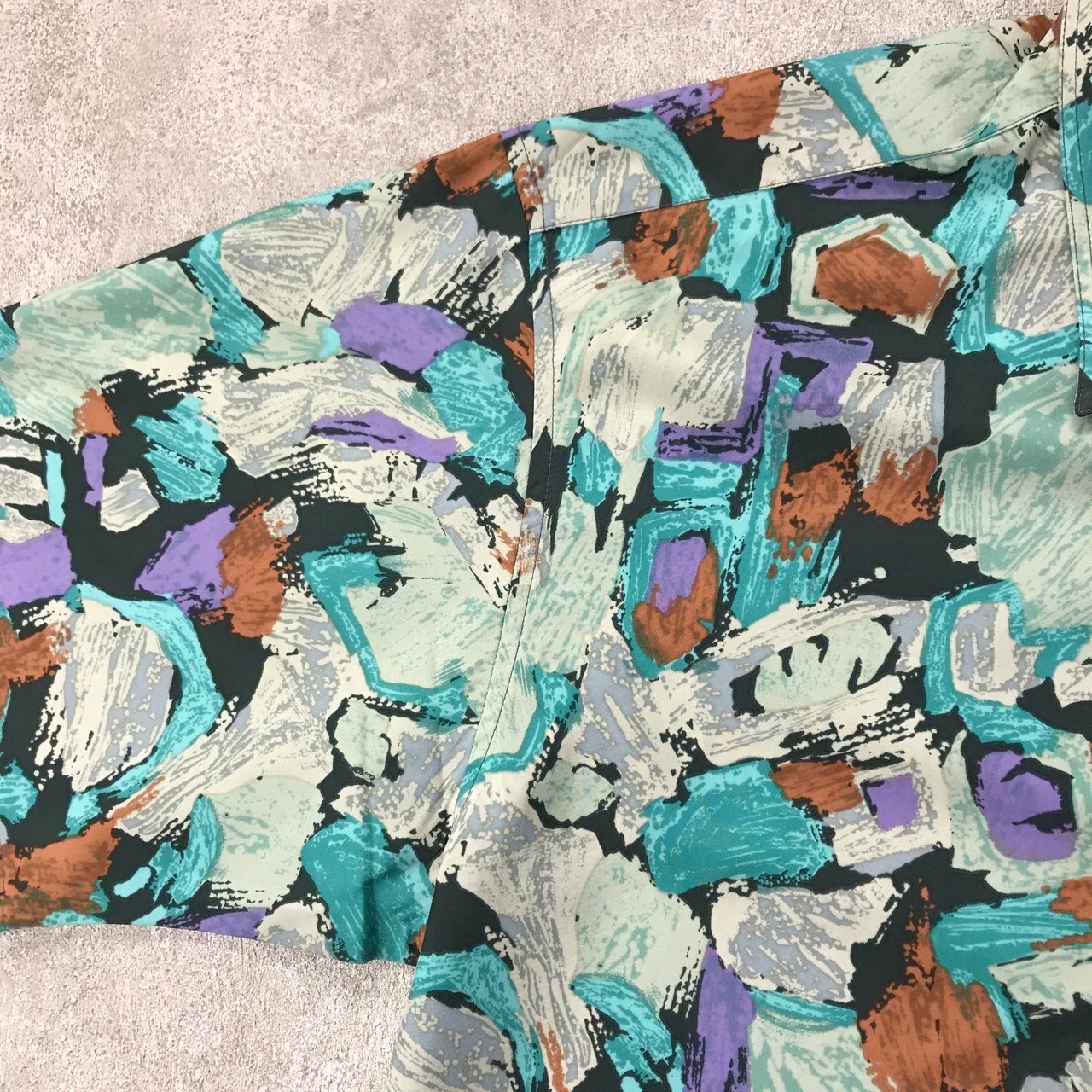 L 90年代 Tis.Sellction JPN VINTAGE 総柄 ポリエステルシャツ半袖 水彩画アート柄