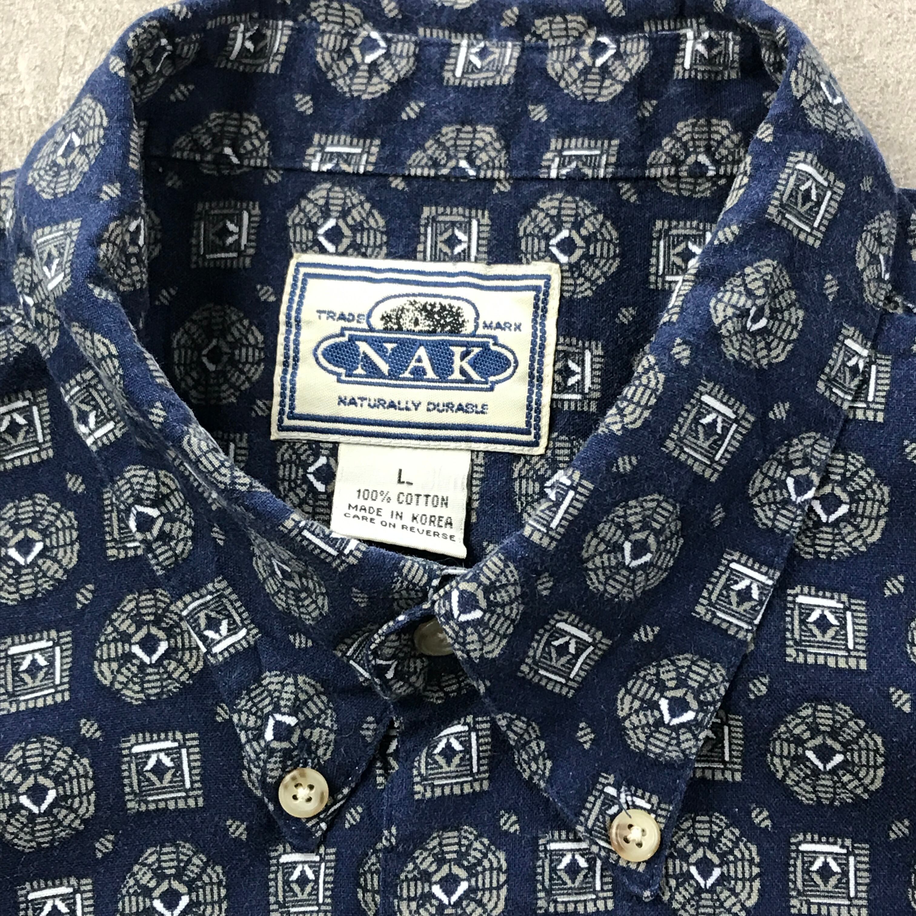 L 90年代 NAK 総柄 モノグラム柄 コットンシャツ 半袖 ビンテージ