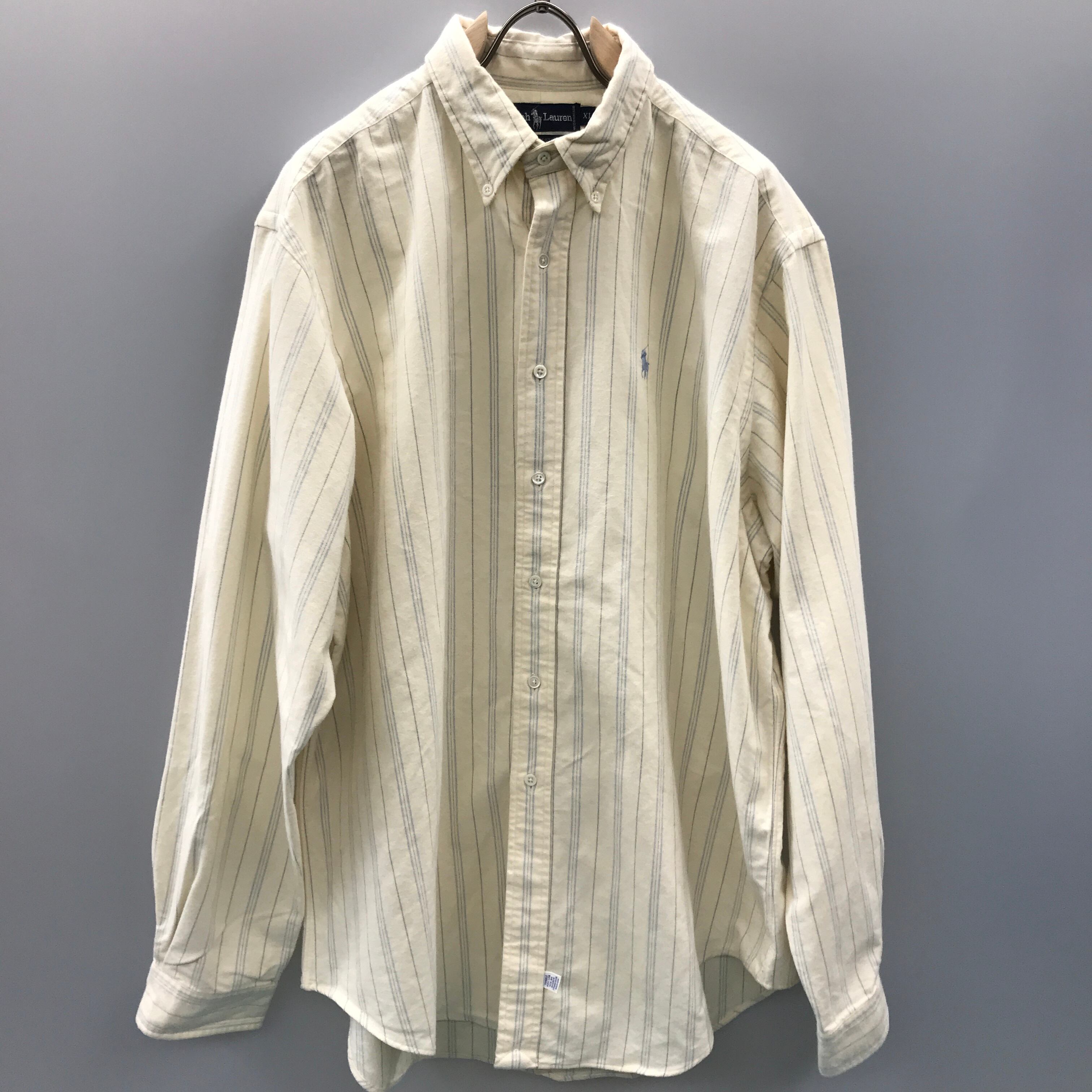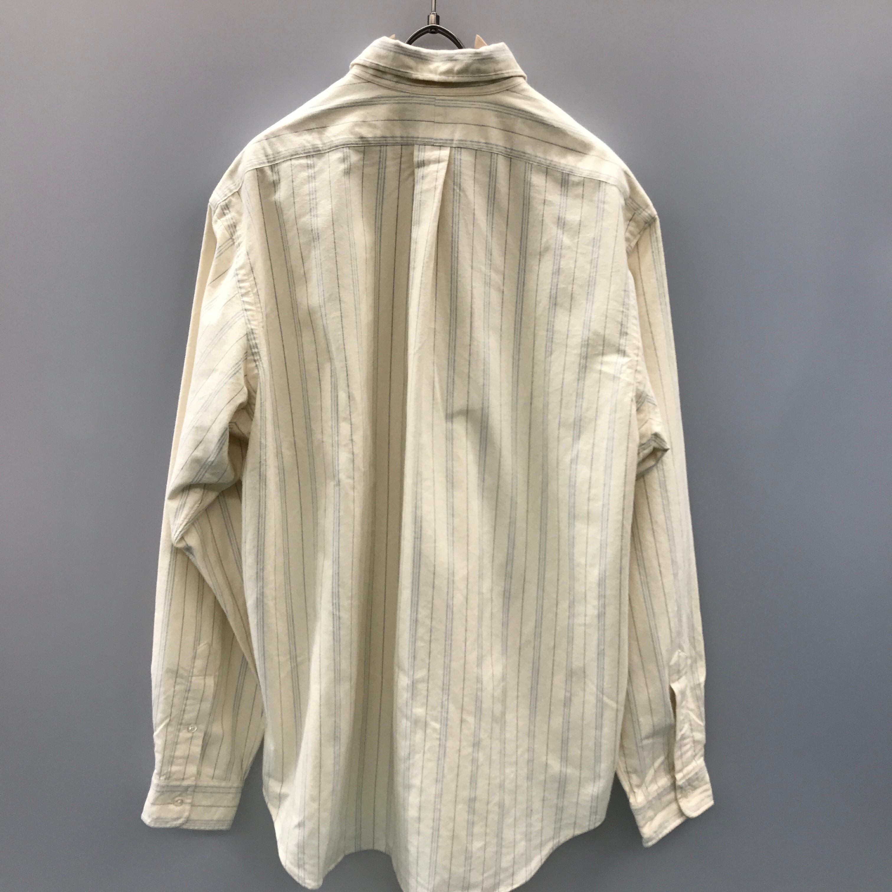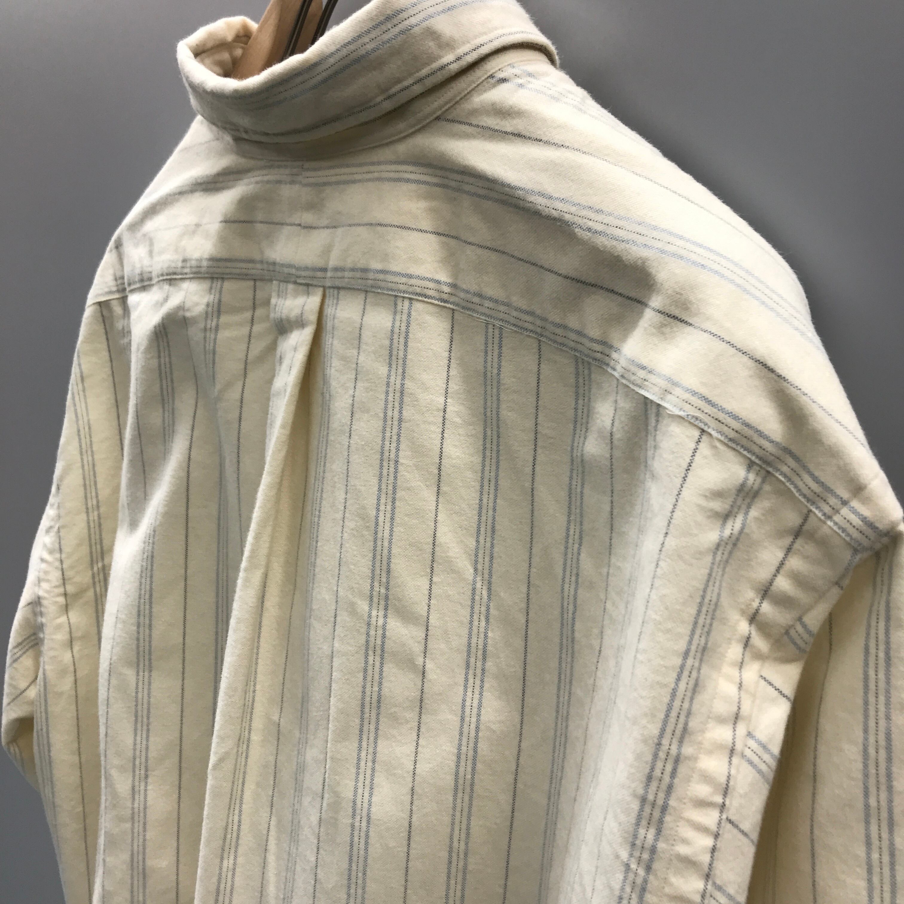 厚手の柔らかいコットン素材で薄いブルーのストライプがさわやかです。シミやキズは見受けられません。オーバーサイズで女性の方にも・・・。