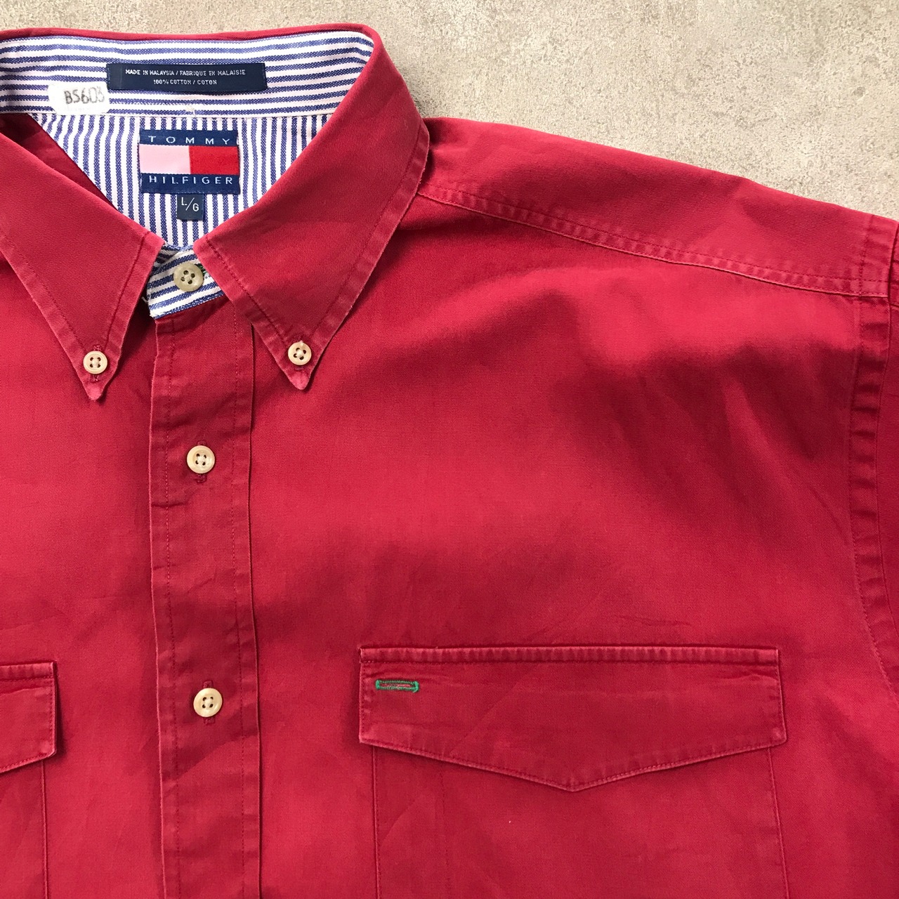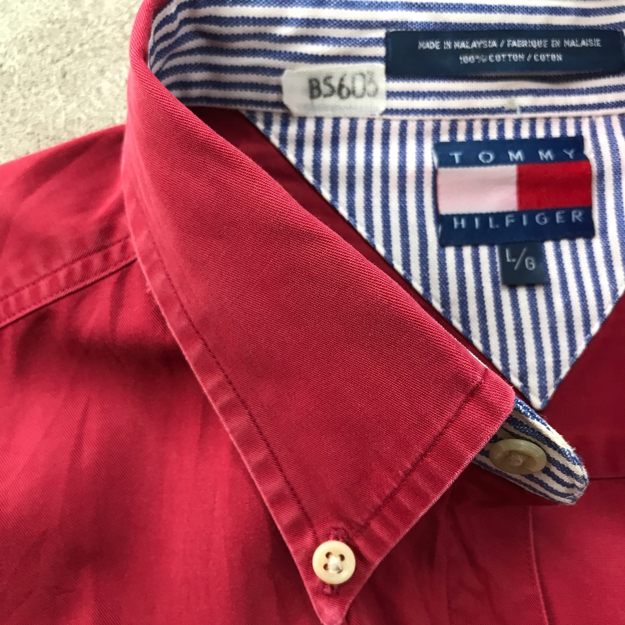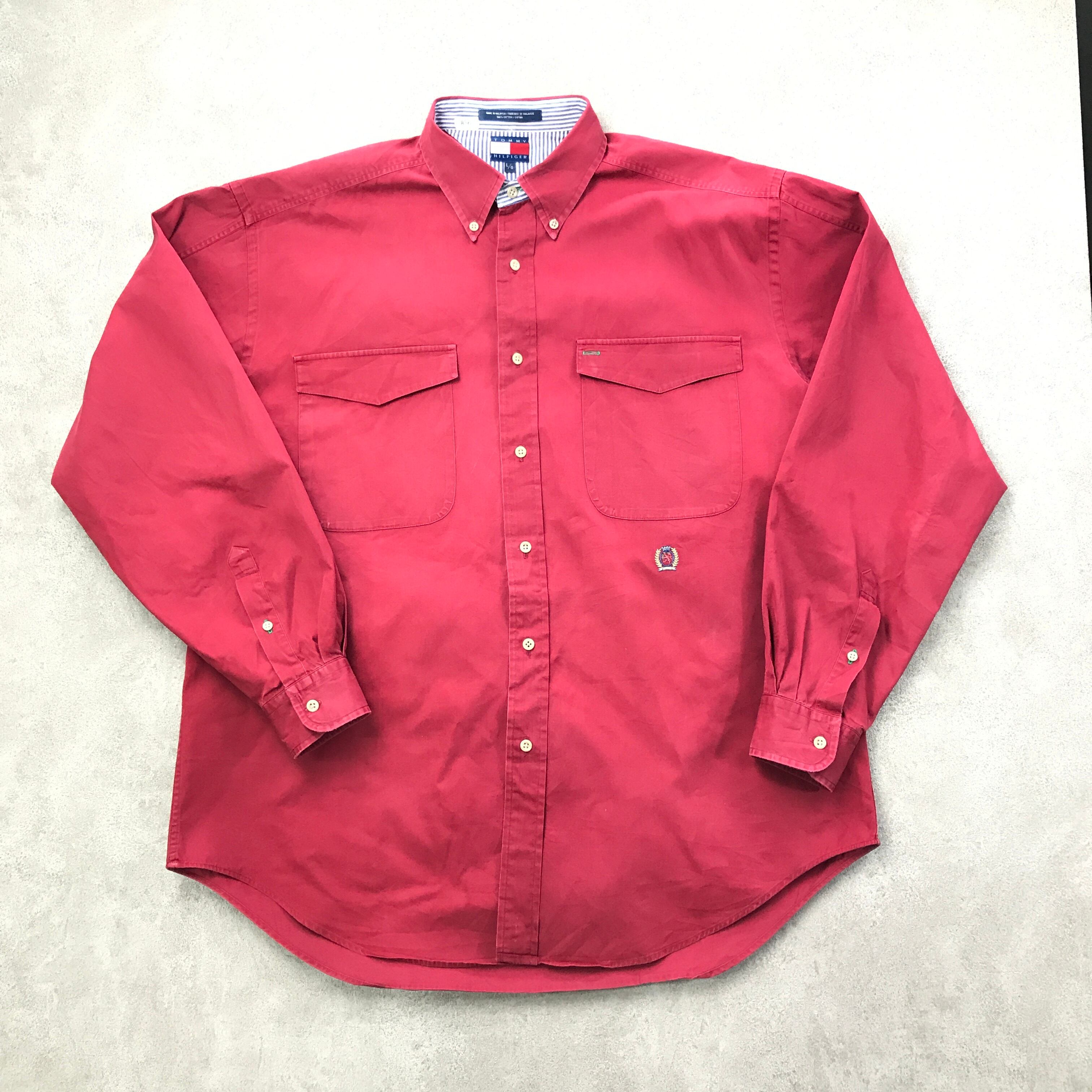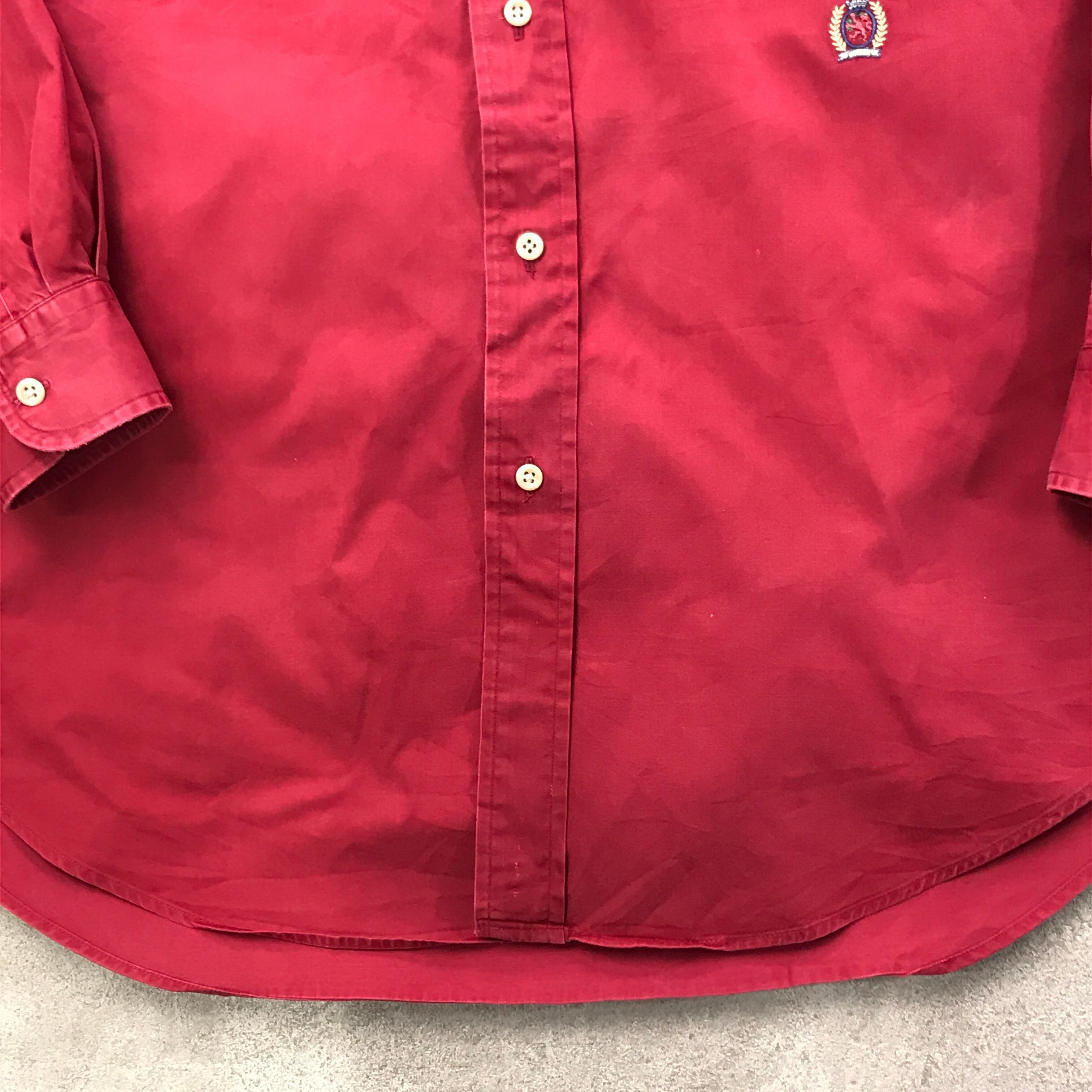 L TOMMY HILFIGERL 90年代 TOMMY HILFIGER トミーヒルフィガー コットンシャツ ボタンダウンシャツ 長袖 レッド