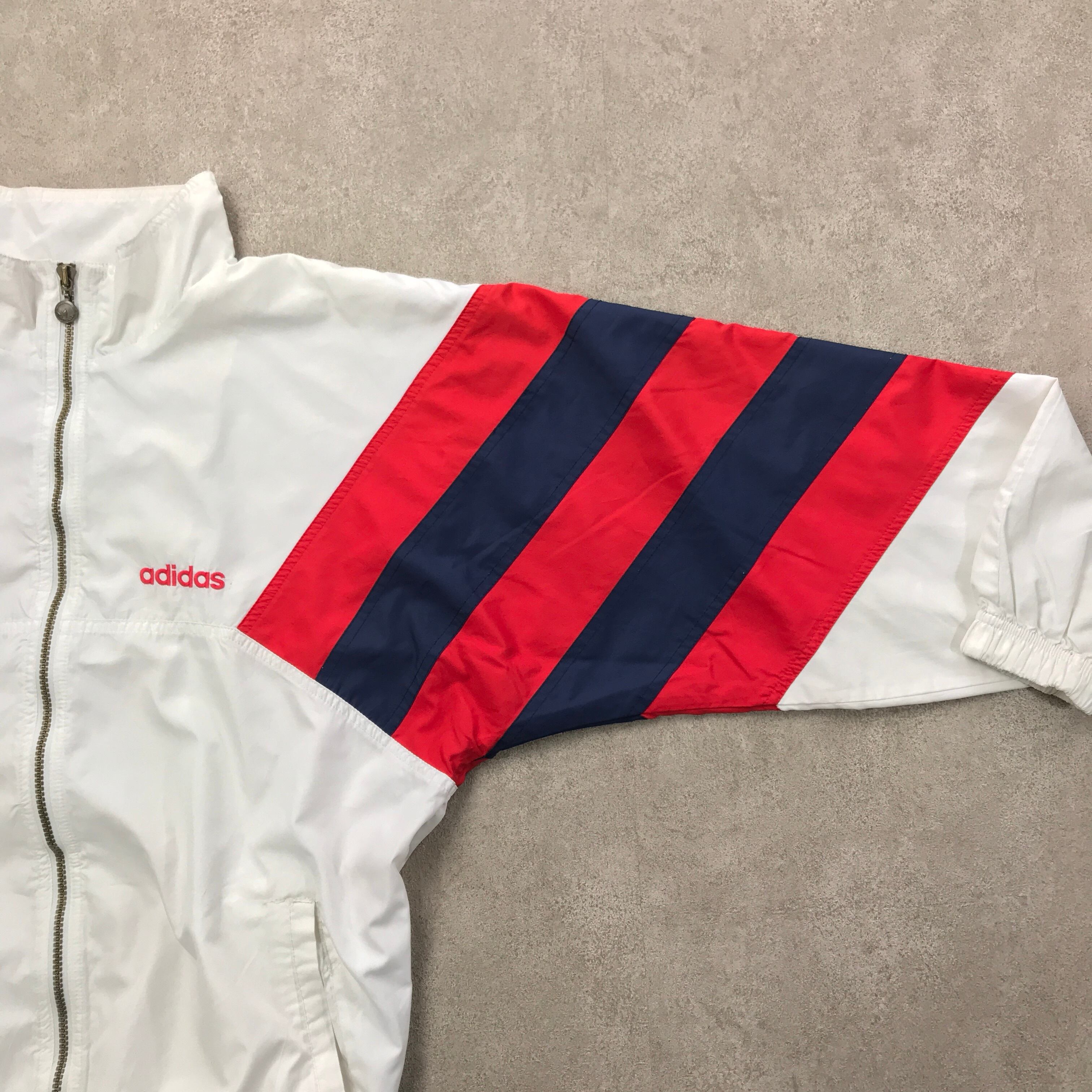80〜90年代 adidas アディダス 三つ葉 トレフォイル 肩切り替えナイロンジップジャケッ ト 白赤紺
