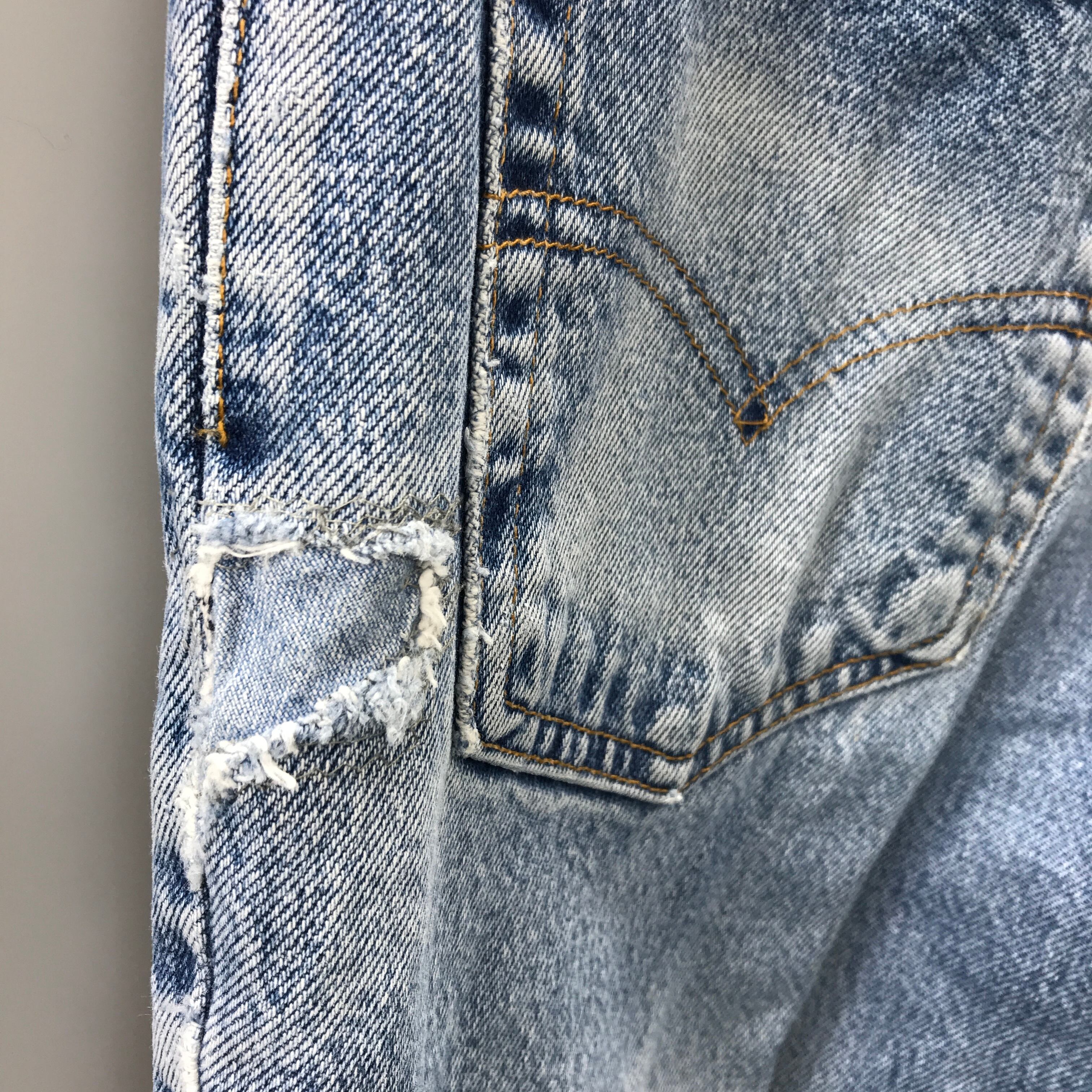 色落ちも良く、サイズも良い517です。汚れ、補修、生地が薄くなっている所があります。