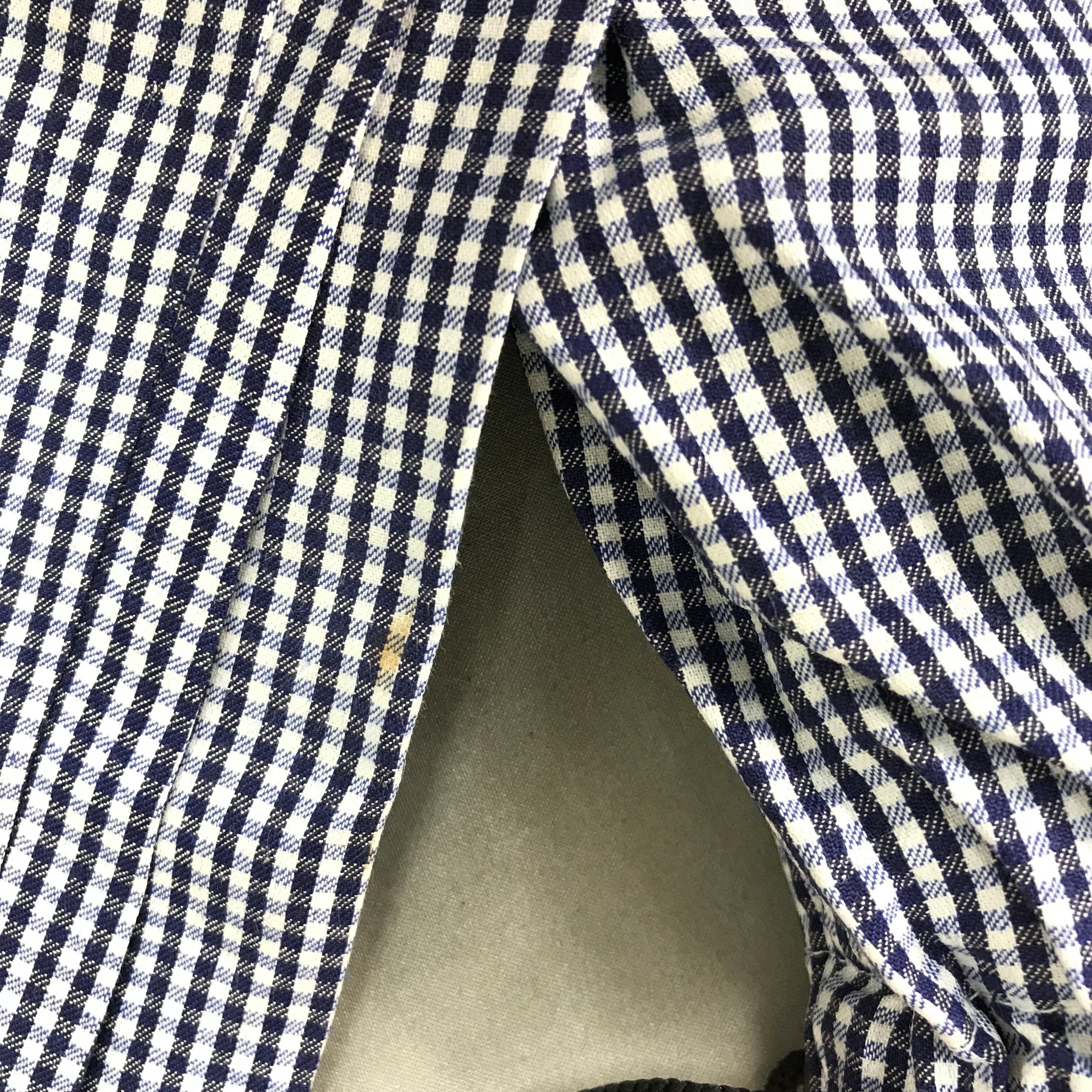 ユーロコックパンツです。さわやかなブルーのギンガムチェックで着用感も無はあまり感じませんが右ふくらはぎ辺りにシミ汚れがあります。