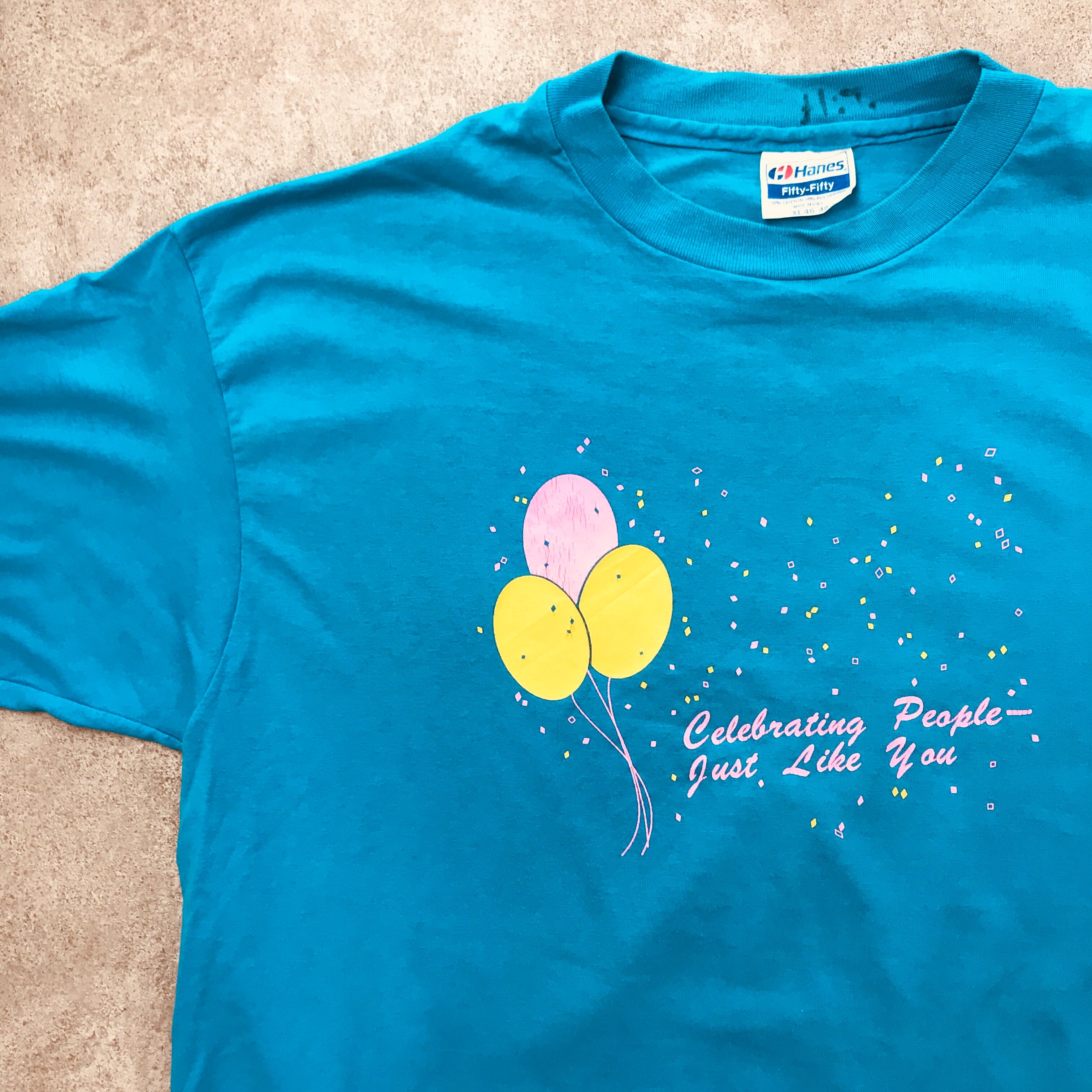 XL 90年代 ライトブルー パステル色の風船 あなたにお祝い ♪ プリントTシャツ USA製