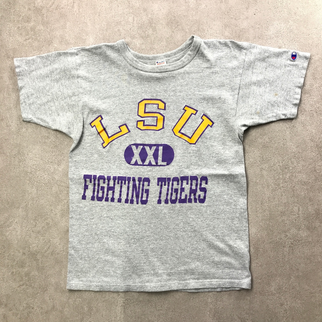 80年代 米国製トリコタグ 8812 champion 半袖 Tシャツ LSU FIGHTING TIGERS 霜降り チャンピオンハチハチイチニー コットン アメリカ製 MADE IN USA