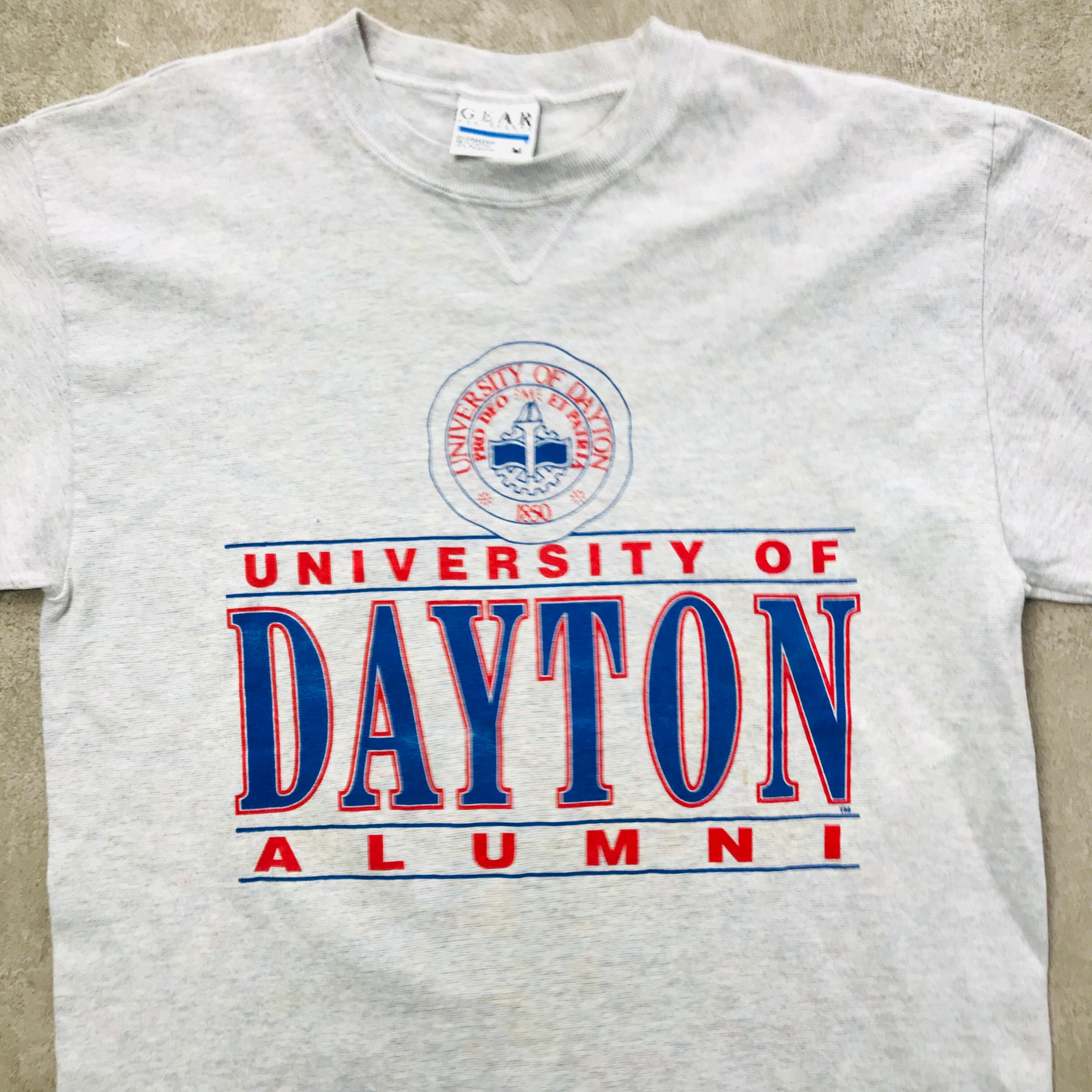 80〜90年代 GEAR 米国製 UNIVRCITY OF DAITON ALMNI プリントTシャツ ライトグレー