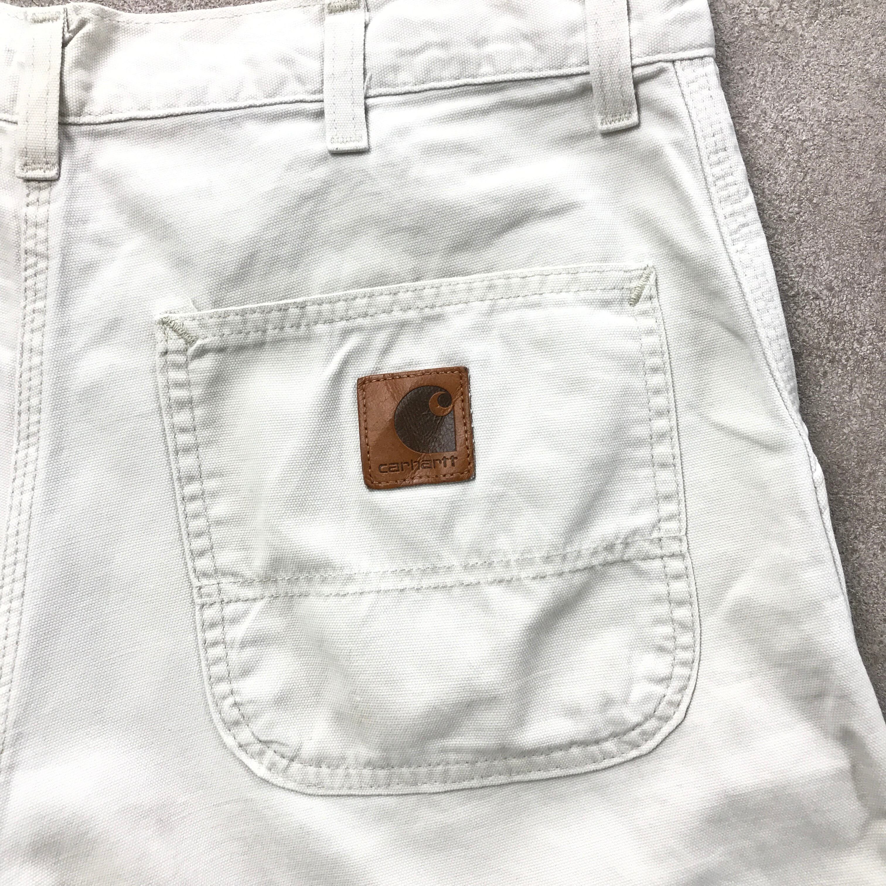 W34 米国製 Carhartt カーハート オフホワイト うすいダック地 ペインターショーツ ショートパンツ 半ズボン ハーフパンツ コットン 短パン ショーパン アメリカ製 MADE IN USA