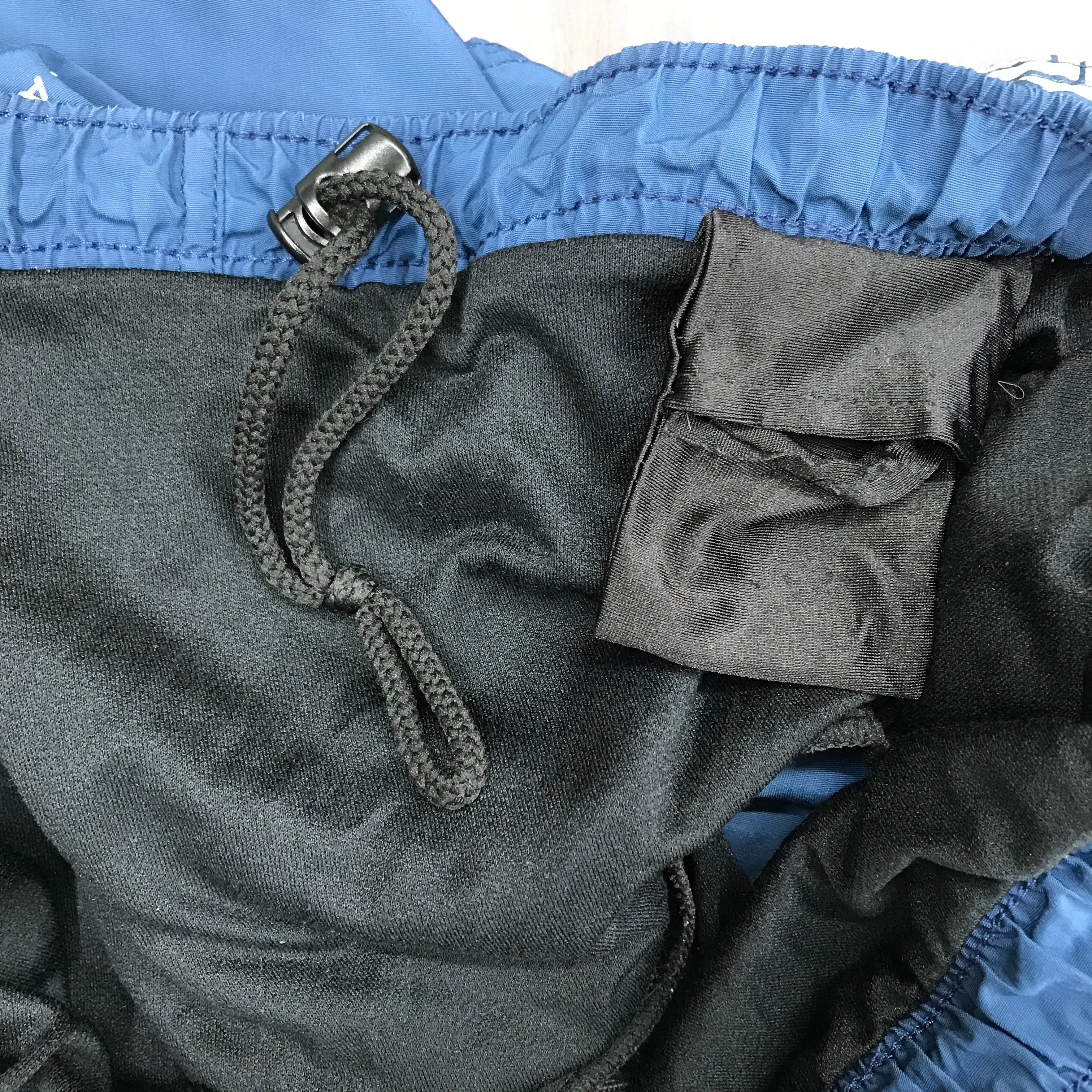 アメリカ空軍のトレーニングパンツになります。シルバーの部分はリフレクターになります。右リフレクター下に小さなポケットが有ります。表面はナイロン、中地はポリエステルかと思われます。全体的に色あせとリフレクタープリントが傷んでます。ウエストゴムも少し伸びてます。