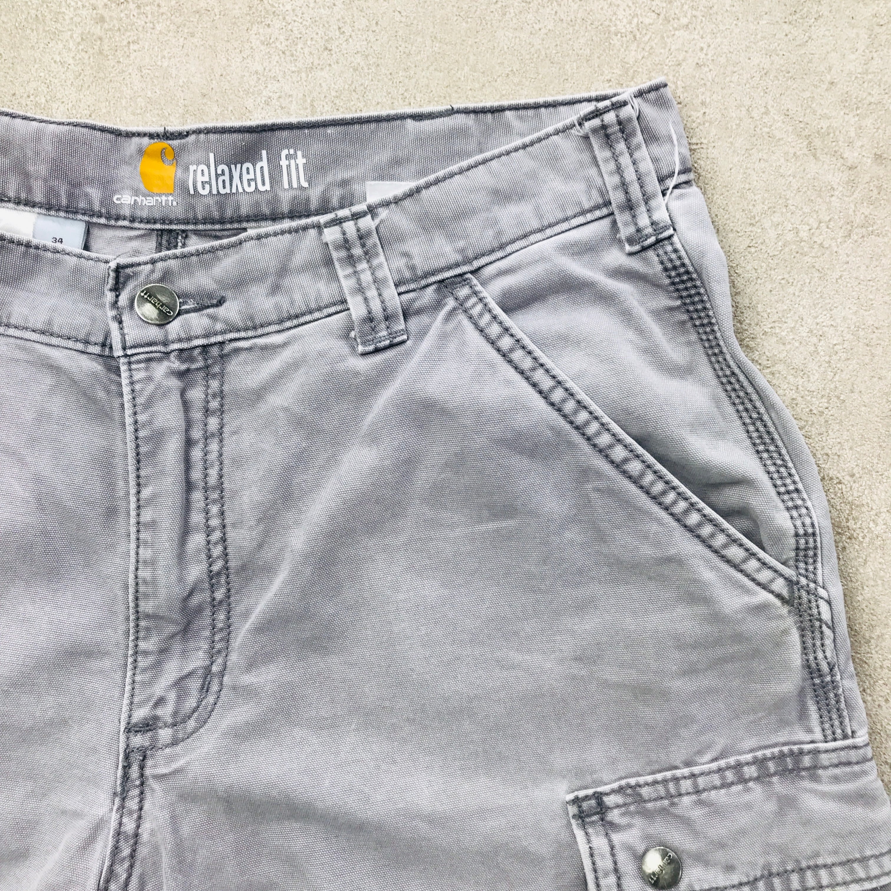 W34 Carhartt カーハート うすいグレーRELAXED FIT ダック地カーゴショーツ ショートパンツ 半ズボン ハーフパンツ 短パン ショーパン