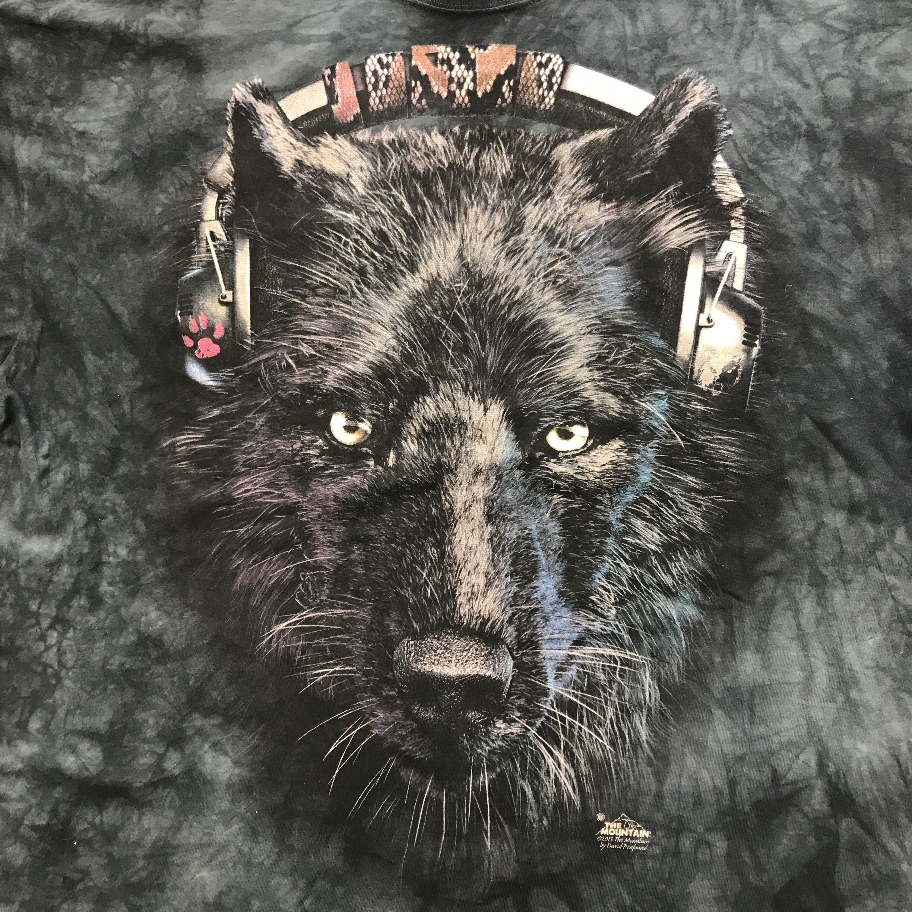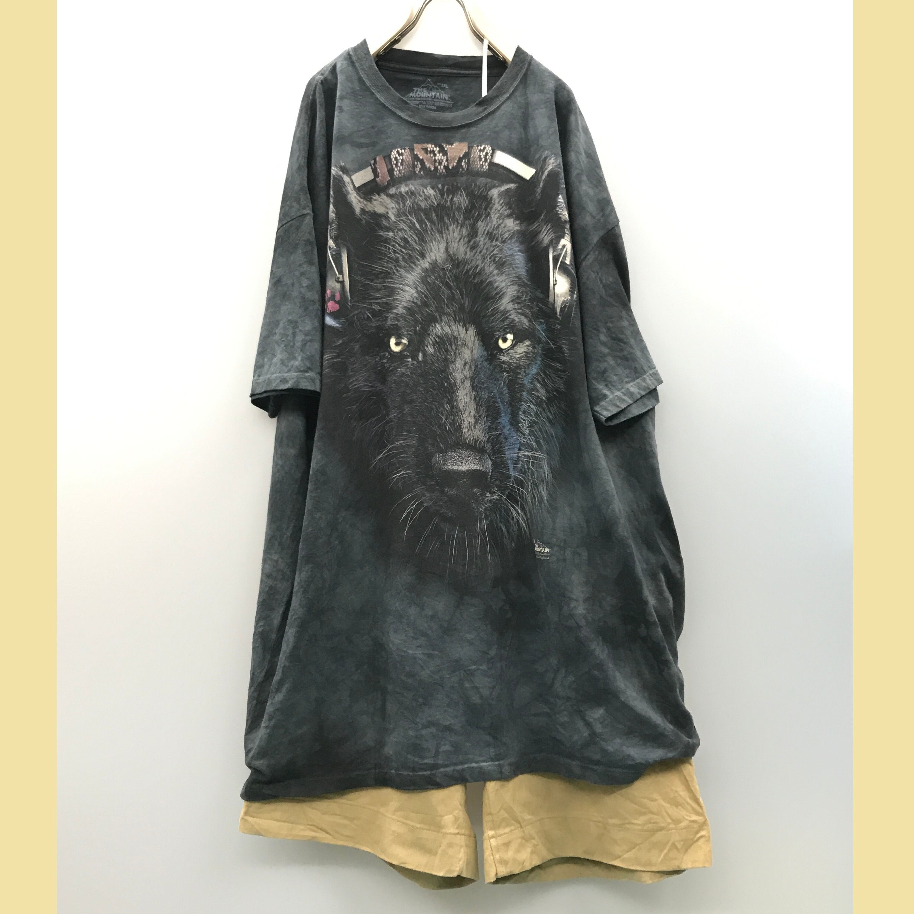 3XL ビッグサイズ!THE MOUNTAIN WOLF 狼 Jam 'n Bean Coffee アニマルビッグフェイスプリントTシャツ タイダイTシャツ ザ マウンテン ブラック
