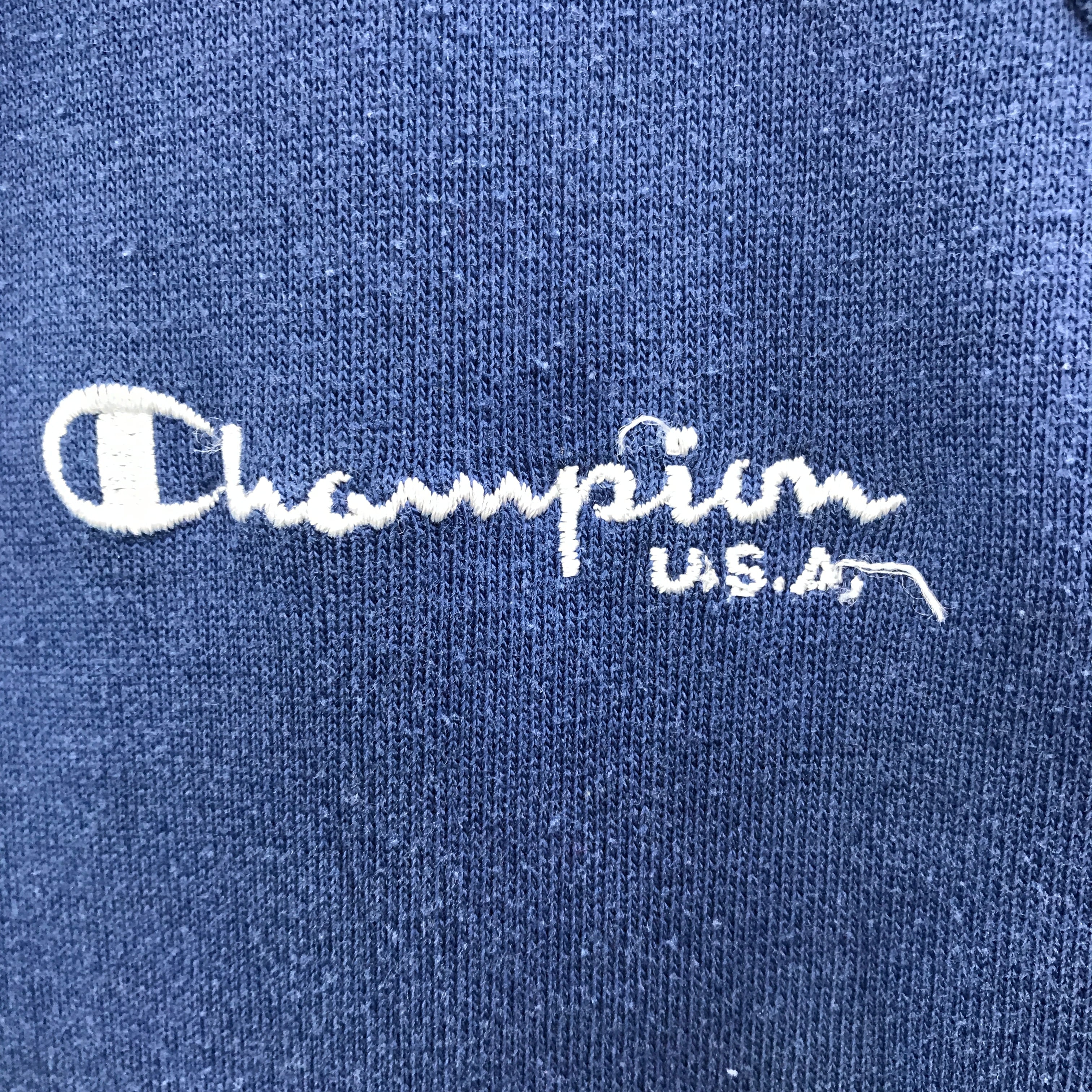 珍しい多分イタリア製のチャンピオンです。スウェットブルゾンでロゴテープがゴキゲンです。裏地はパイルです。全体的に白っぽく色あせ小さい毛玉がコロコロと、胸の刺繍と左肩の縫製にホツレがあります。目立つ汚れは御座いません。サイズはスモールですがMくらいあります。