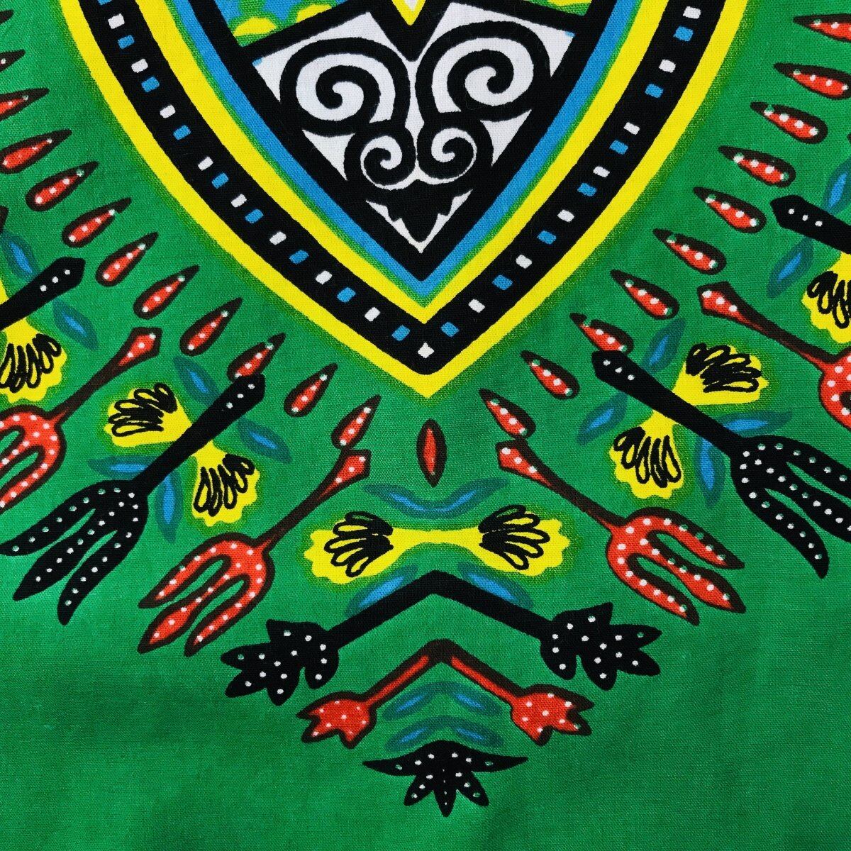 ダシキ dashiki WONDER WEAR チュニックタイプ Dashiki グリーン アフリカ 民族柄 5分Tシャツ アフリカンプリント プルオーバー 民族衣装
