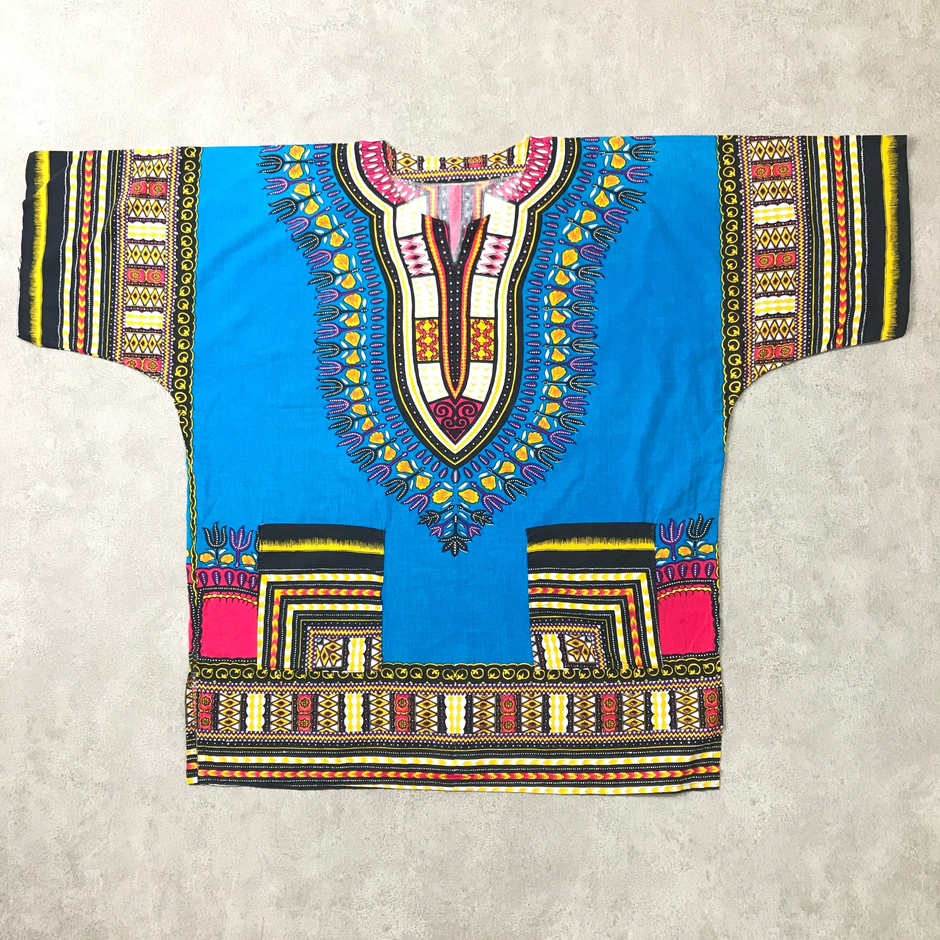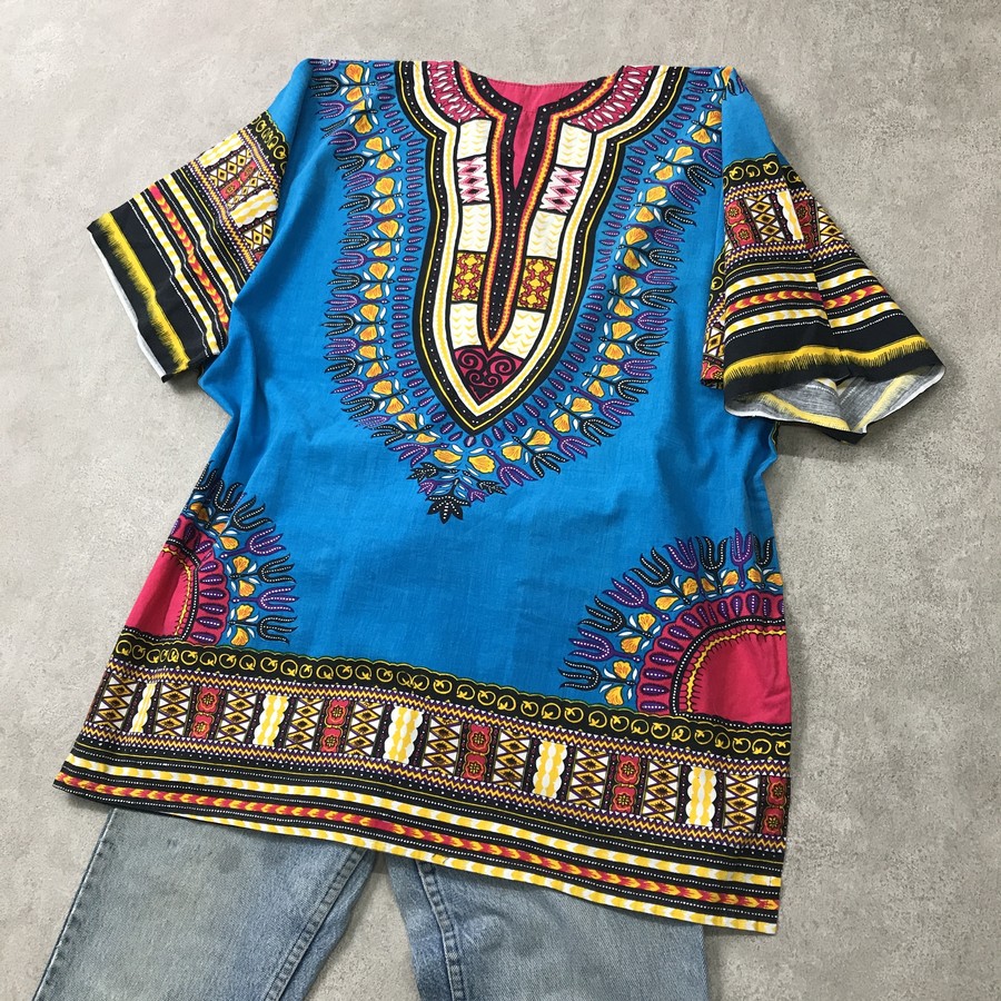ダシキ dashiki チュニックタイプ Dashiki ブルー アフリカ 民族柄 5分Tシャツ アフリカン