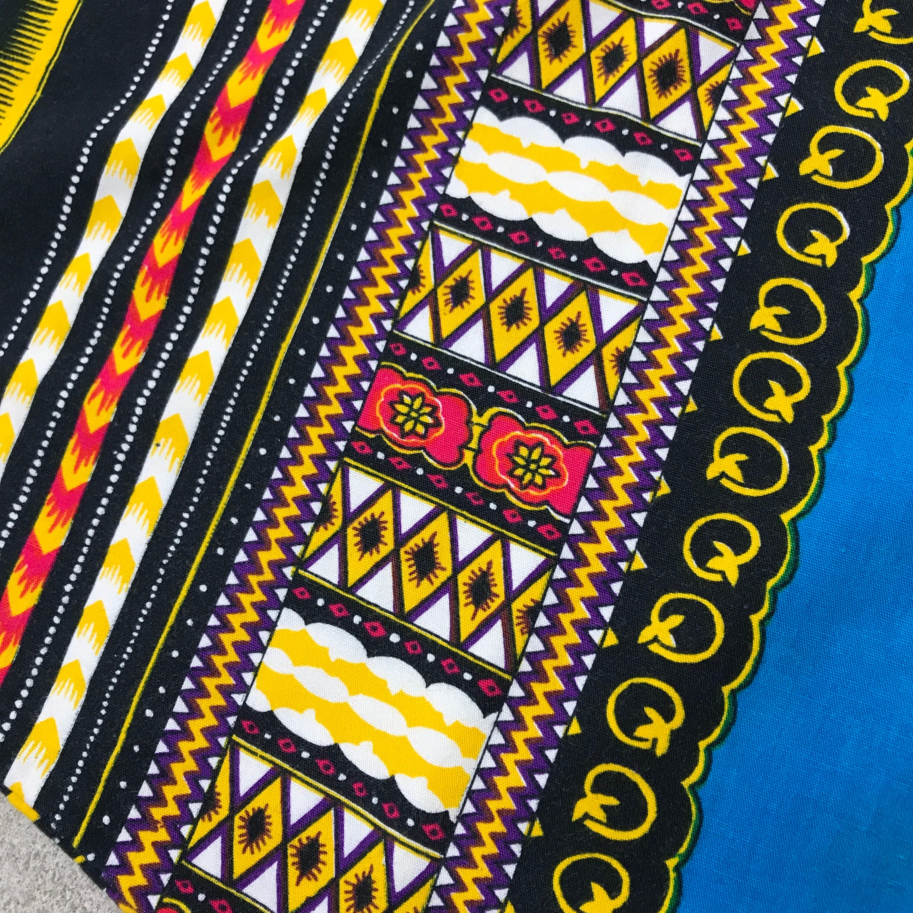 ダシキ dashiki チュニックタイプ Dashiki ブルー アフリカ 民族柄 5分Tシャツ アフリカンプリント プルオーバー 民族衣装