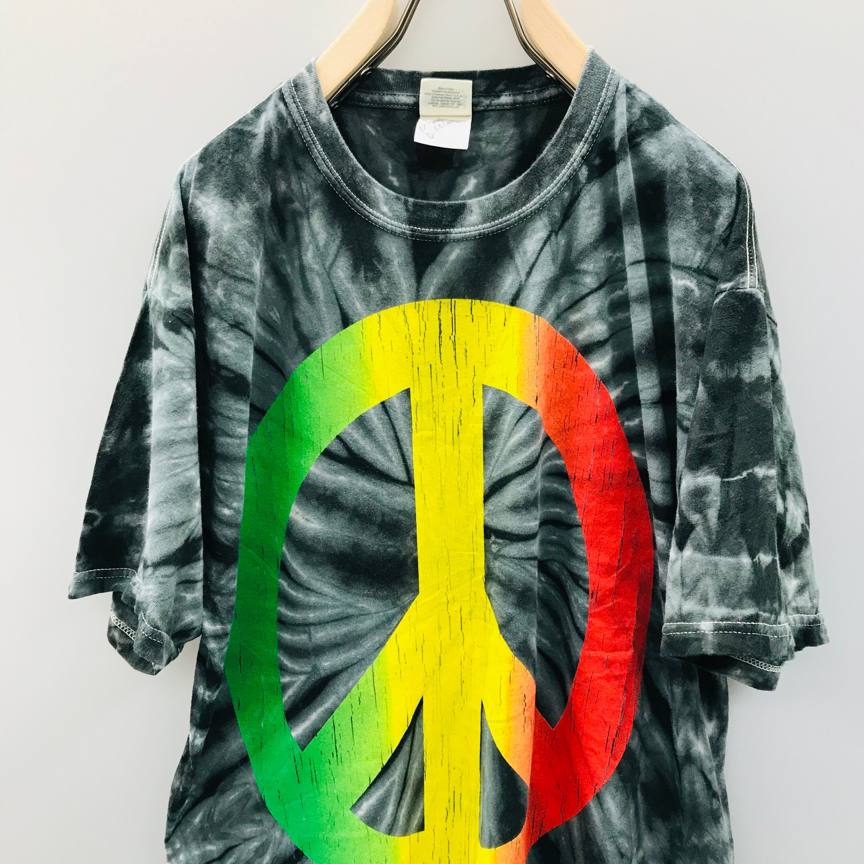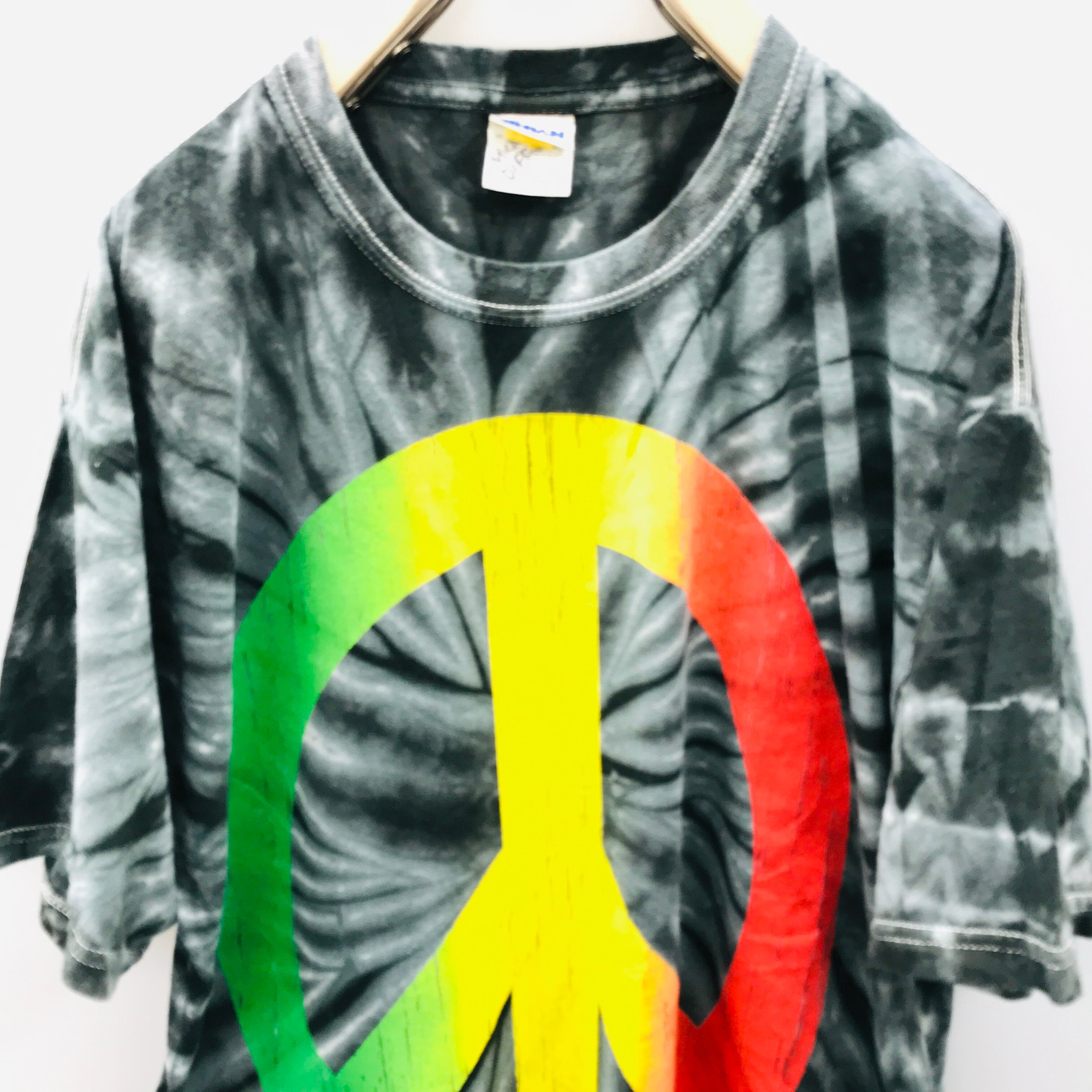 GILDAN LOVE & PEACE ピースマーク デカプリント タイダイTシャツ 古着