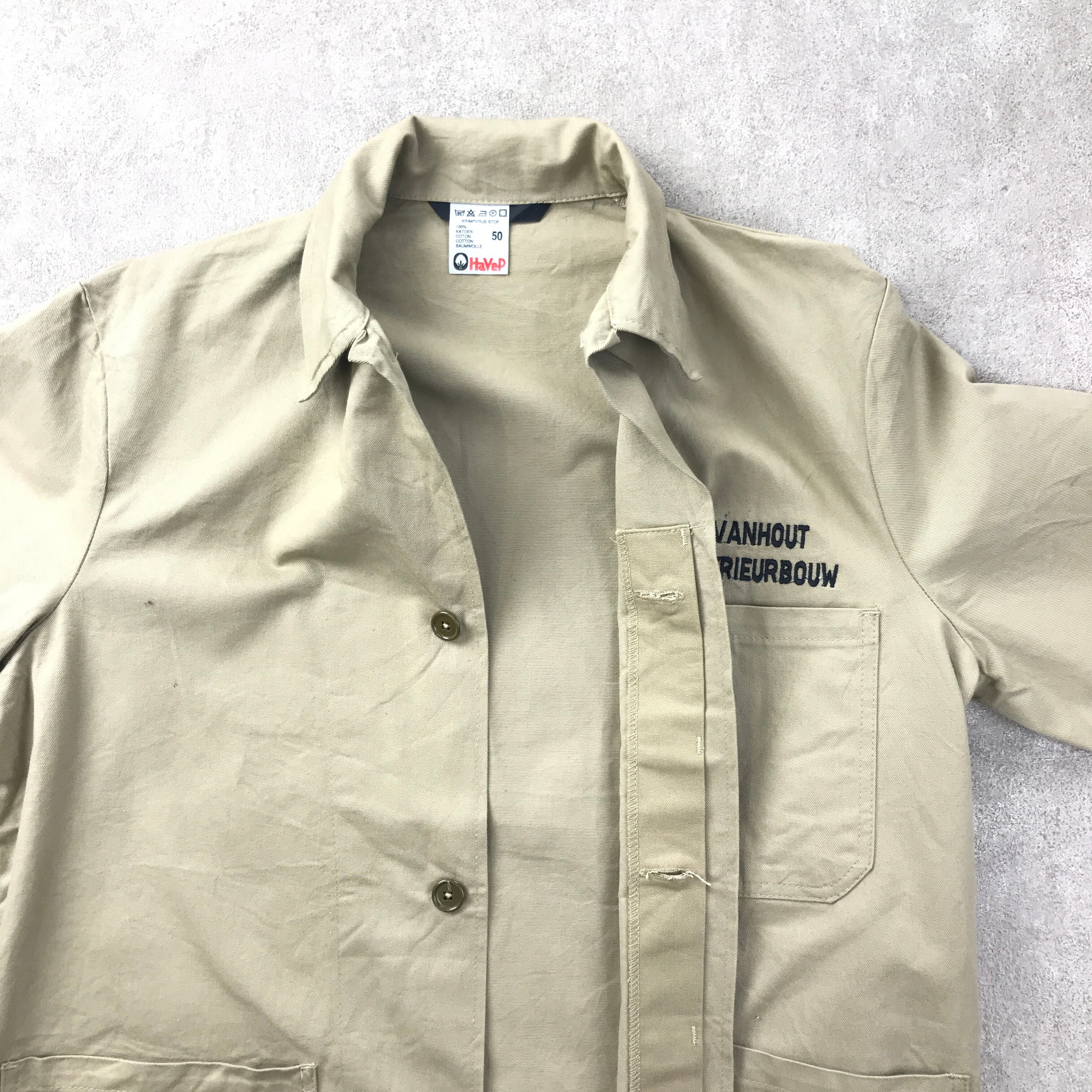 HaVep オランダワークウェアー ベージュカバーオール ユーロワーク フレンチワーク ジャケット VANHOUT INTERIERBOUW 50