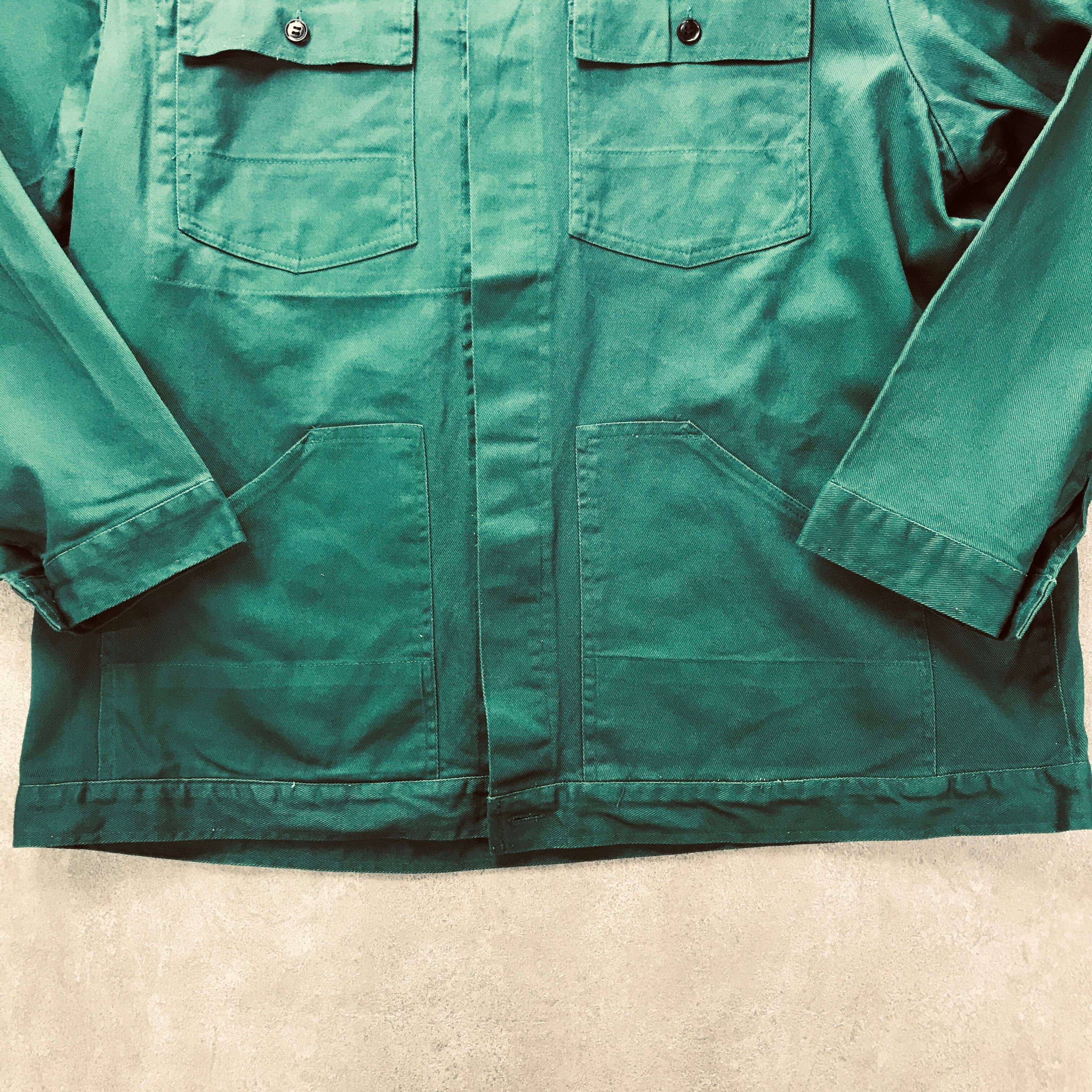 ドイツ ユーロワークジャケット PLANAM グリーン フレンチワークカバーオール ハーフコートタイプ ビンテージ ヨーロッパ古着 60