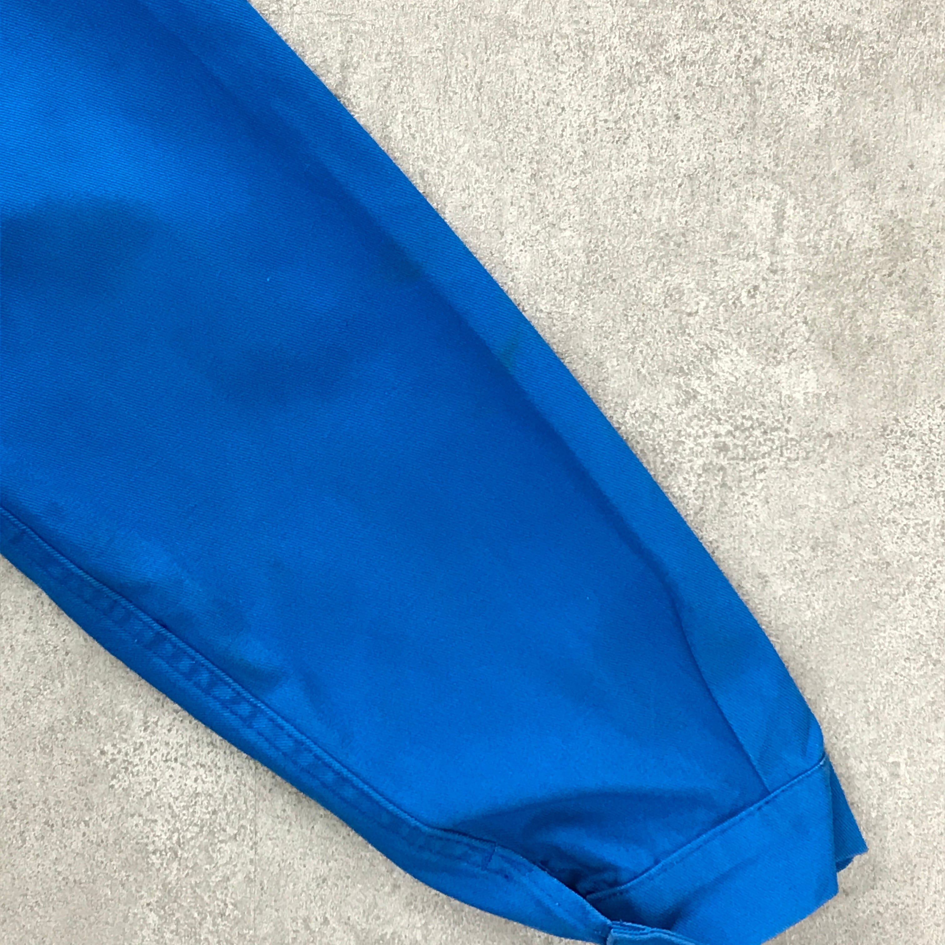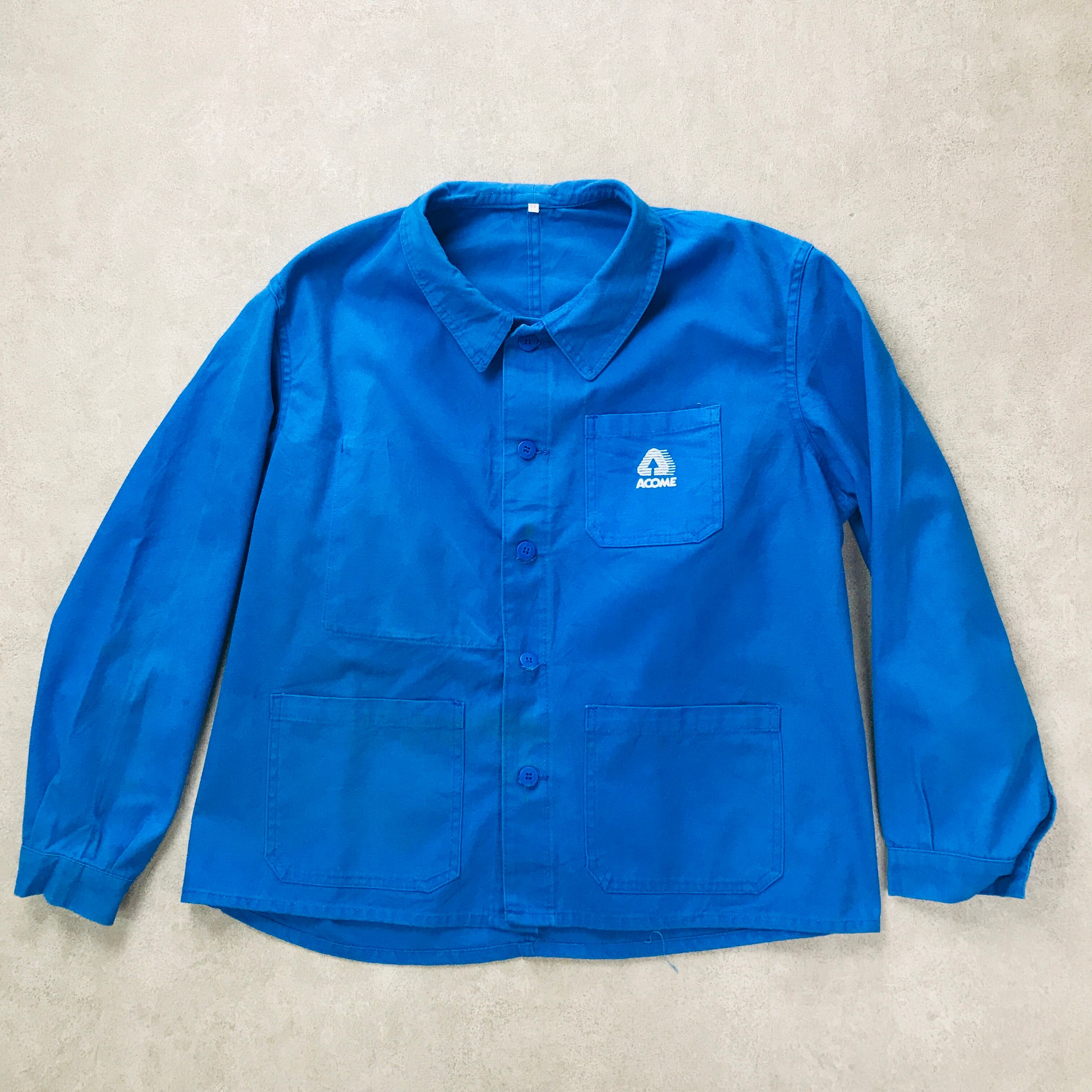 発色の良いブライトライトブルー フレンチワークカバーオール 、ユーロワークジャケット FRANCE ACOME 旧ロゴ胸企業刺繍入り ハーフコートみたいにも! ビンテージ ヨーロッパ古着 54