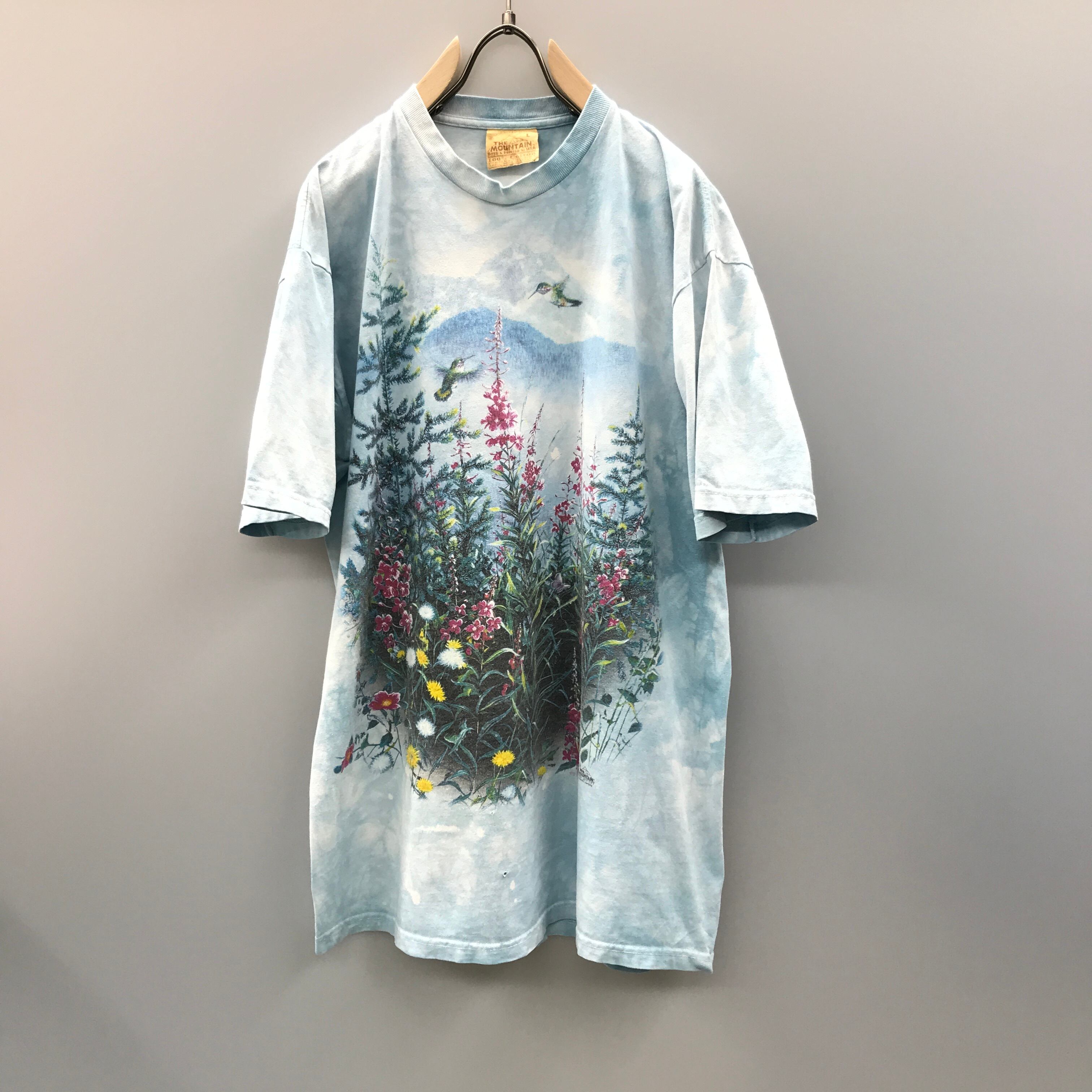 THE MOUNTAIN 山の植物たちとハチドリ アニマルプリントTシャツ タイダイTシャツ ザマウンテン L