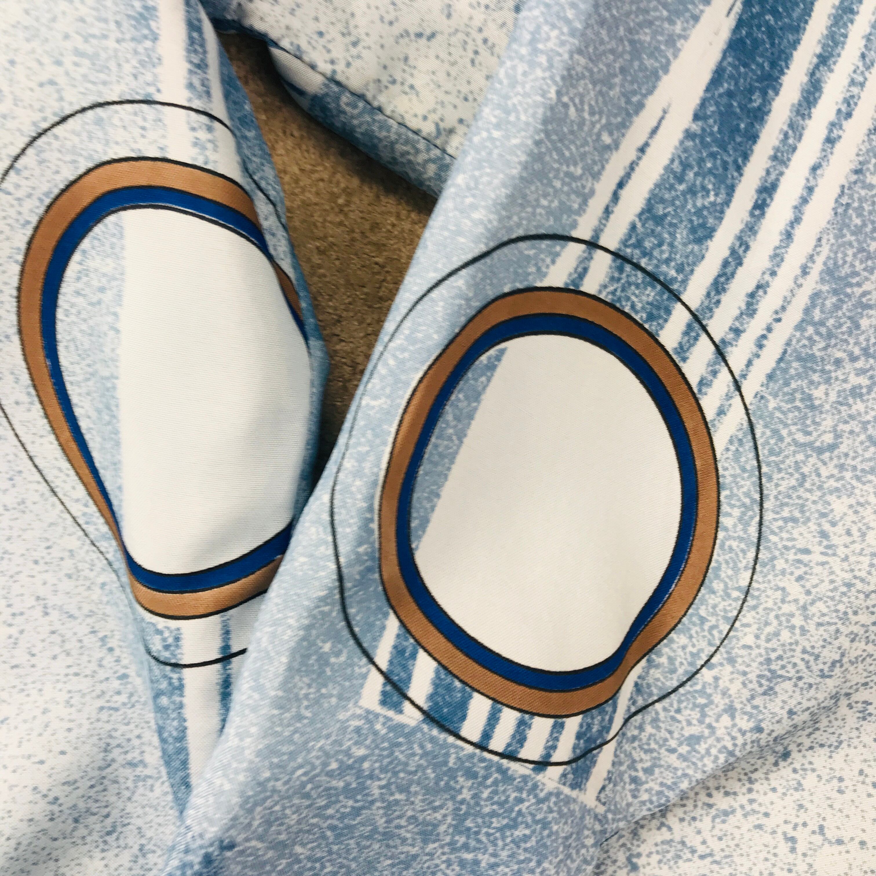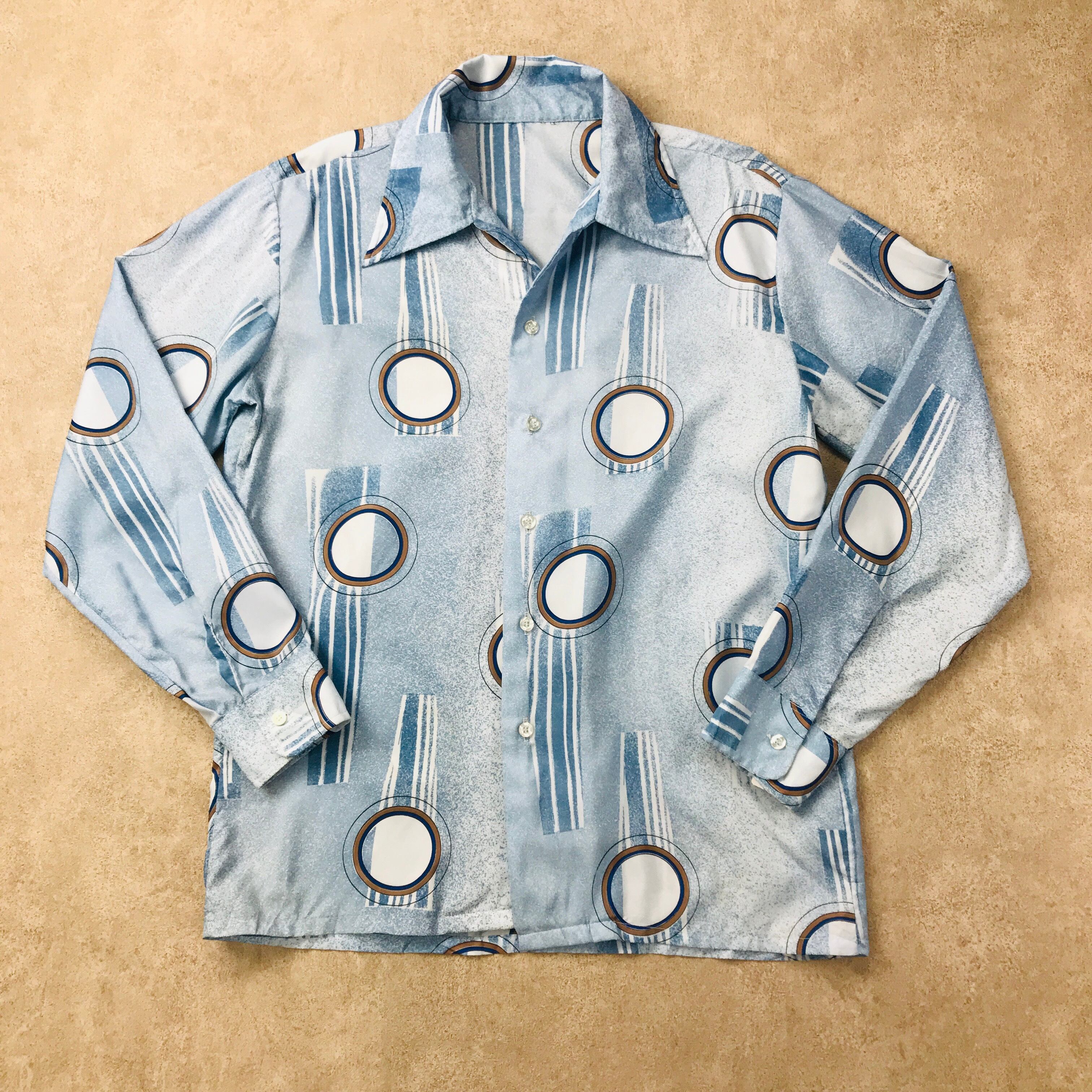 70年代 サークル柄 オープンカラーシャツ ライトブルー ポリエステルシャツ