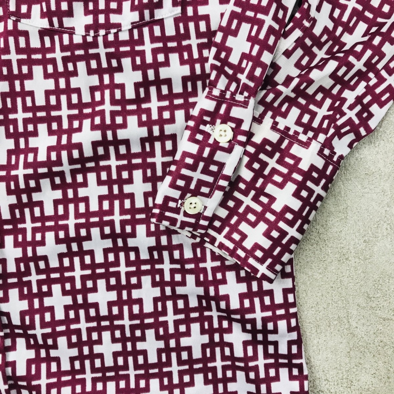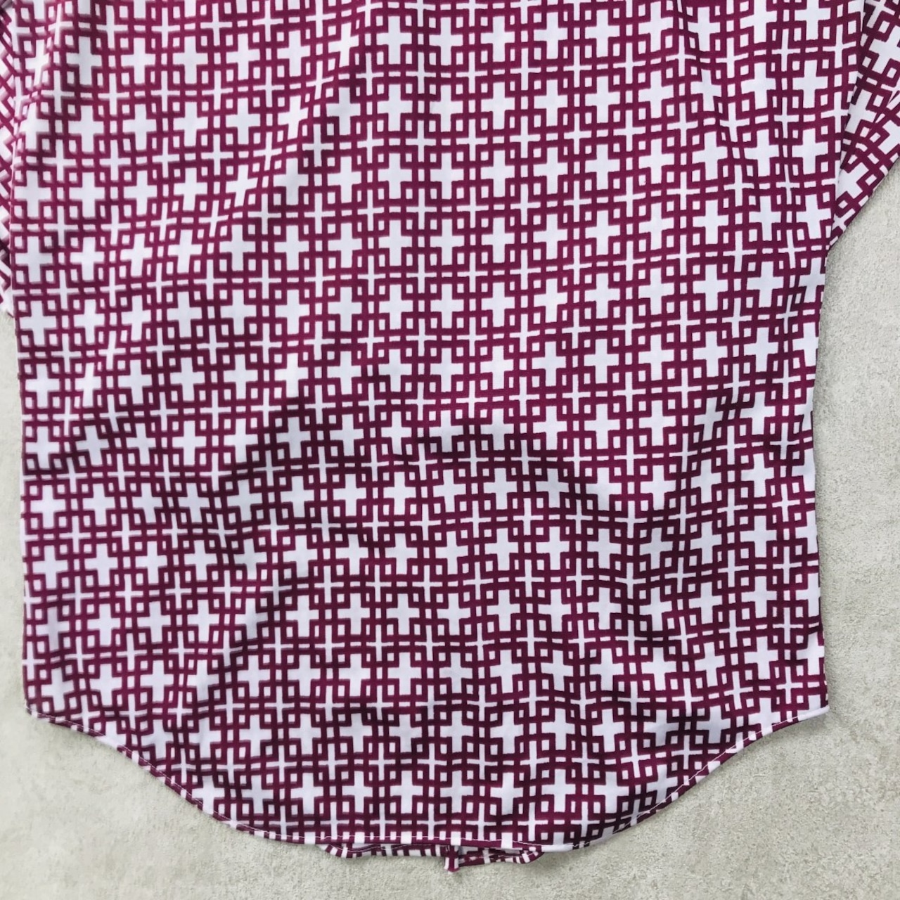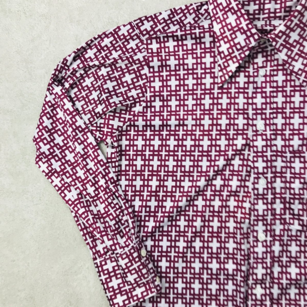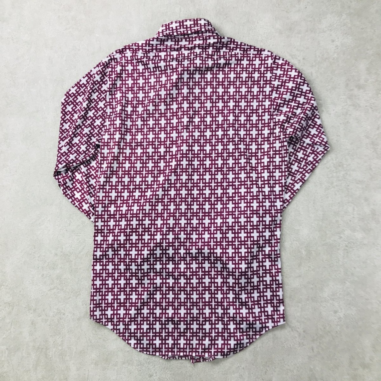 70年代 十字クロス 連続 柄シャツ えんじ ポリエステルシャツ