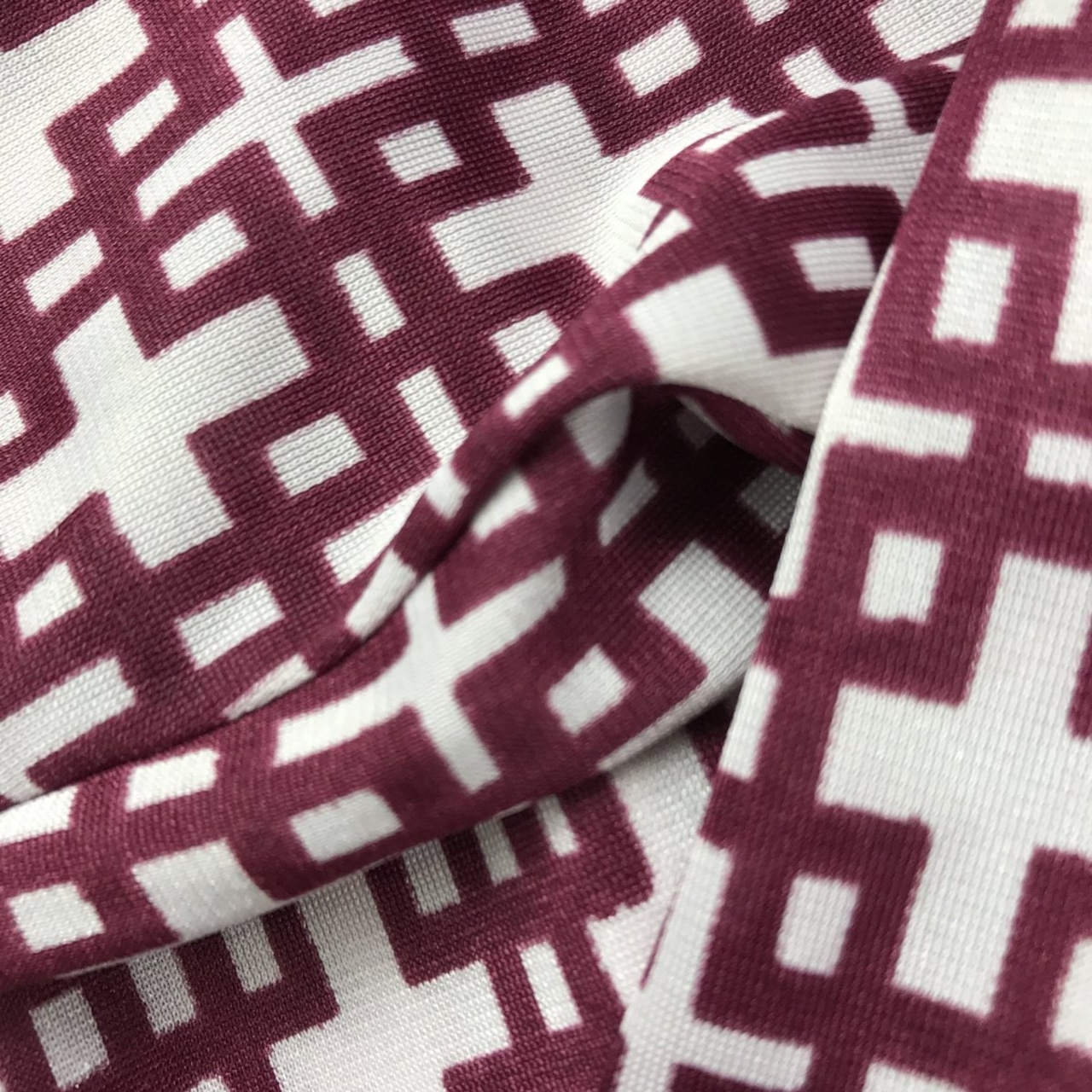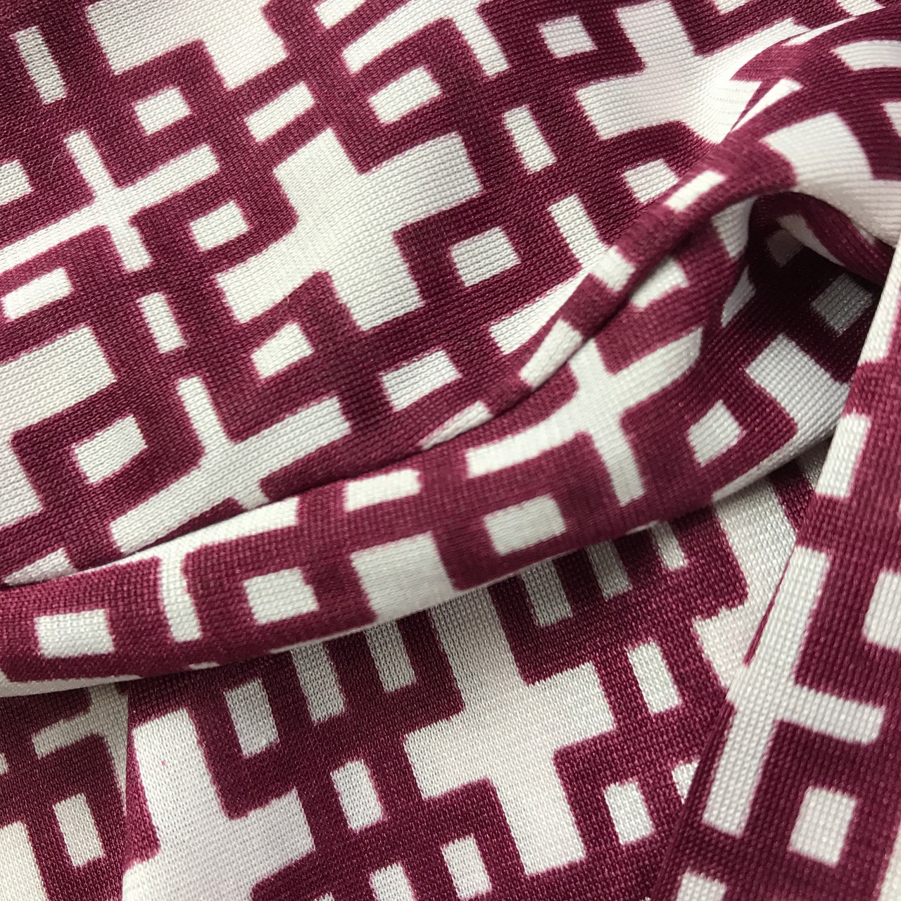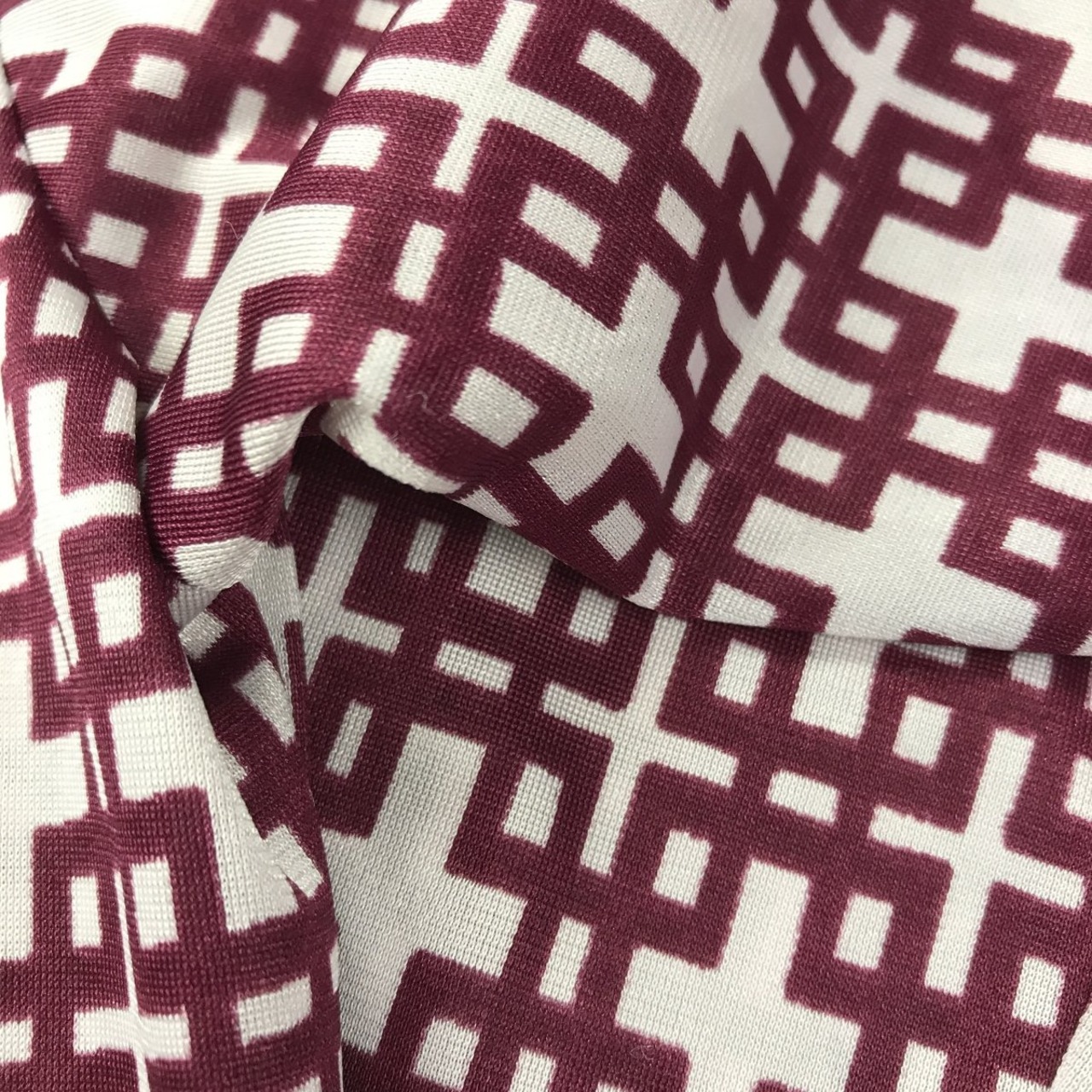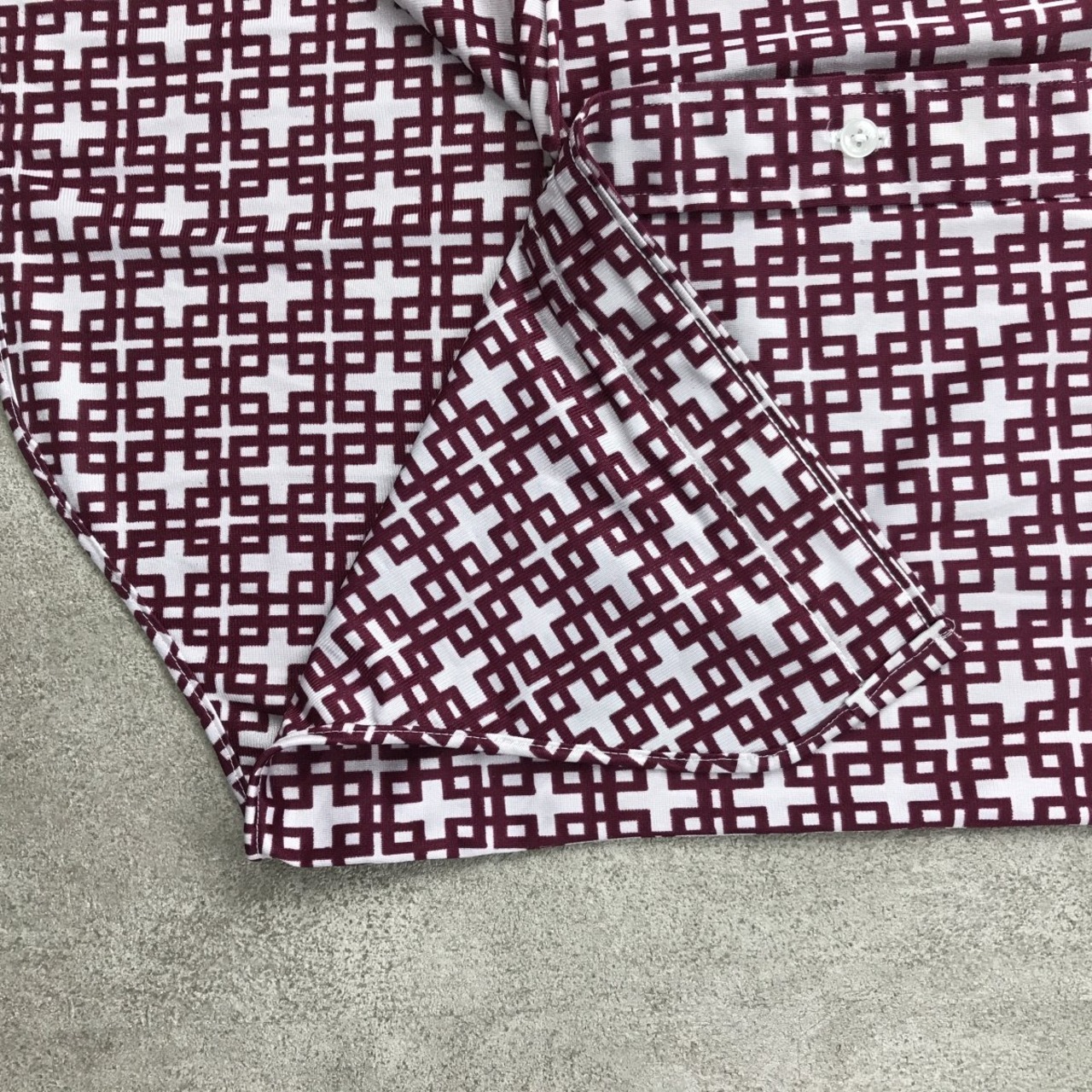 70年代 十字クロス 連続 柄シャツ えんじ ポリエステルシャツ