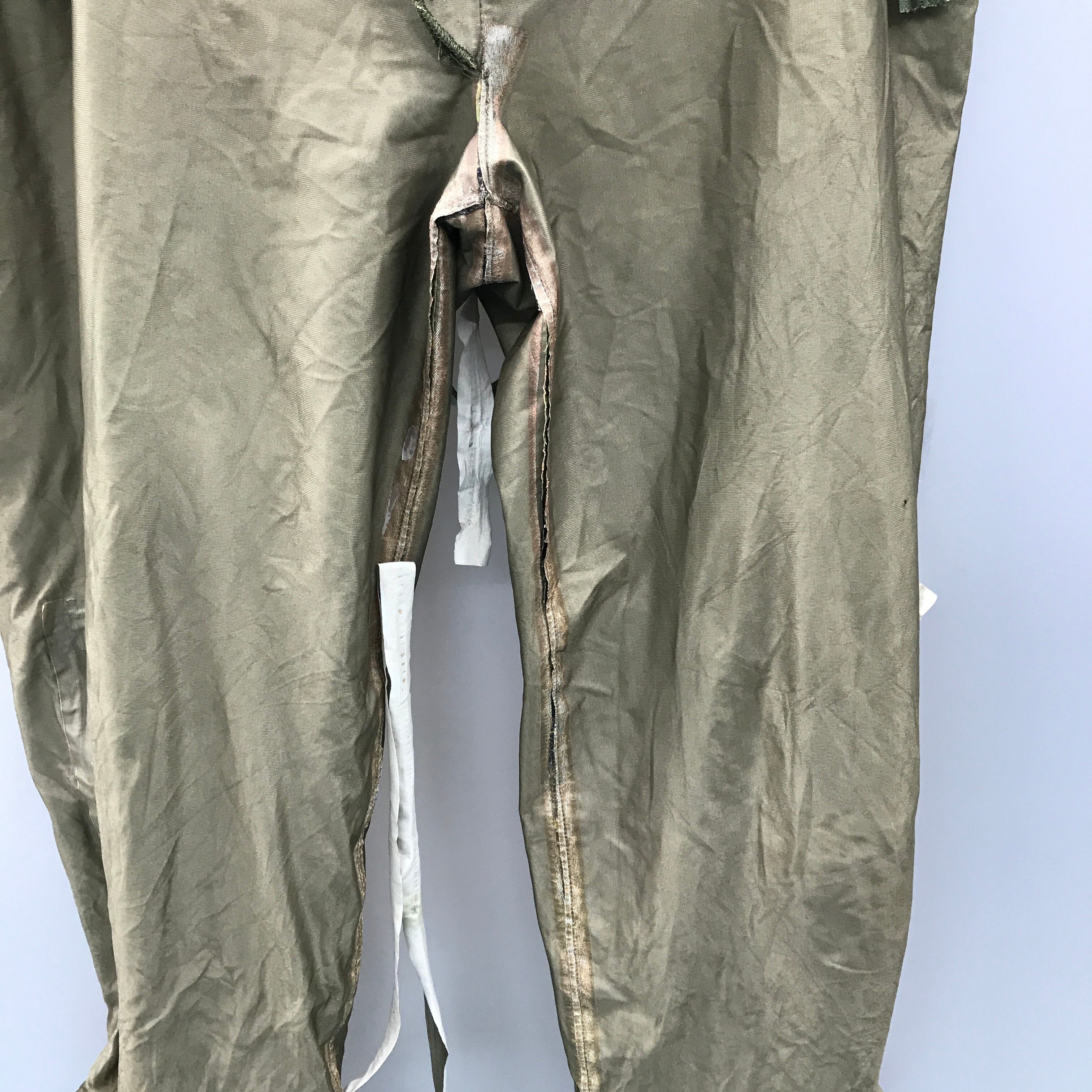 実物 USED ドイツ軍 オーバーパンツ フレックカモ オーバーオール シンパテックス? フロントにボンド(樹脂)のような汚れがあります。内側の止水テープも劣化しはがれてきています。サスペンダーゴムは伸縮性あります。ジッパーはすべて稼働します。素材は防水素材です。ポケットは貫通タイプでウエストはマジックテープで調節可能です。※現状で状態が悪いのでお安くしています。お洒落で安い雨具をお探しであればどうぞ。