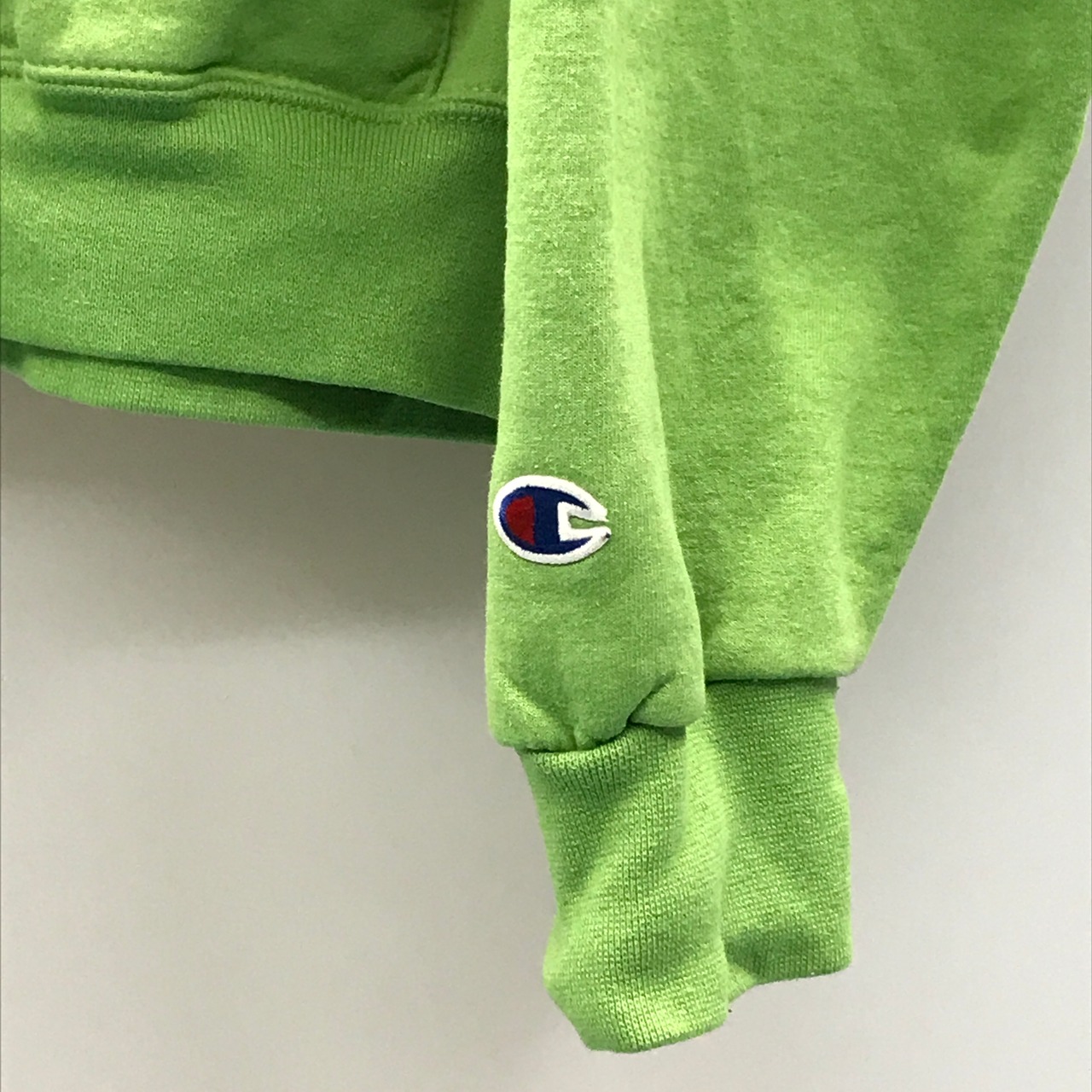 90〜00年代 CHAMPION チャンピオン ビッグサイズ!袖C目刺繍入り EYOUTH FRONT CAMP プリント入り スウェット パーカー イエローグリーン Yellow green