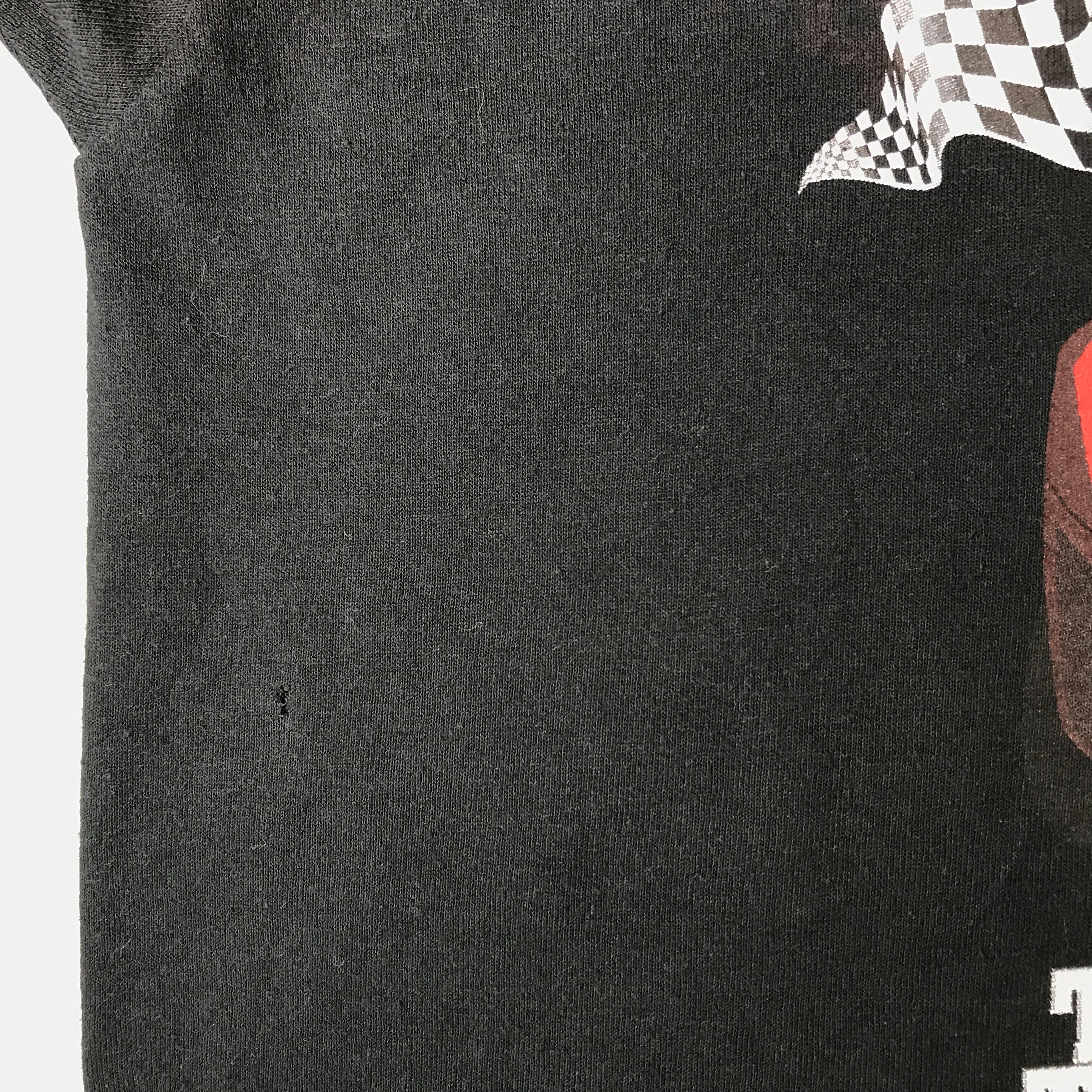 ↑ ※バックプリントあり、前右に小さな穴あります裾上げ、色褪せ、汚れあります