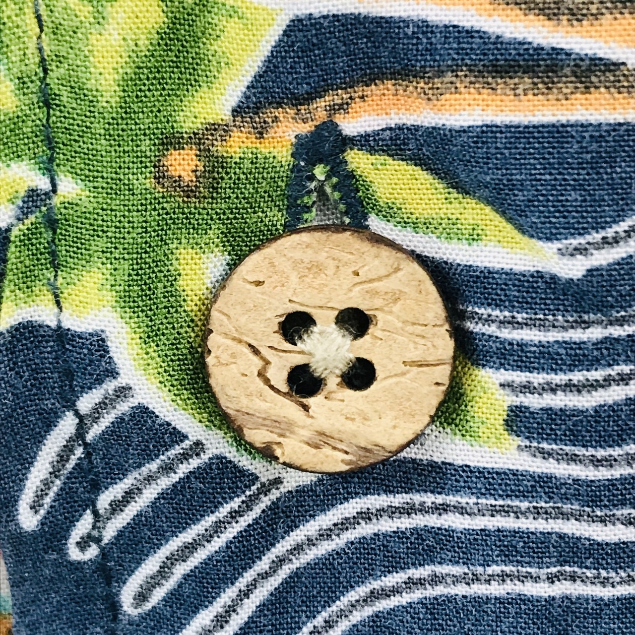 ヤシの実ボタン、やわらかレーヨン100%が柄とマッチしていますー