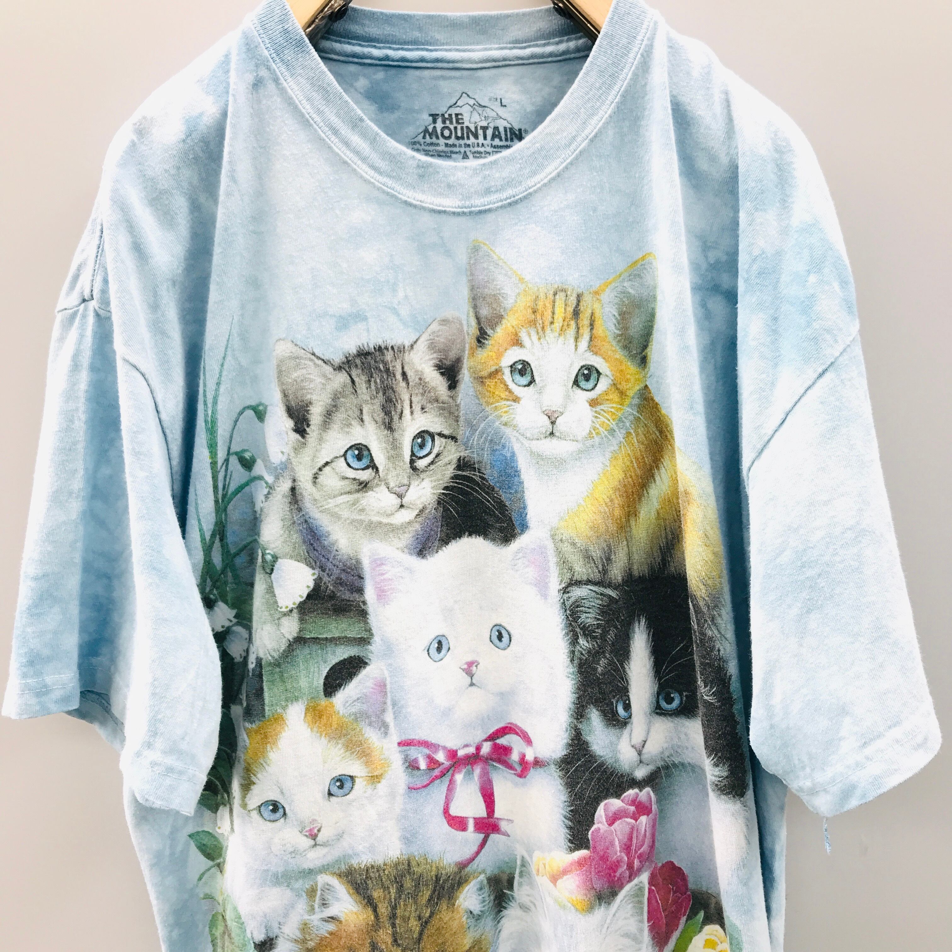 L THE MOUNTAIN Jenny Newland これまた猫たくさん、ビッグサイズ! kitten達 アニマルプリントTシャツ タイダイTシャツ ザ マウンテン うすい水色