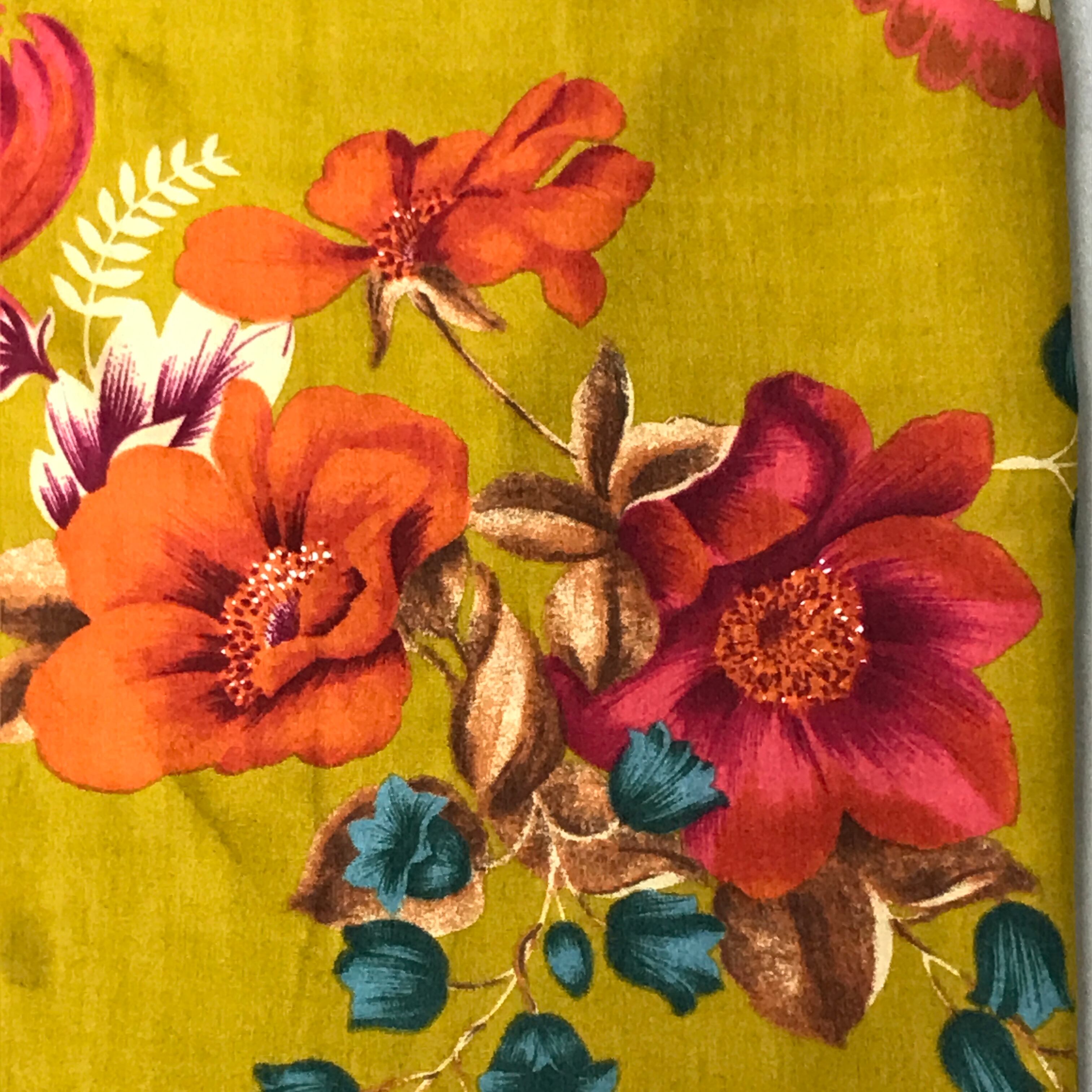 ITALY SIMONE N.G レーヨンブラウス レトロテキスタイル調 花柄 ビンテージ MADE IN ITALY 濃い目のマスタードカラーが個性的!