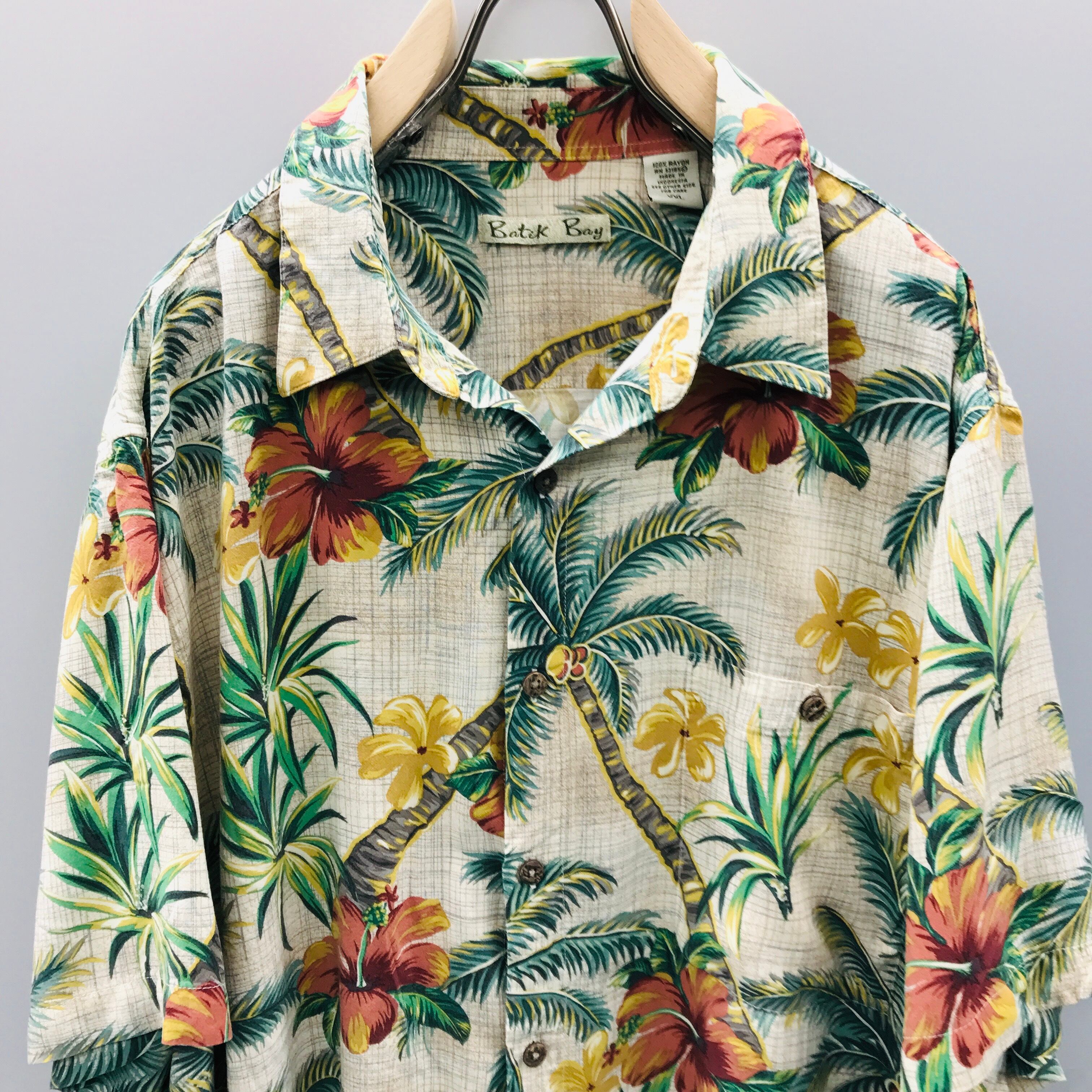 XXL Batik Bay レーヨンアロハシャツ ハワイアンシャツ 総柄 半袖 シャツ アメリカ USA古着 総柄 半袖