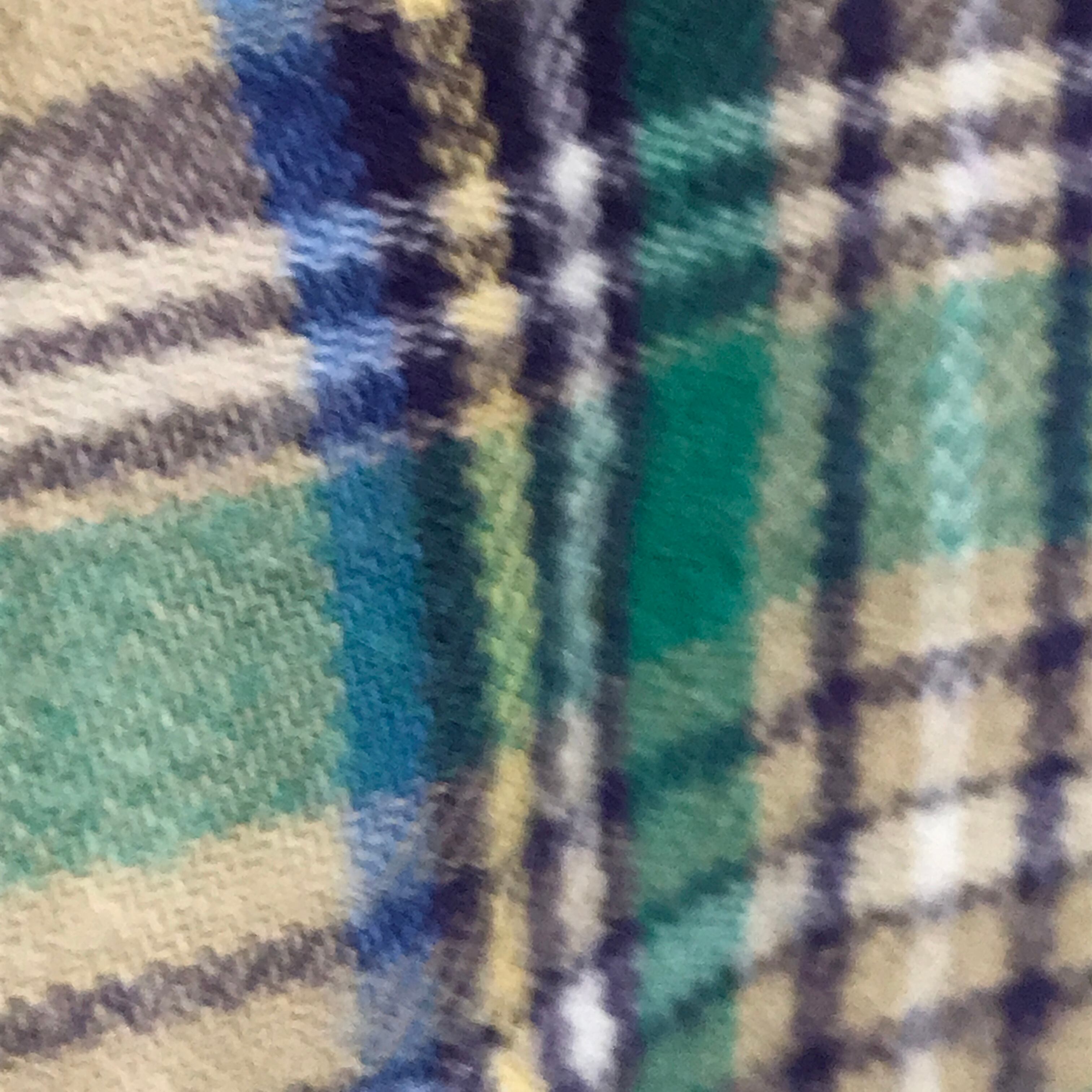 うすいベージュ地に濃いミントグリーン、ネイビー、ライトイエロー、ホワイトが
