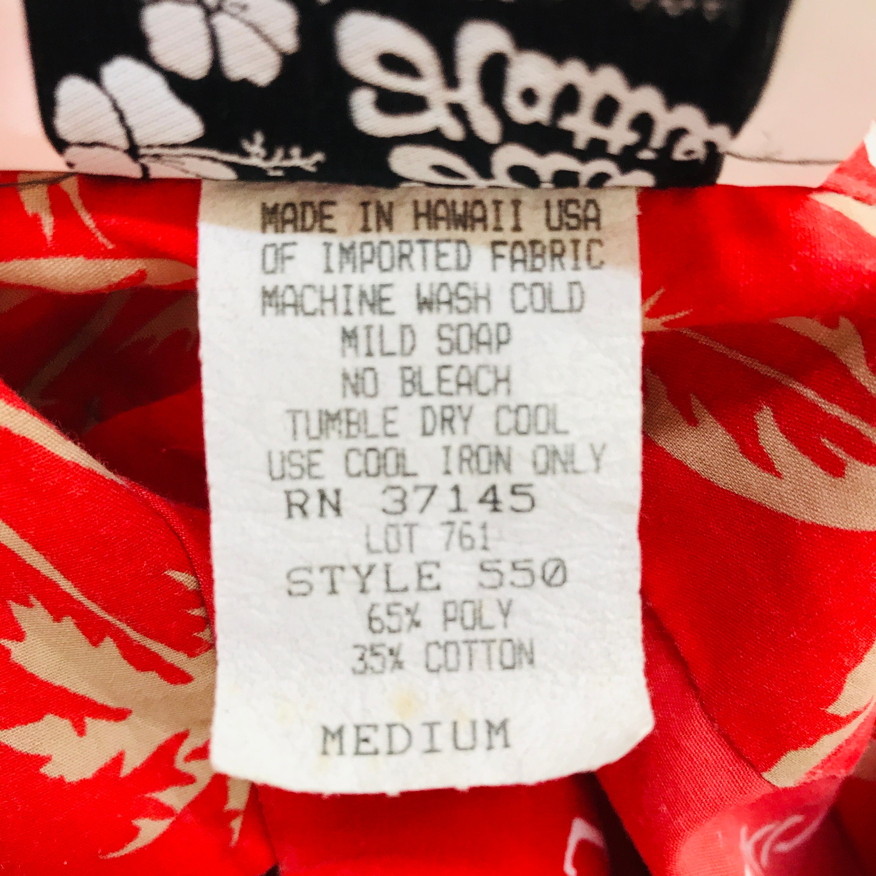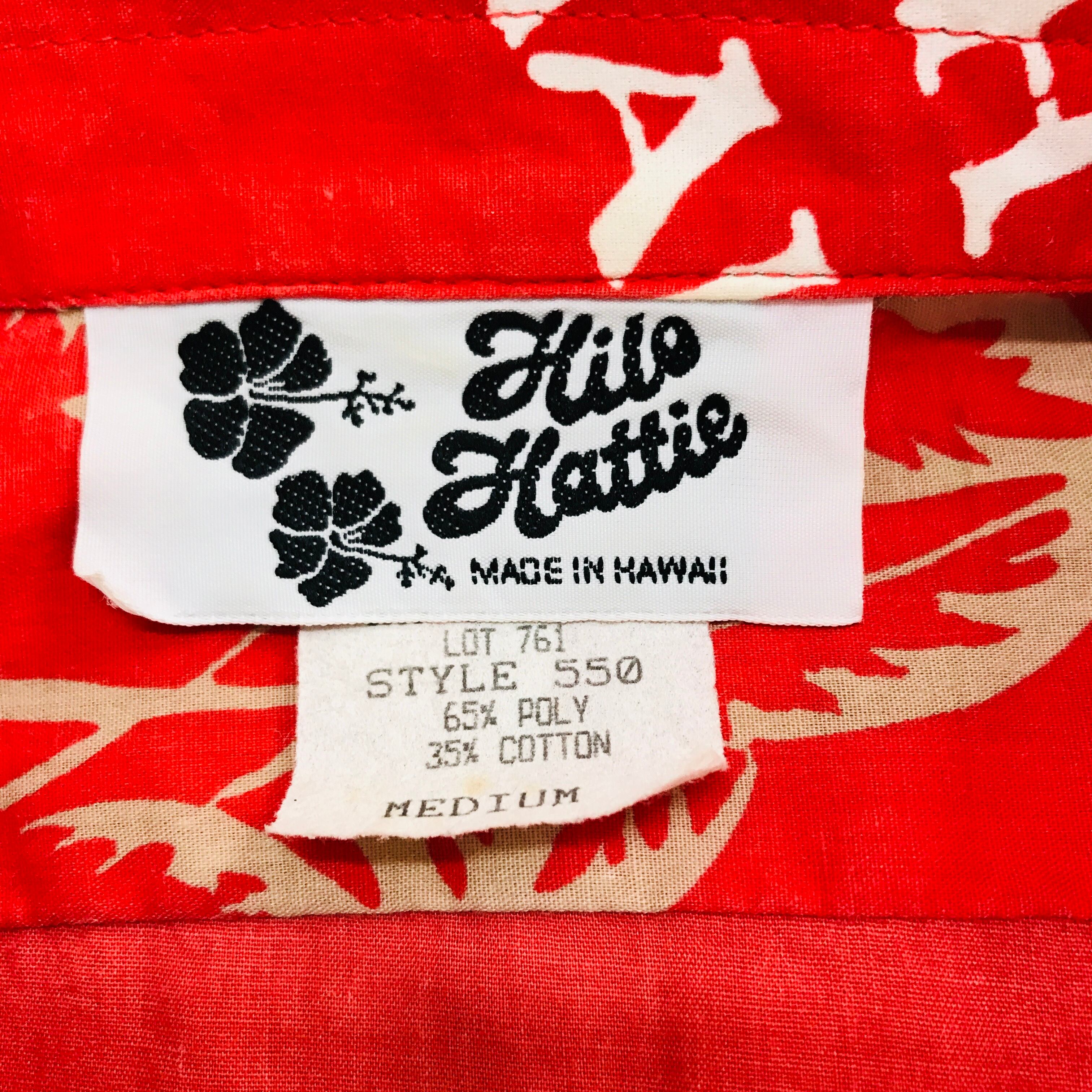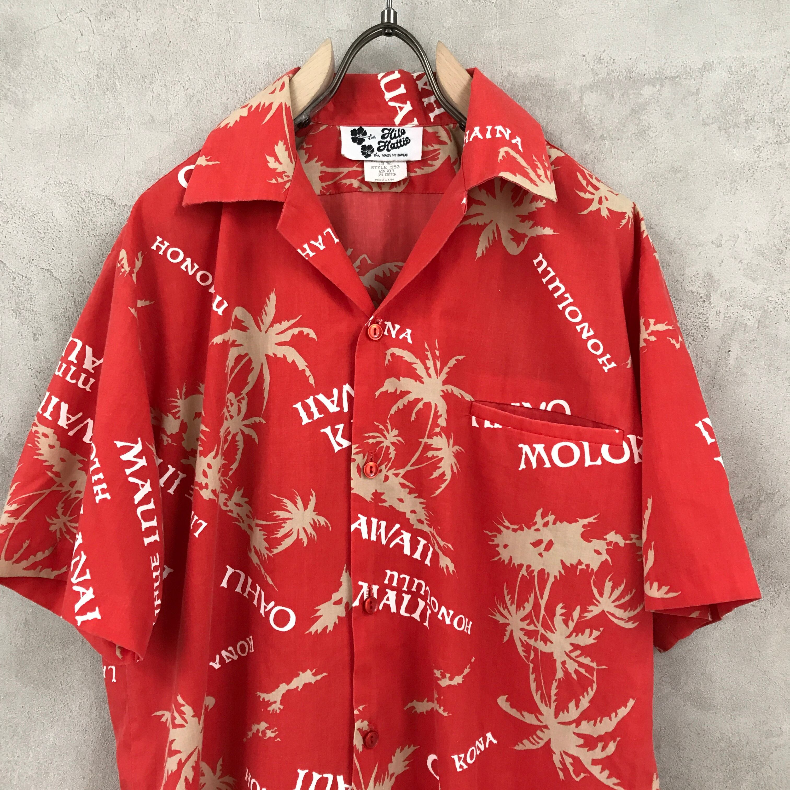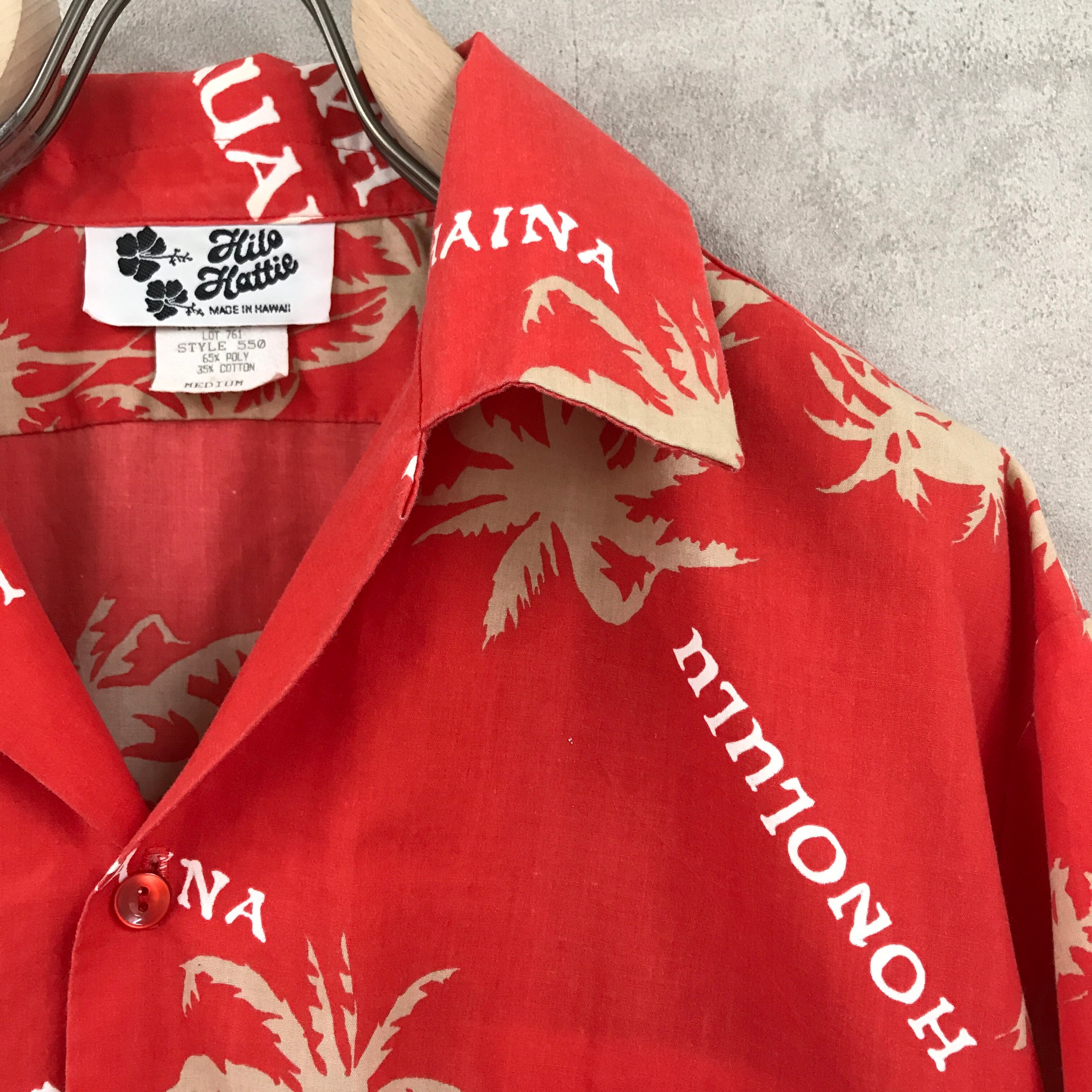 80年代 ハワイMADE Hilo Hattie ヒロハッティ レッド80's 柄シャツ ハワイアン アロハシャツ