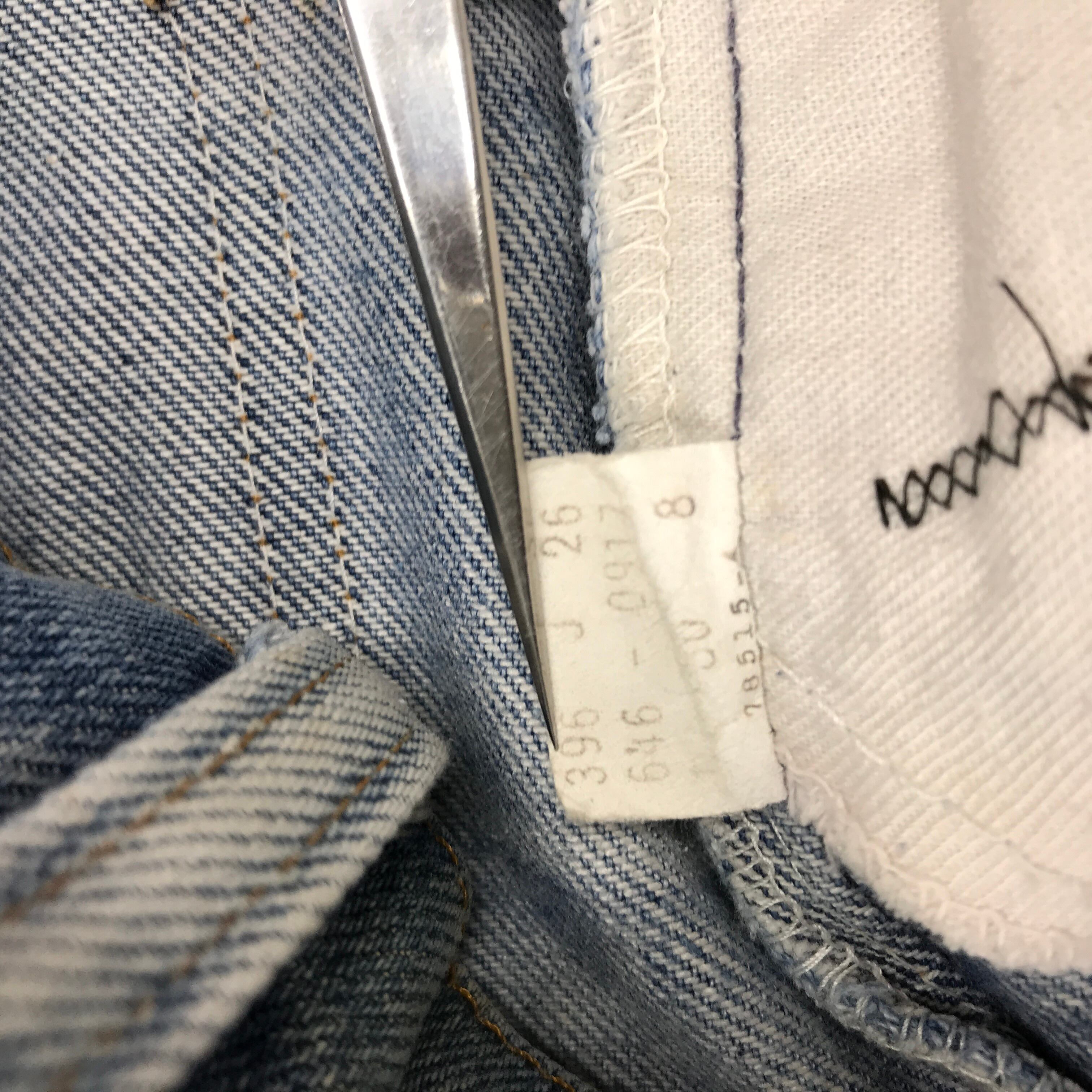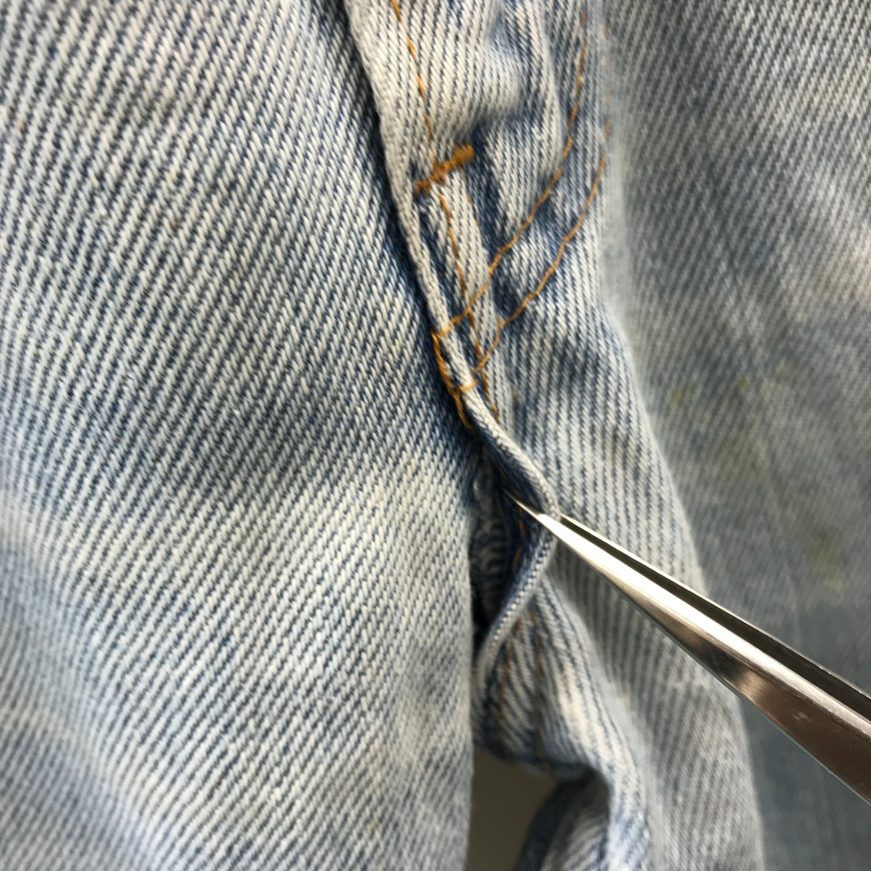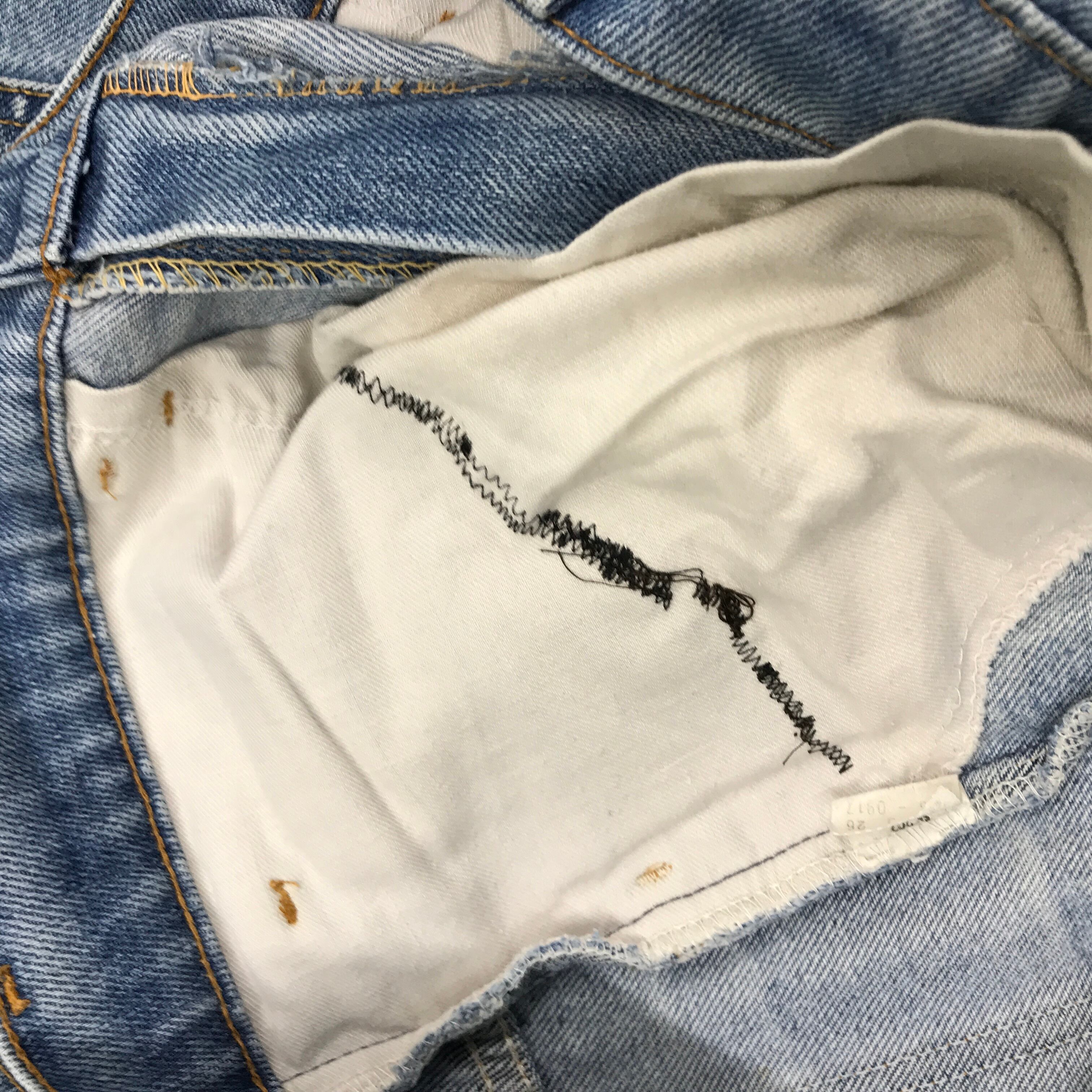 80年代前期頃の646です。裾上げもリペアもザツにされています。お色も薄いですそ汚れもあります。オレンジタブはちぎれてます。股下もほつれてきています。