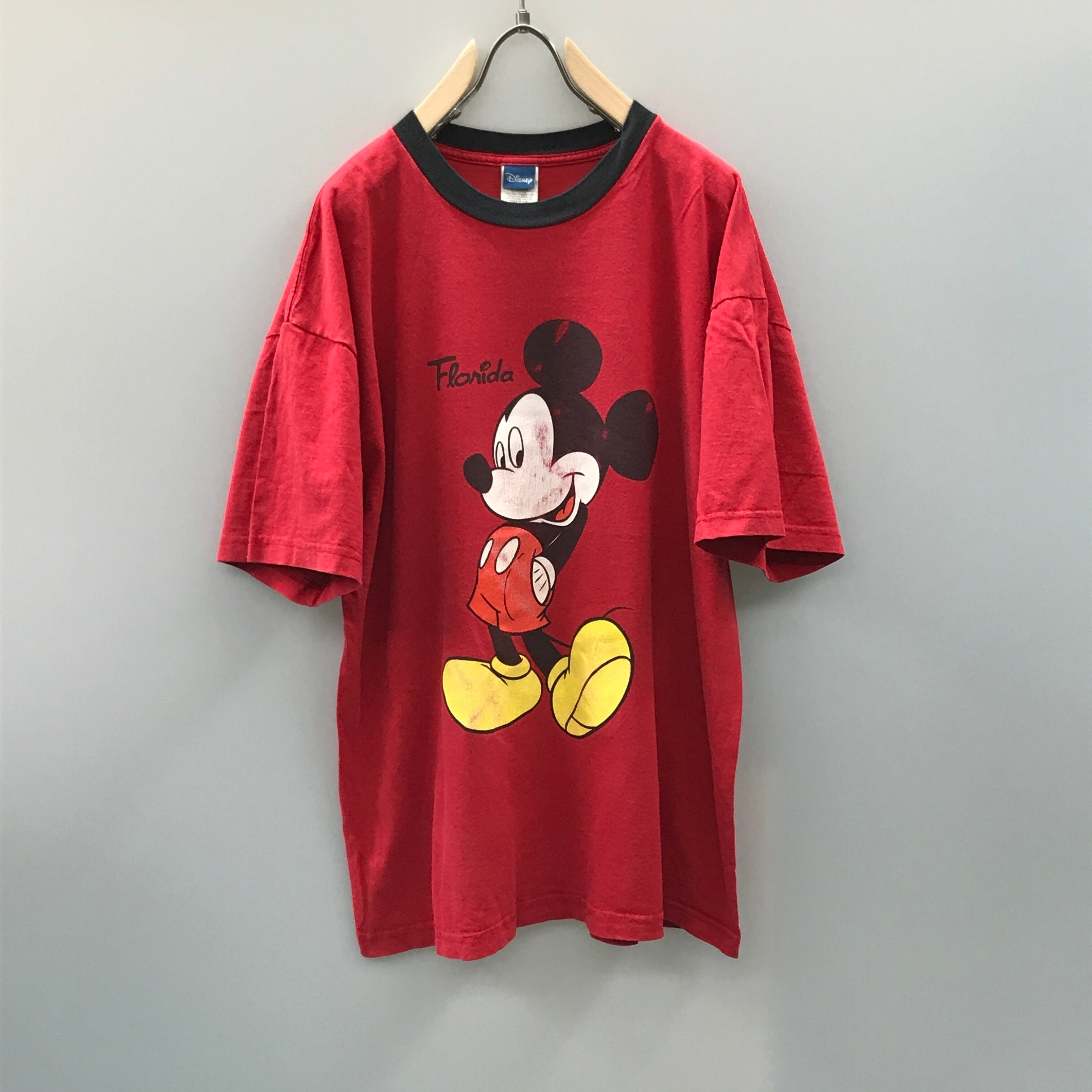 XL ブラックトリム Frorida Mickey Mouse ミッキーマウス プリントT レッド Disney