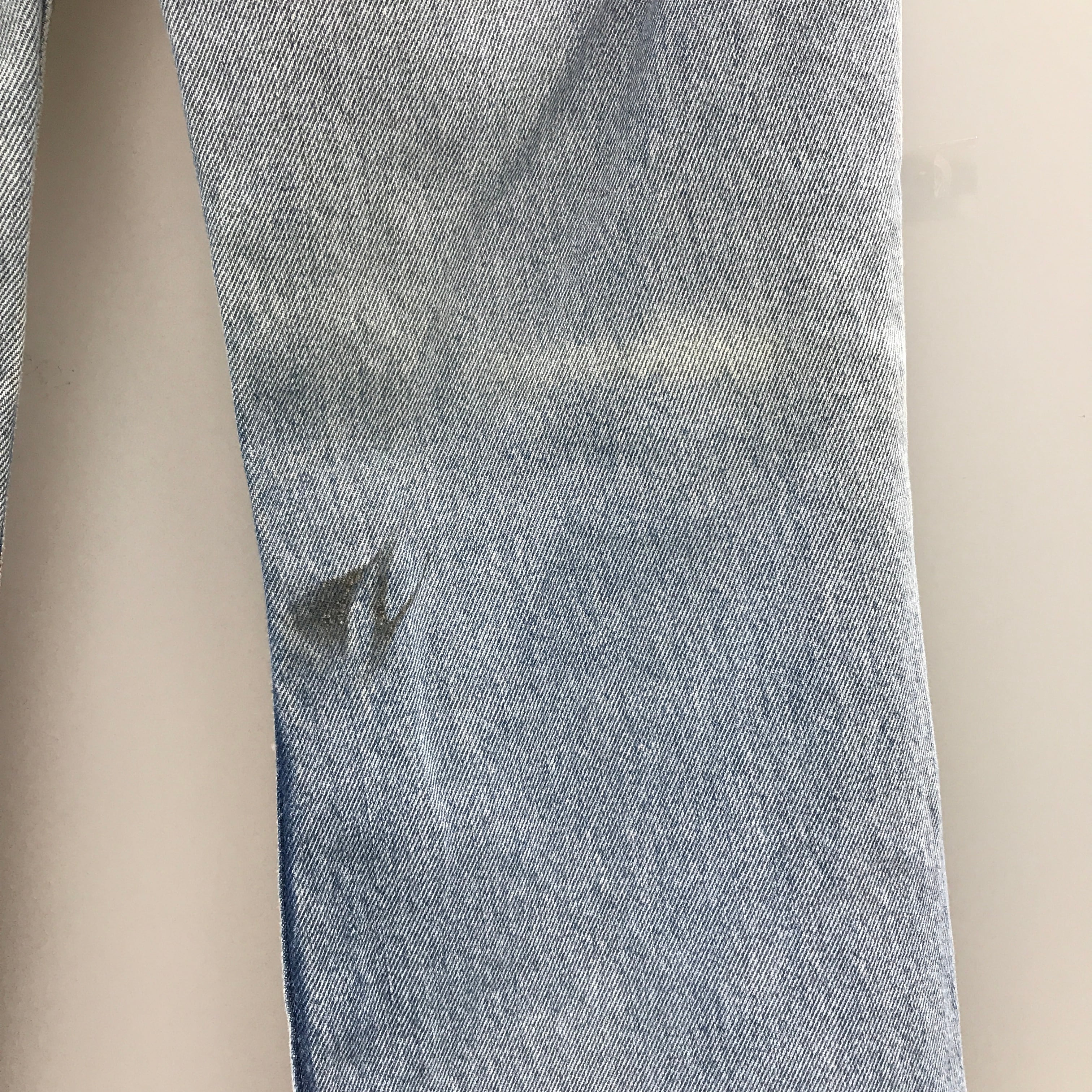 90年代前期頃の517です。US規格のジュニアサイズは日本人の体形にドンピシャで女性にもおすすめです。裾上げしていますが、色目も爽やかでいい雰囲気です。右ひざ裏に汚れと薄汚れがところどころにあります。裾も少し傷んでます。写真で確認してください。