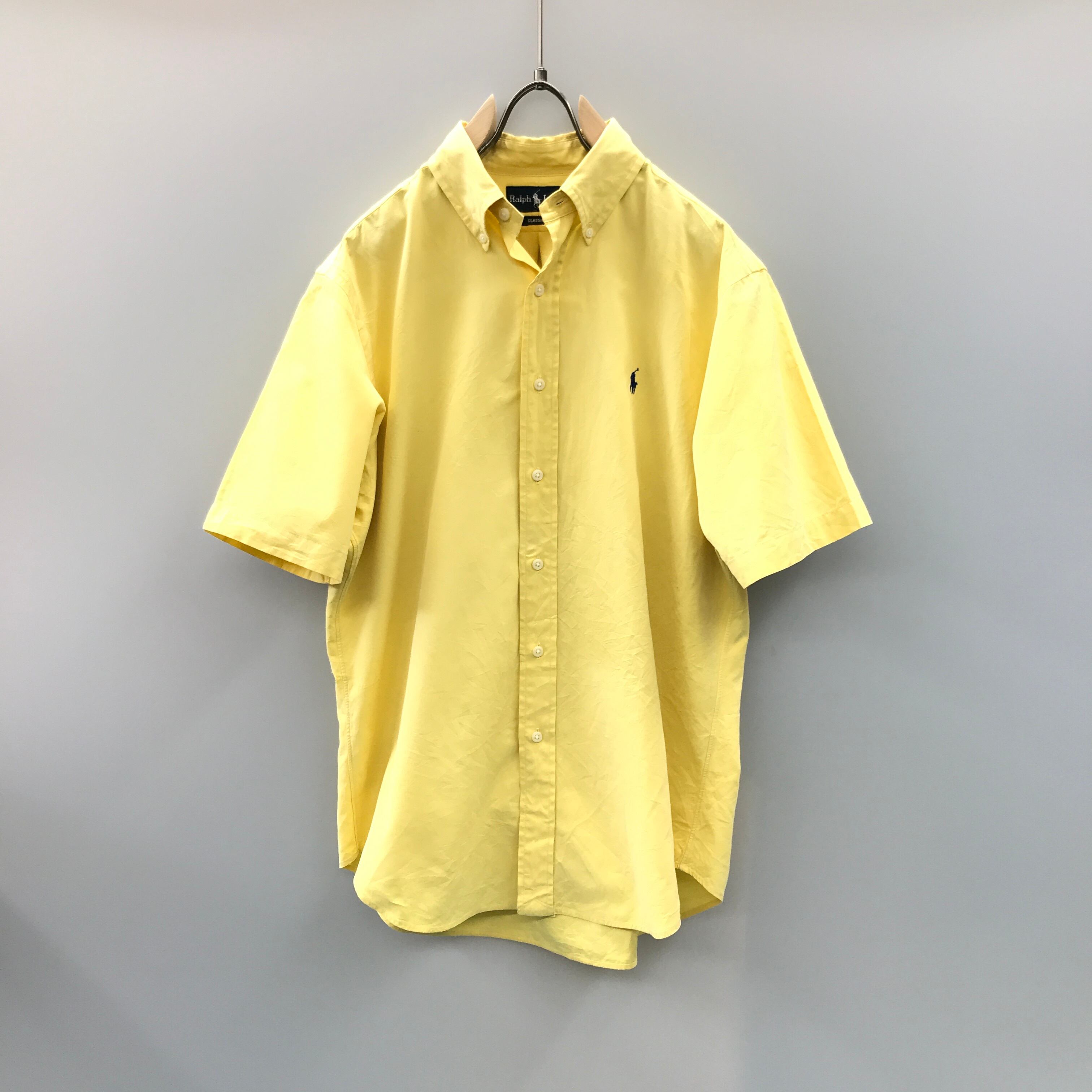 90年代 ラルフローレン Ralph Lauren SHIRTS 半袖 なめらかコットンシャツ ボタンダウン ワンポイント ロゴ 刺繍 旧タグ US-M サイズ ライトイエロー