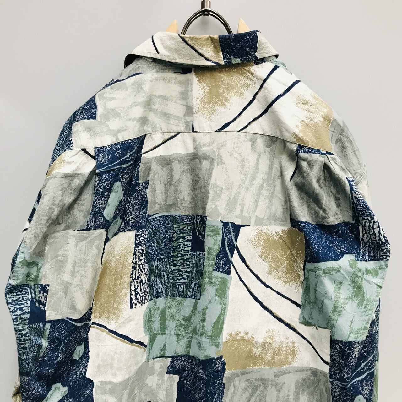 L 柄シャツOLD JPN SENT ARSER ウォールアート、抽象画柄 長袖総柄シャツ