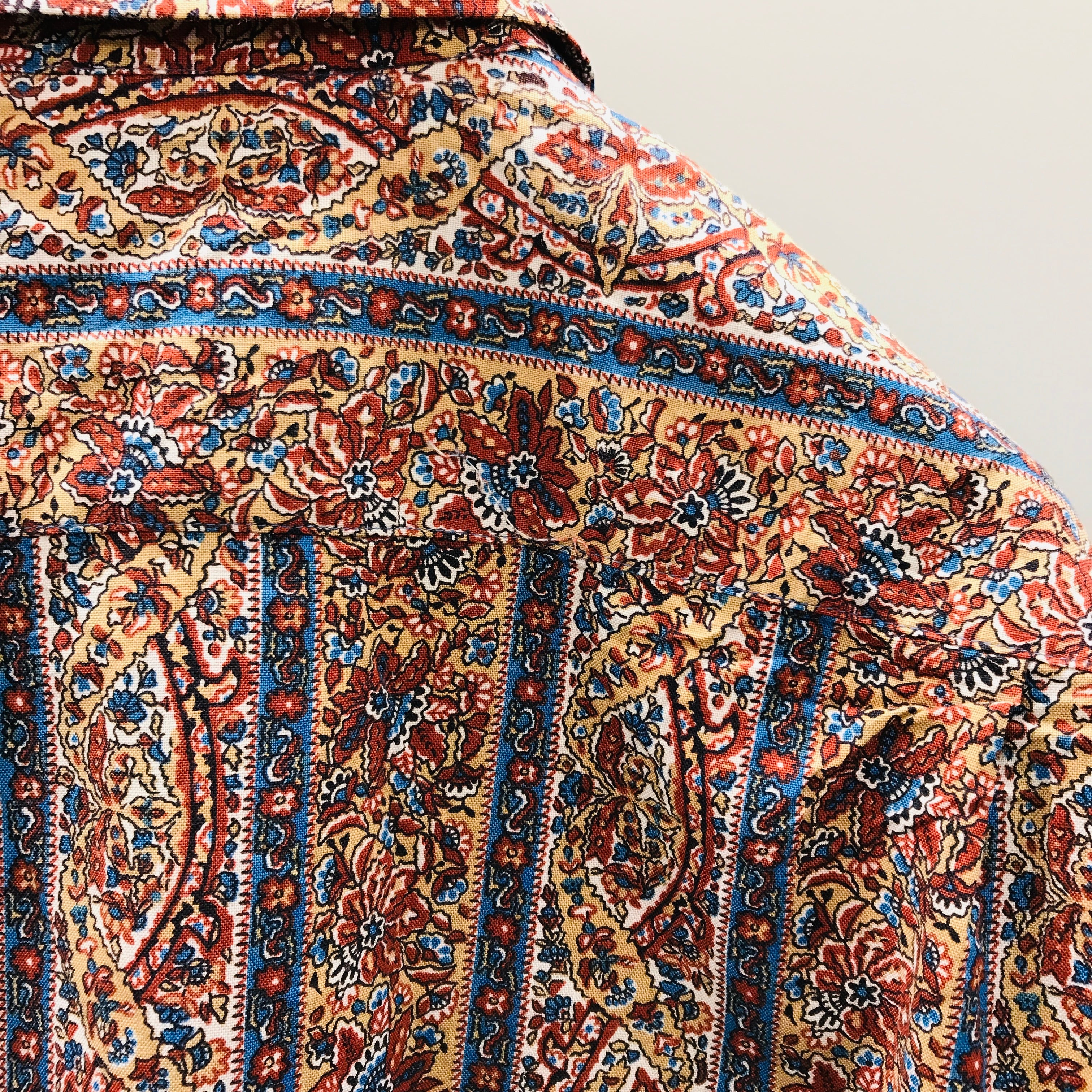 90年代 GUY OLD JPN 総柄 ゆるいアラベスク風柄 長袖 コットン 柄シャツ ベージュ×えんじ