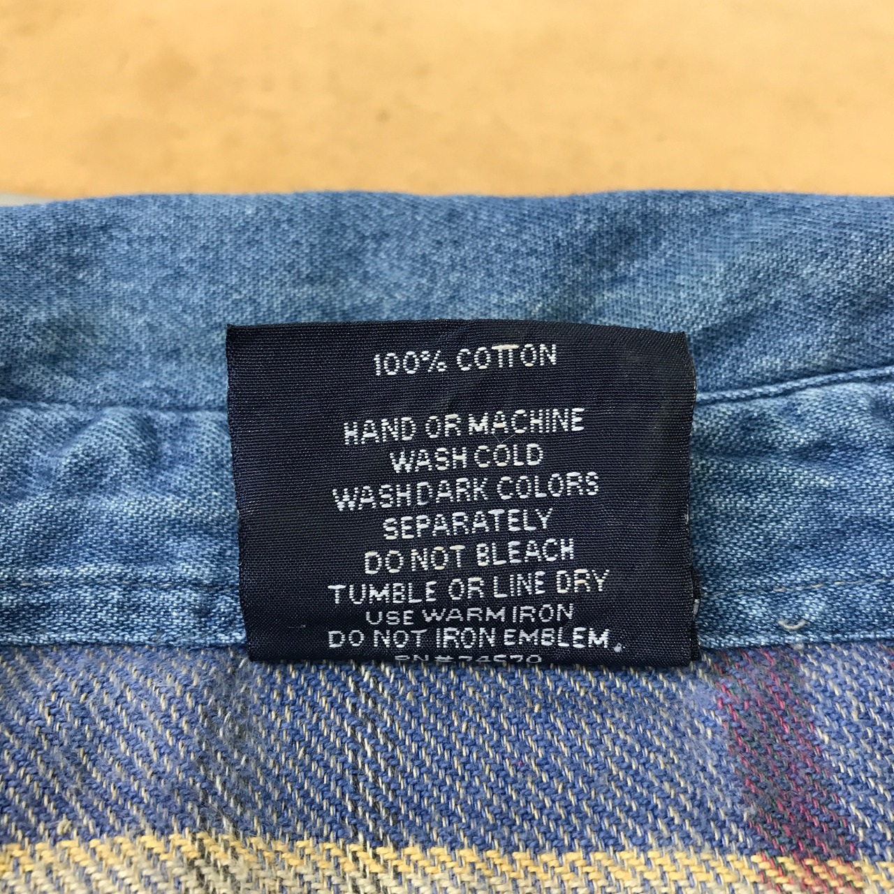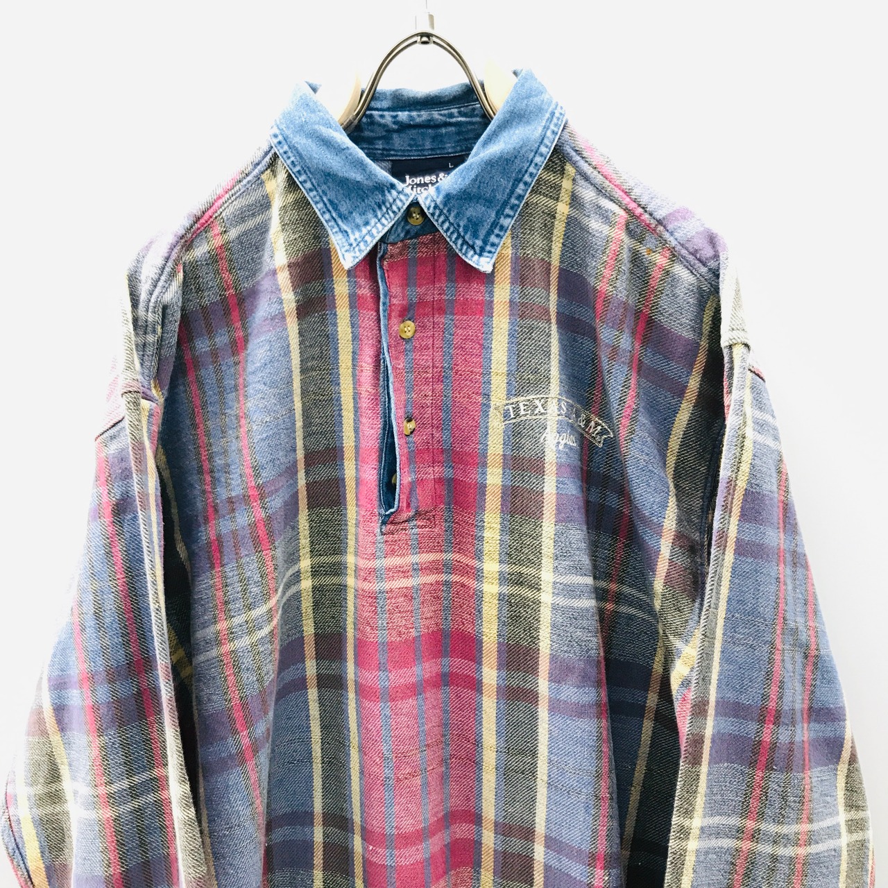 80年代前後 Jones & Mitchell TEXAS A&M Aggies 刺繍入り ヘビーネル襟デニム長袖ポロシャツ