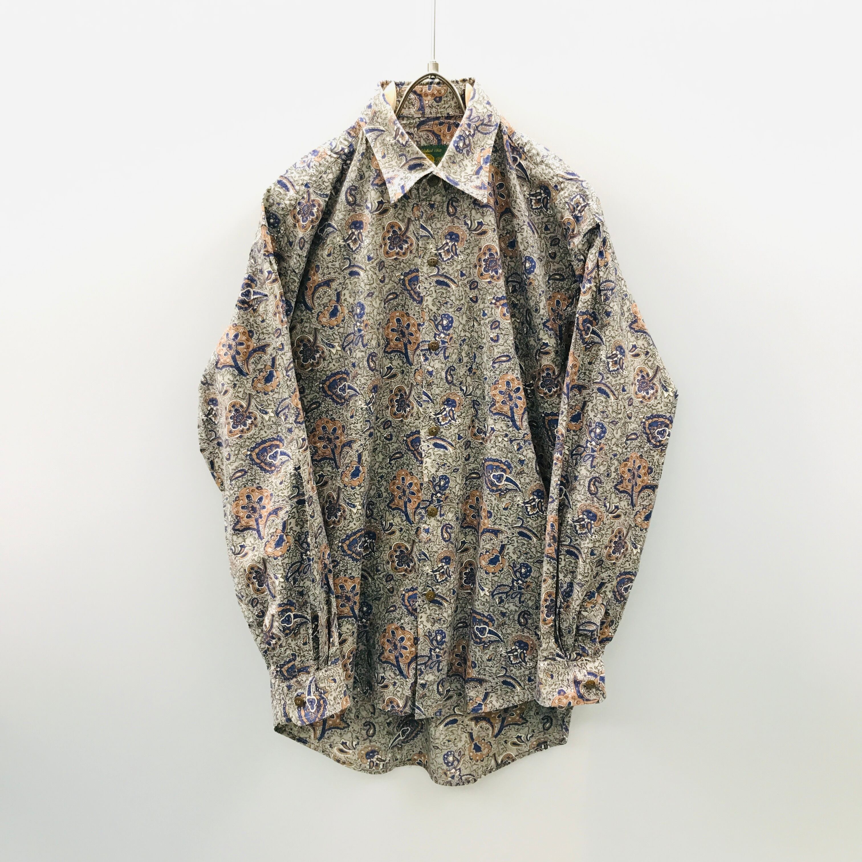 90年代 バティック風柄 OLD JPN Fish Hawk 総柄シャツ エスニック