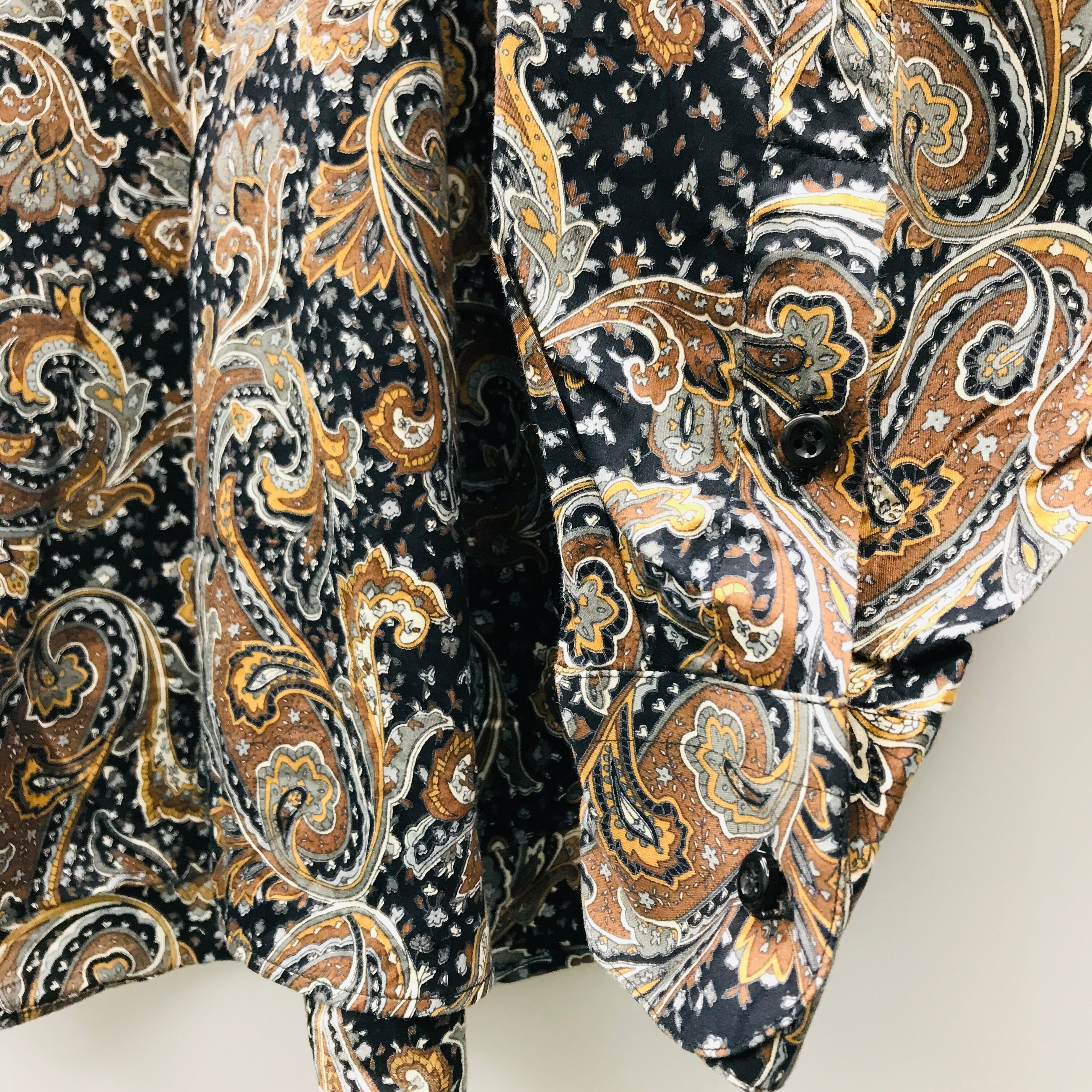 90年代 TUTTLE ルーマニア製 大ぶりペイズリー ひきしまったブラックベース柄