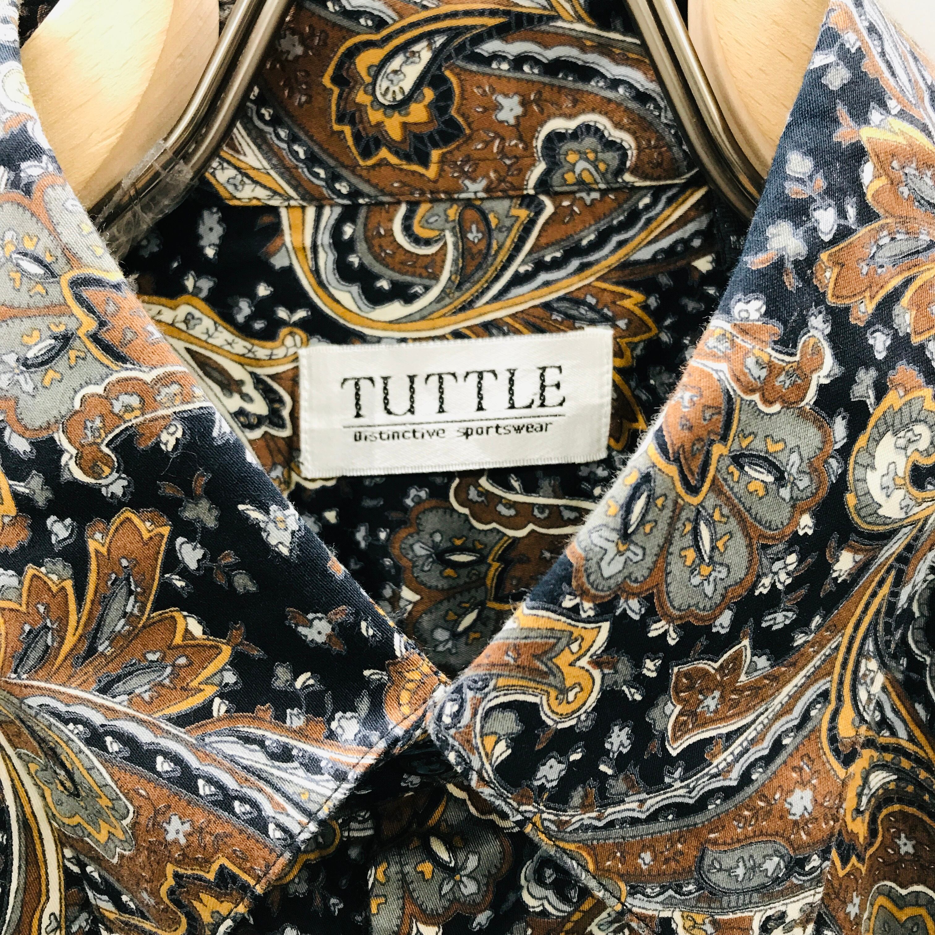 90年代 TUTTLE ルーマニア製 大ぶりペイズリー ひきしまったブラックベース柄 MADE IN RAMANIA