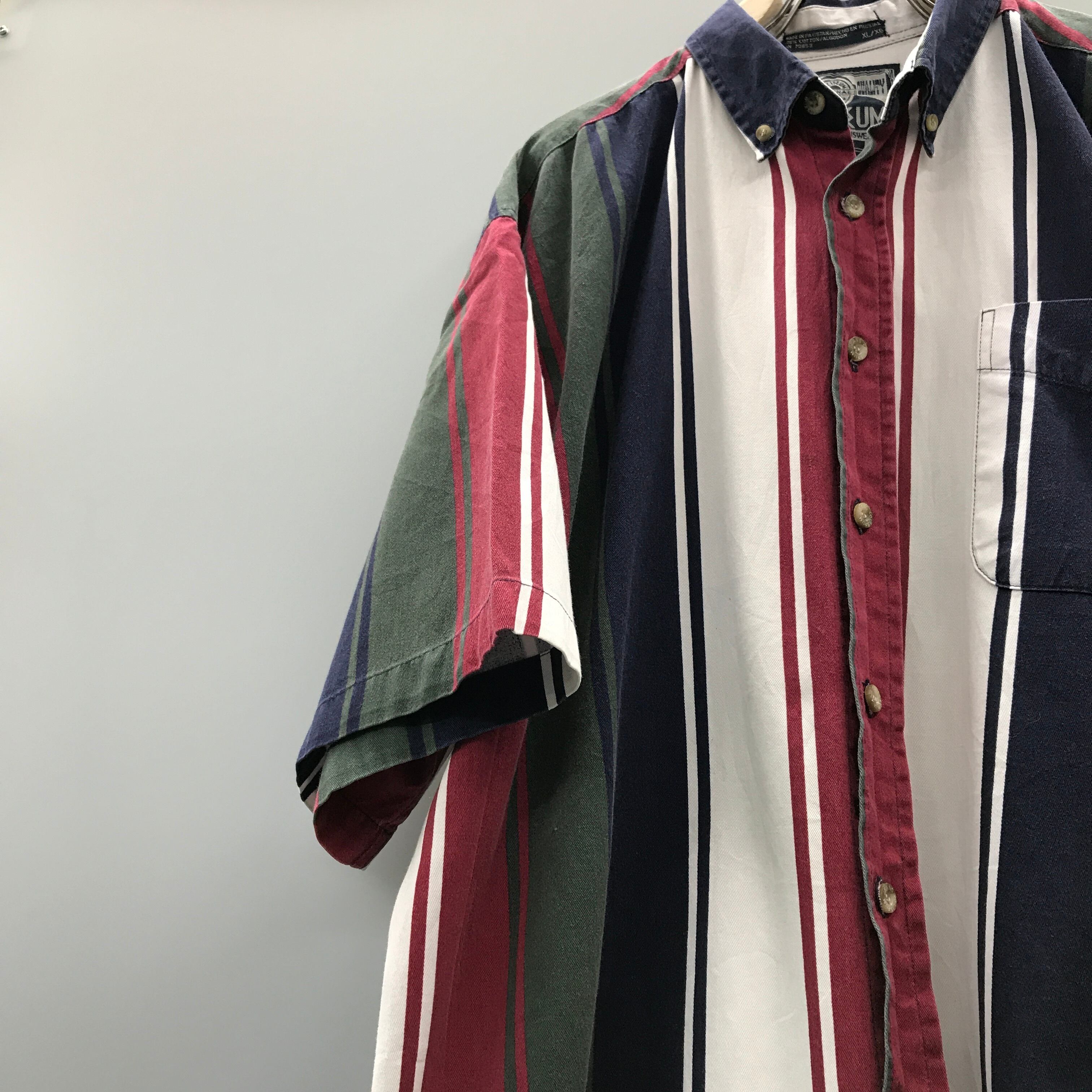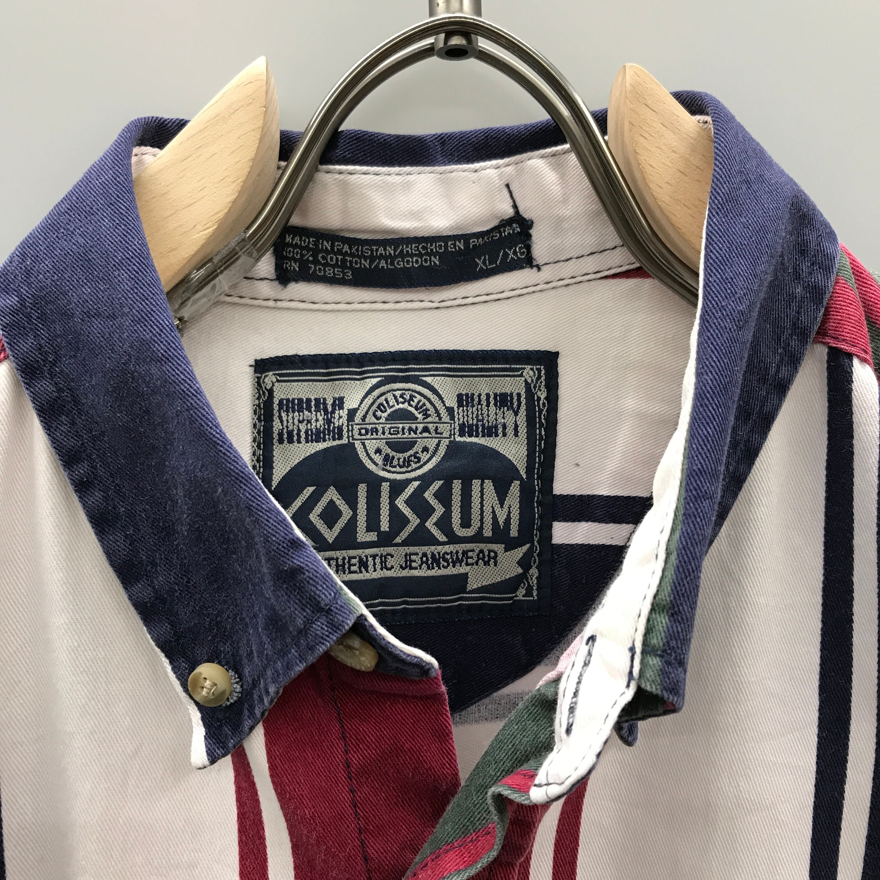 80年代 XL COLISEUM マルチボーダーストライプ 半袖 ボタンダウンシャツ