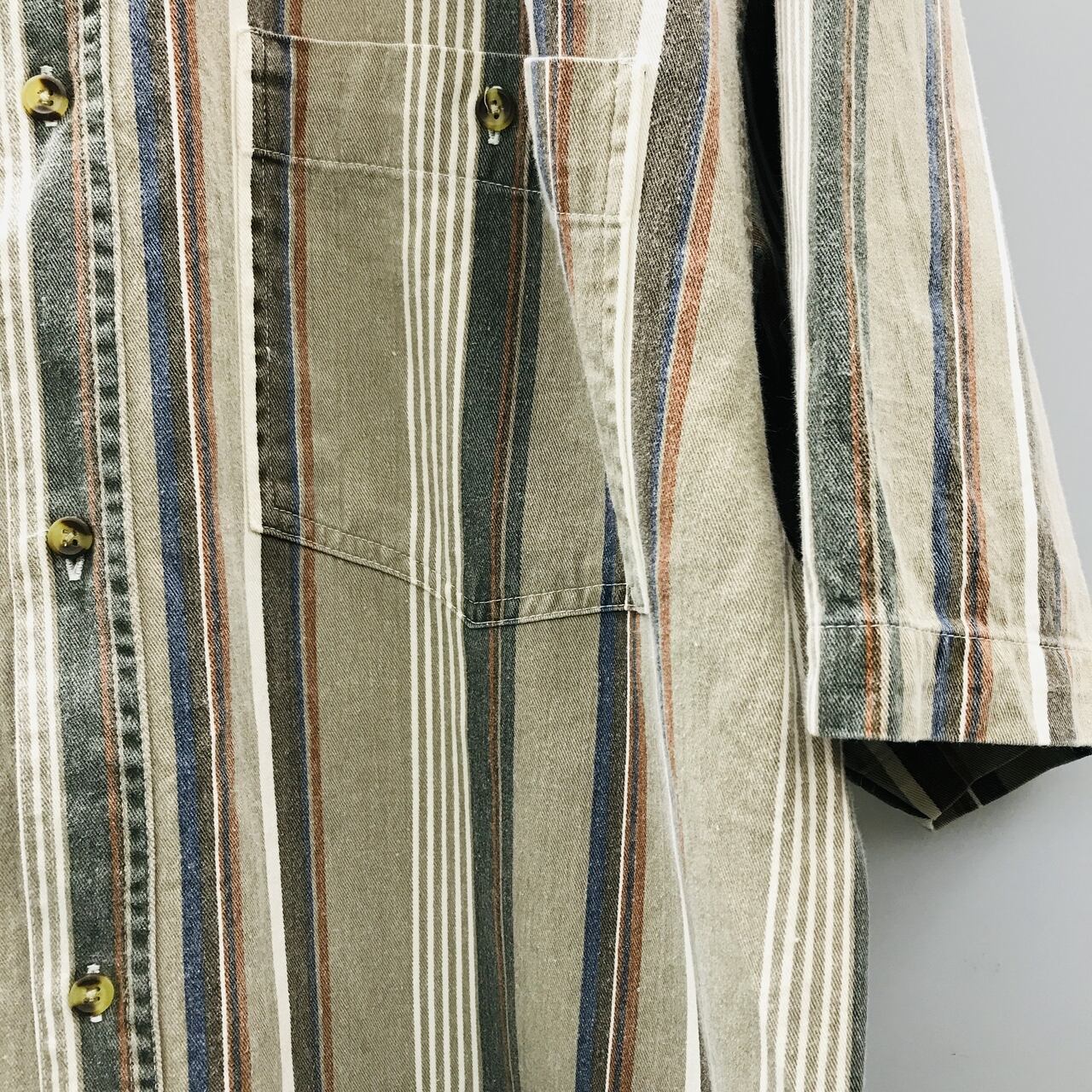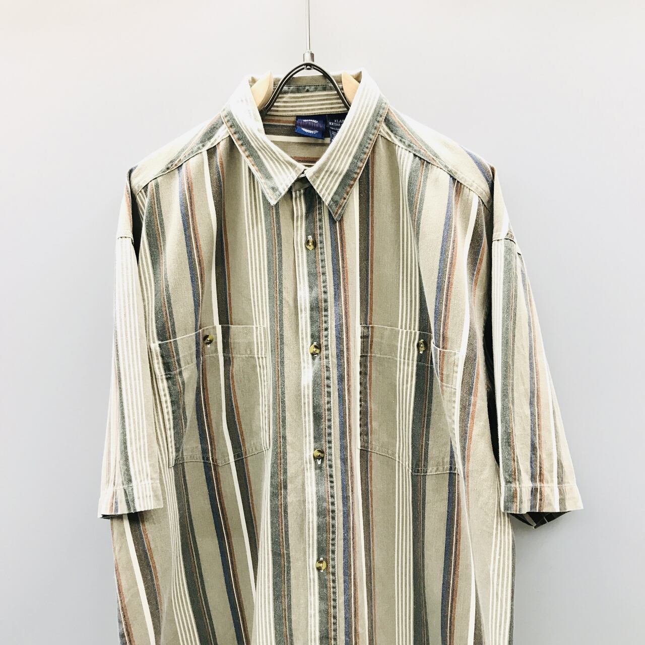 90年代 SAUGAYUCK コットン 半袖マルチカラーストライプシャツ