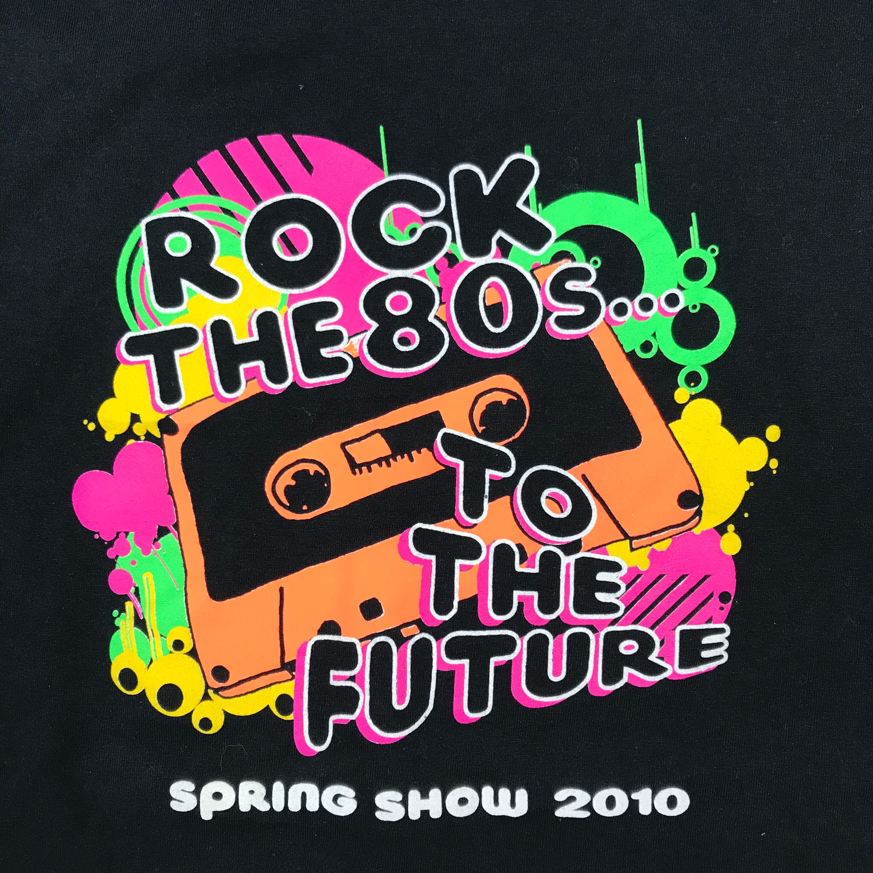 2XL ROCK THE 80'S TO THE FUTURE SPRING SHOW 2010 蛍光 ネオンカラーカセットテープ 柄 Tシャツ
